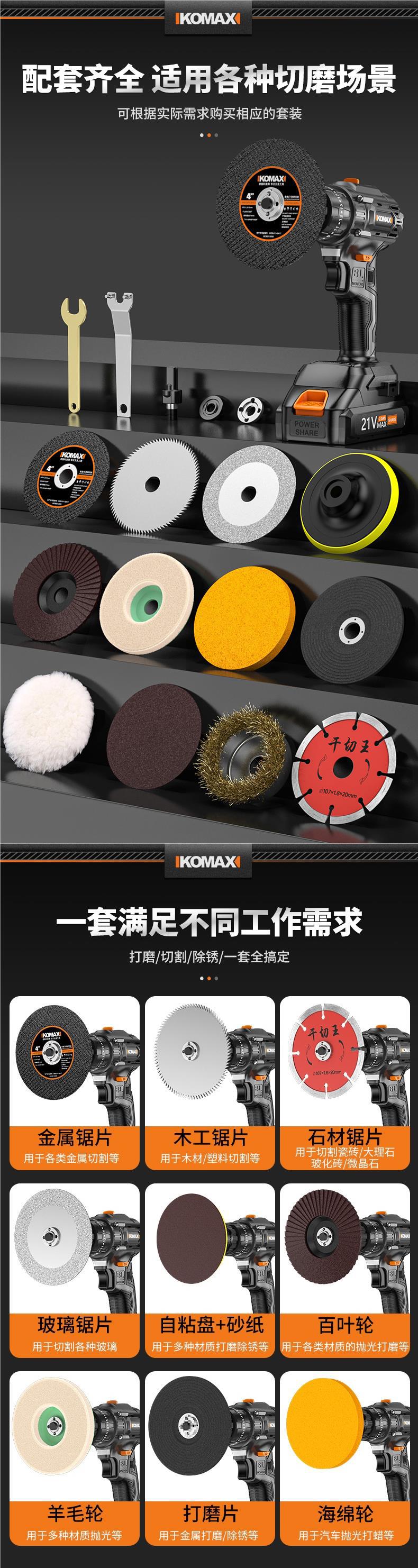 5-piece set + 10-piece cutting and polishing set + 21v brushless electric drill [2.0ah] 1 battery, 1 charge + accessories