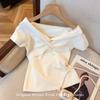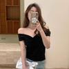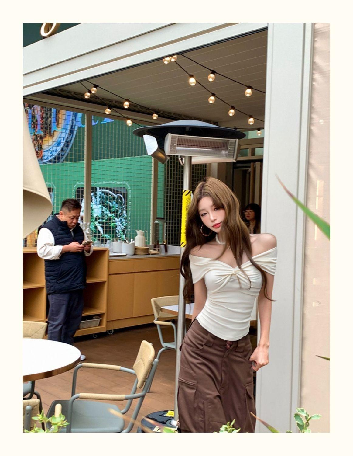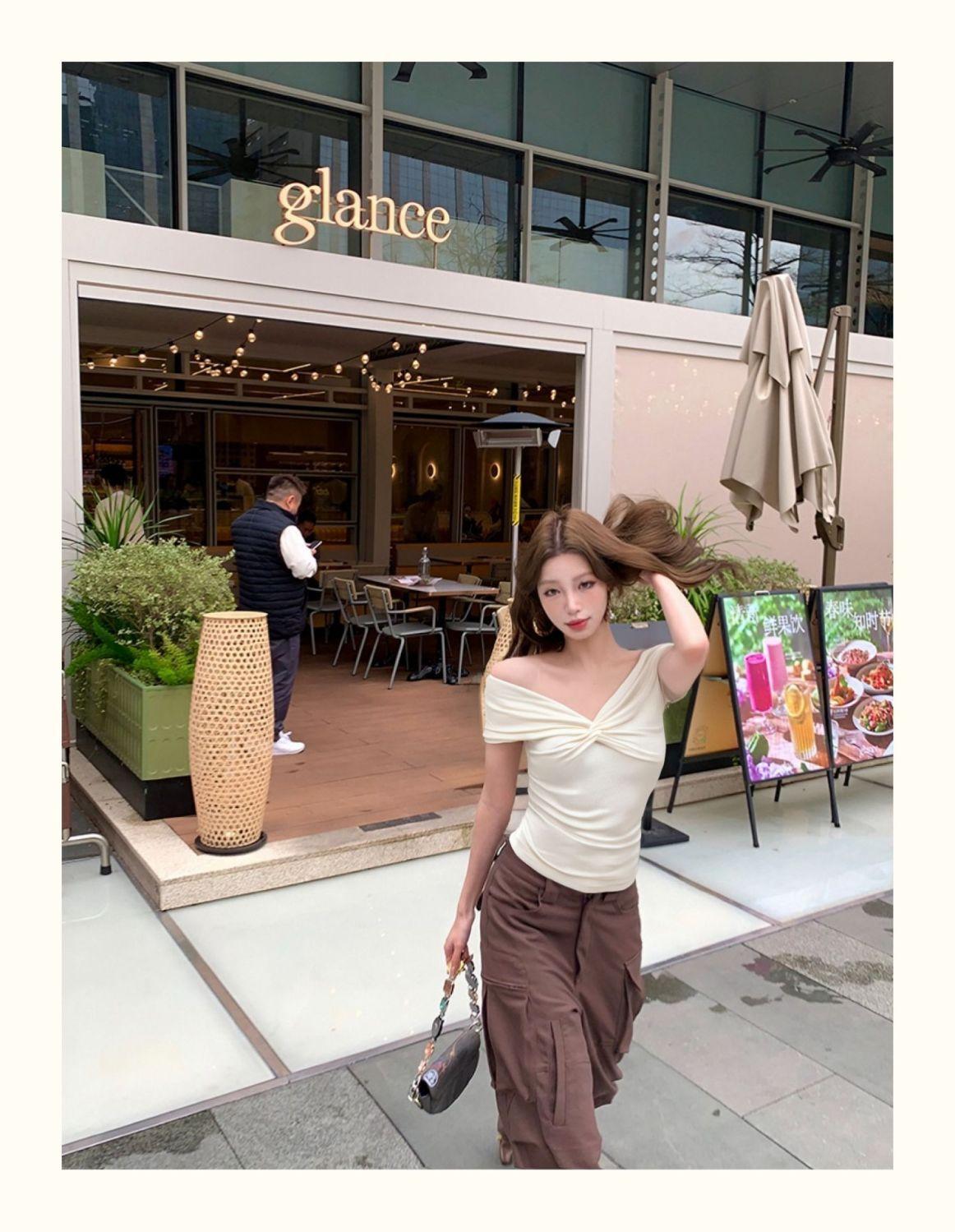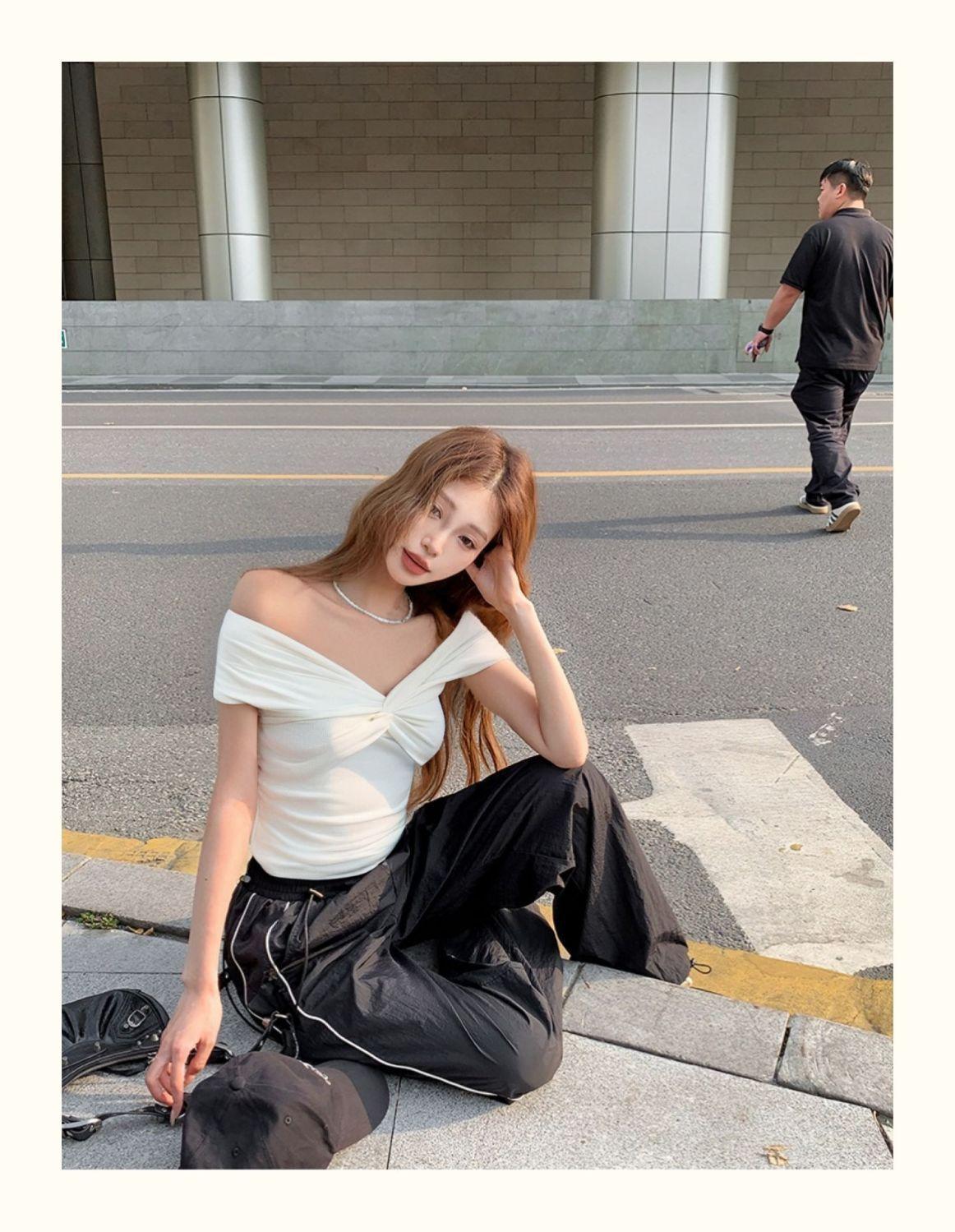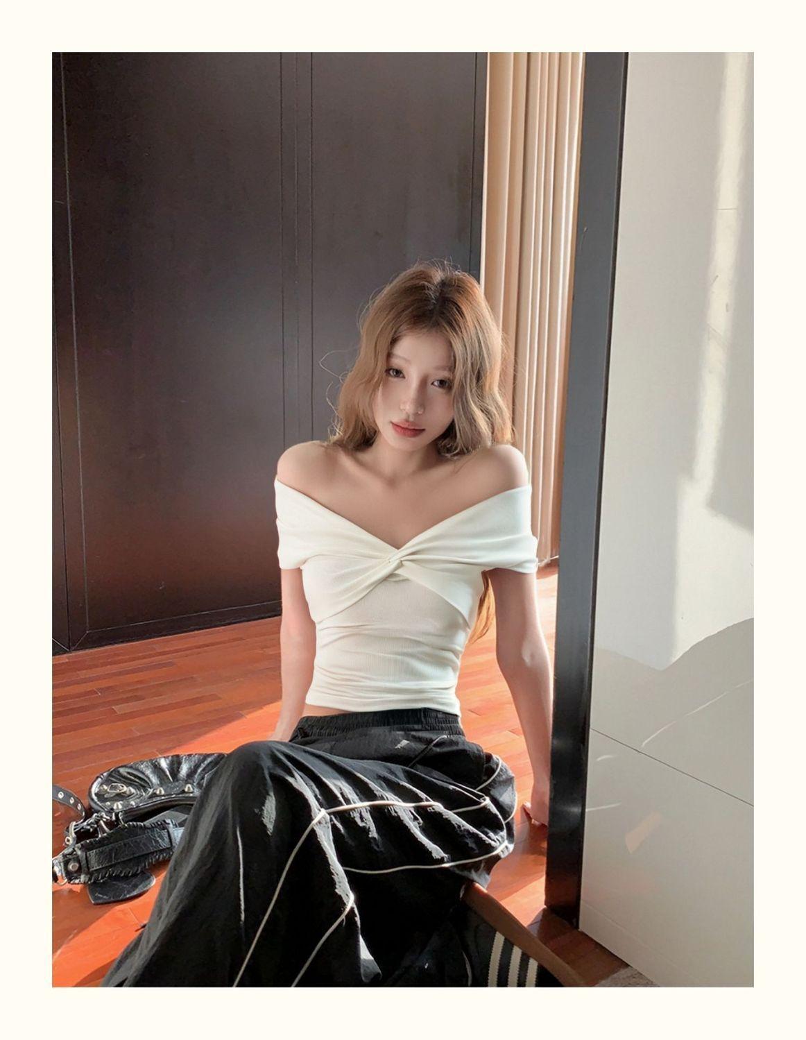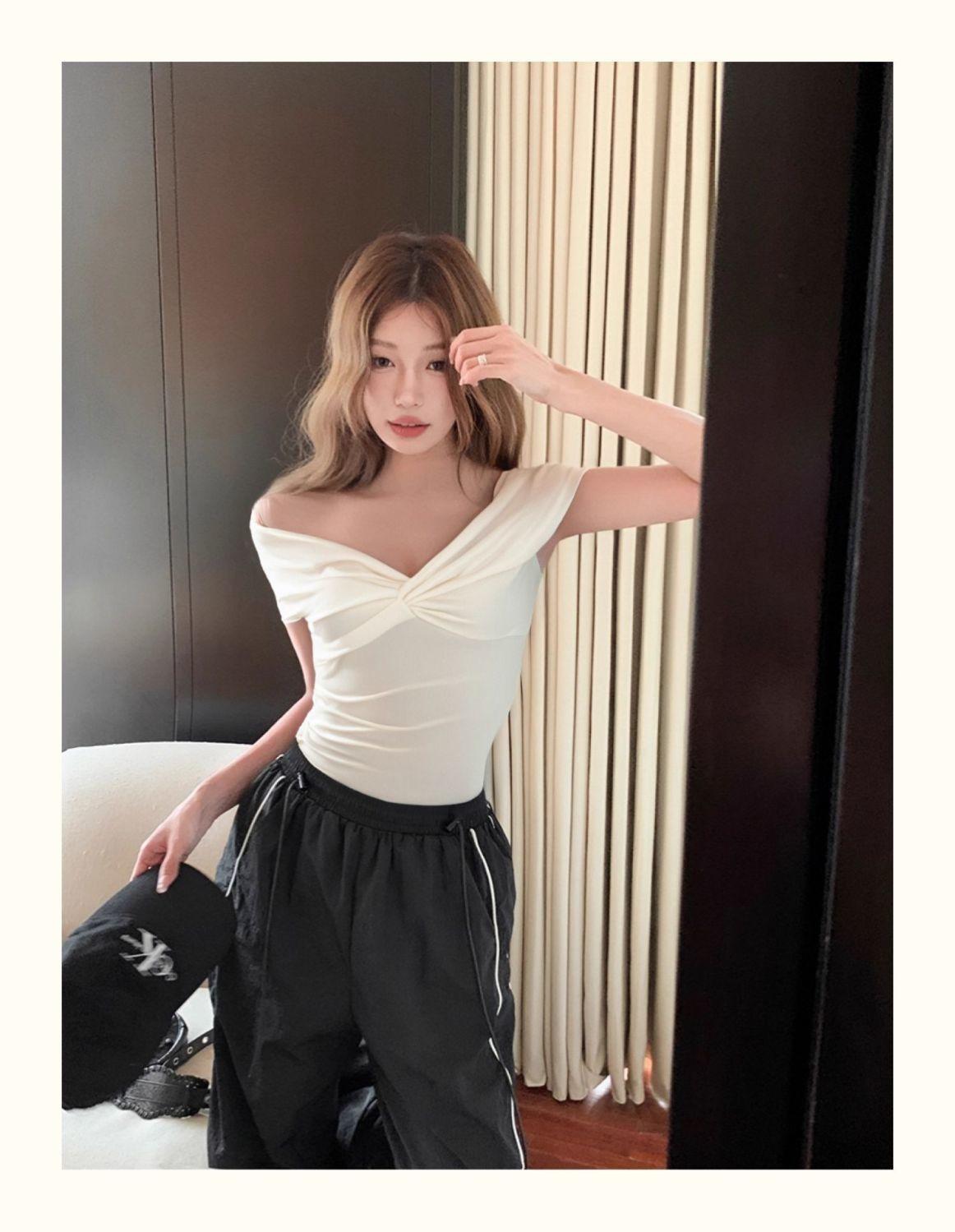 Playera Blanca de Verano para Mujer con Pliegues, Torcida, Elástica, con Hombros Descubiertos, 2025