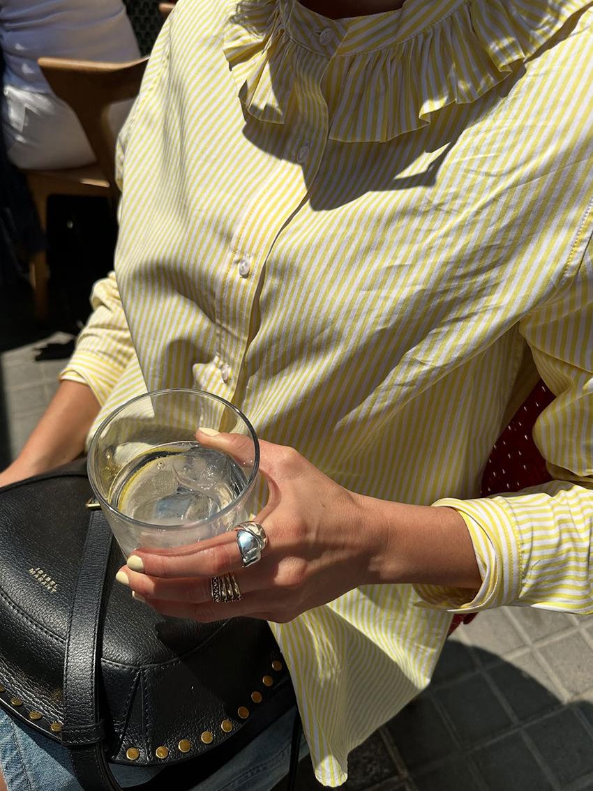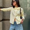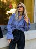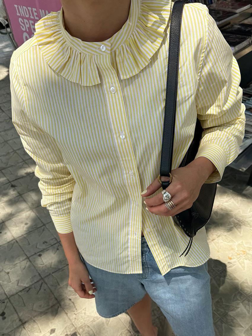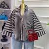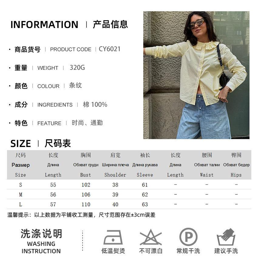 2025 Otoño/Invierno Nuevo Nicho Francés Rayado Cuello Redondo Manga Larga Camisa Mujer Sentido del Diseño Temperamento Moda Desplazamiento Transfronterizo