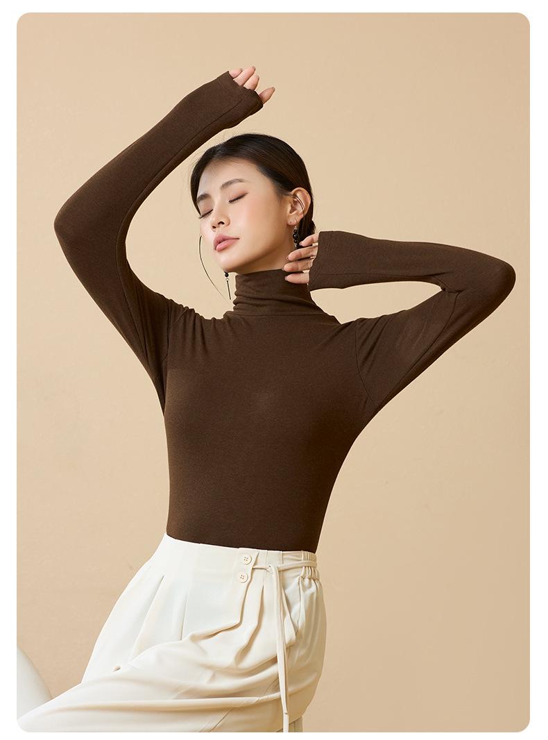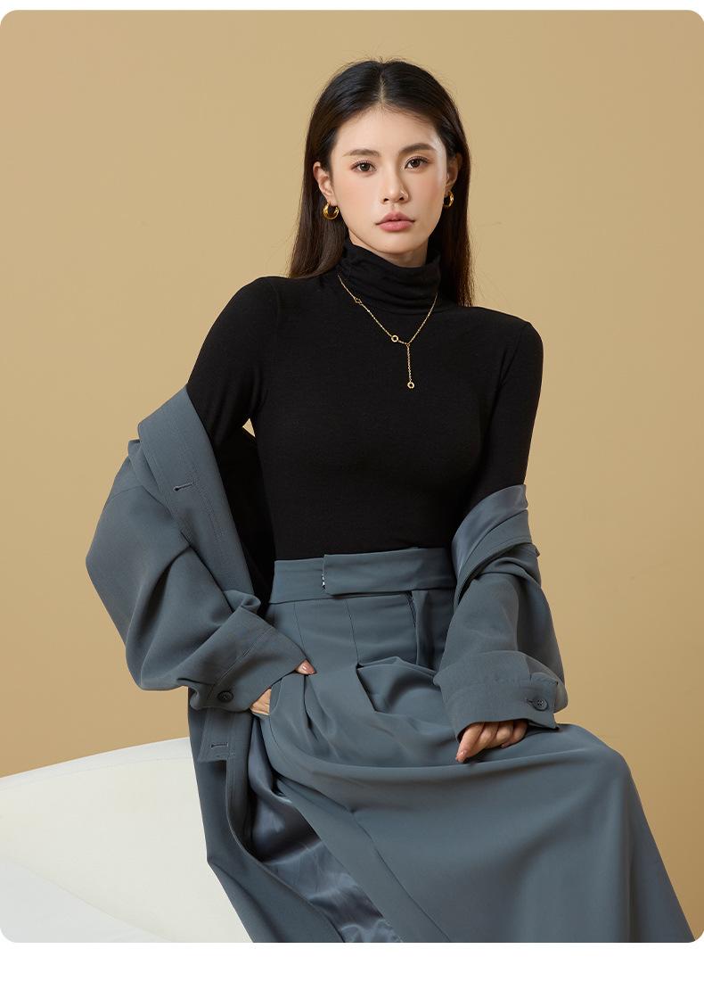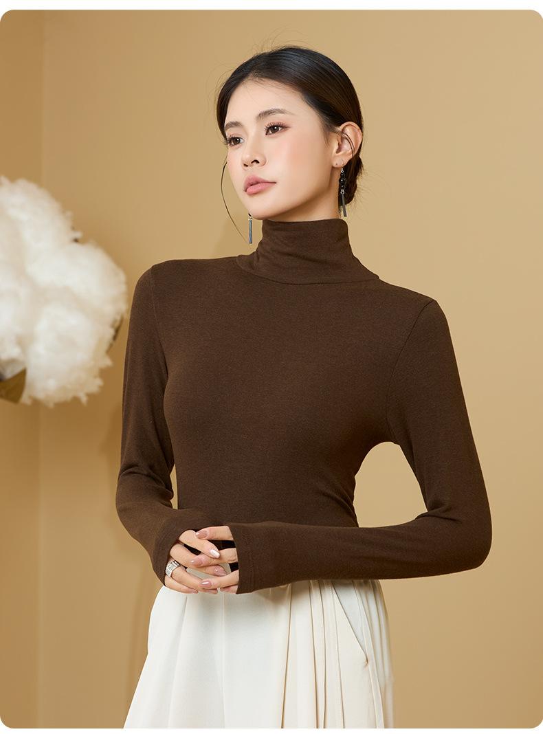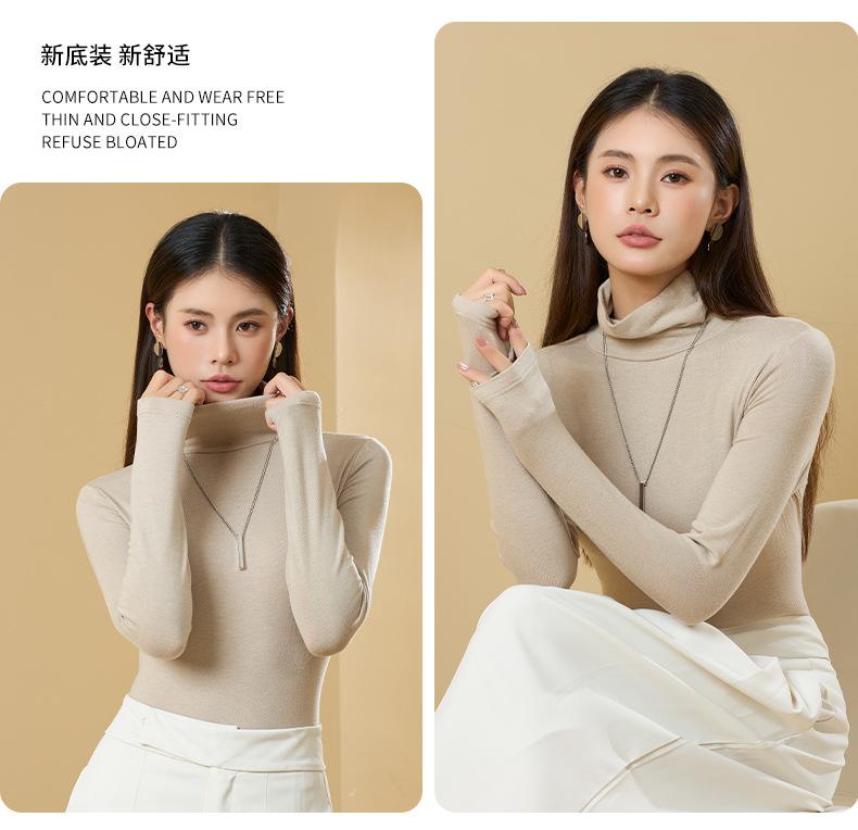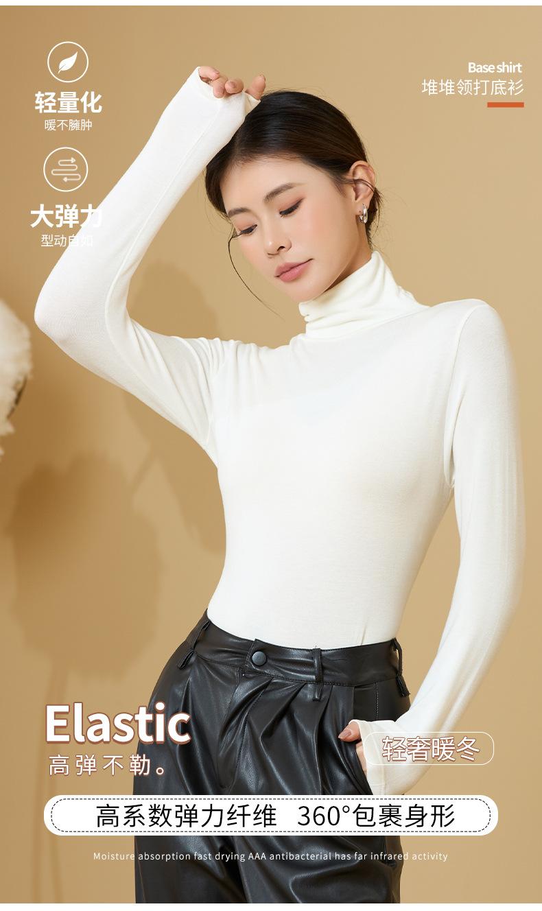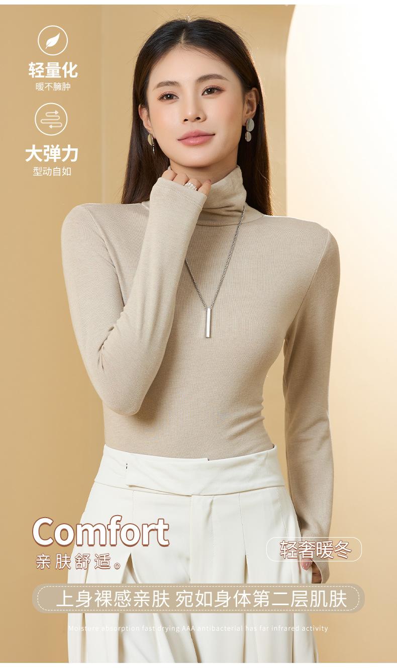 Top de Capa Base de Tencel Lana Acetato Otoño Invierno Cuello Alto Ajustado Nuevo Alta Elasticidad Interior Manga Larga Cálido Top Mujer