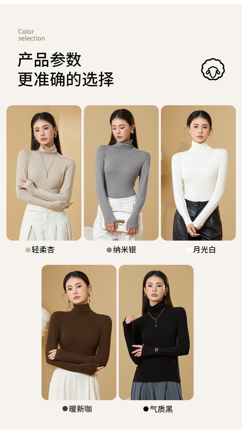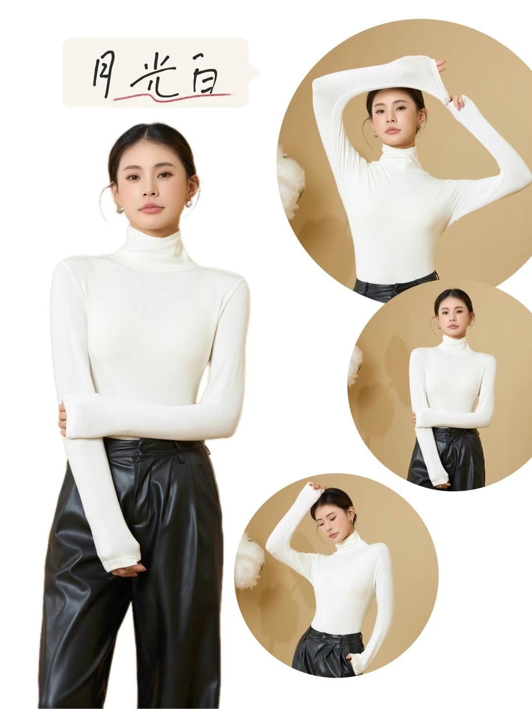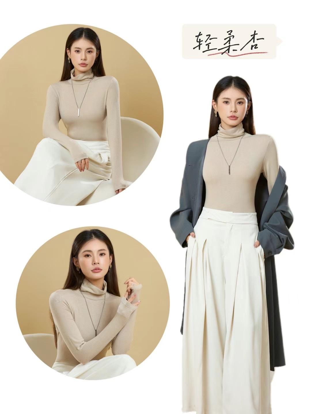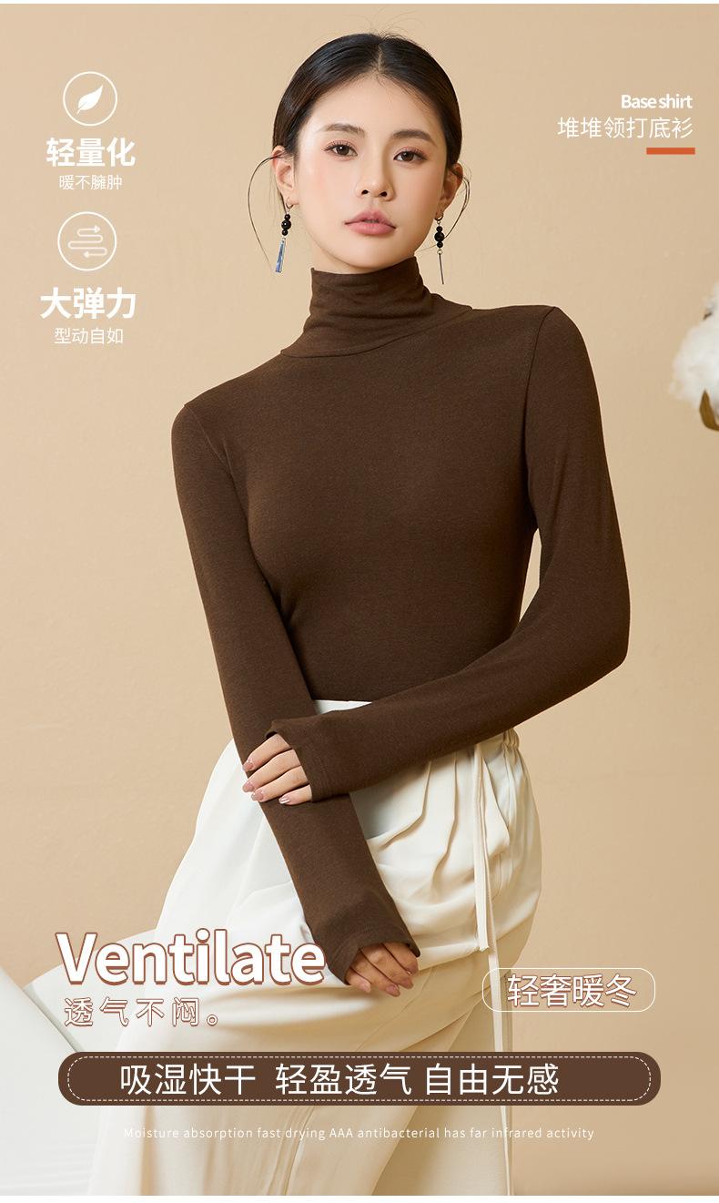 Top de Capa Base de Tencel Lana Acetato Otoño Invierno Cuello Alto Ajustado Nuevo Alta Elasticidad Interior Manga Larga Cálido Top Mujer