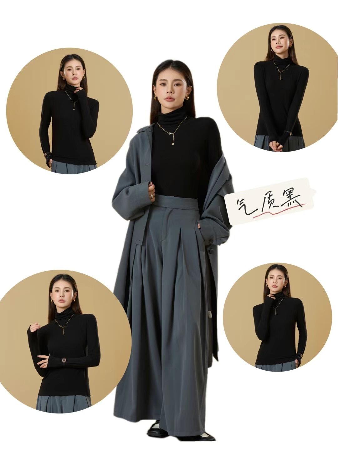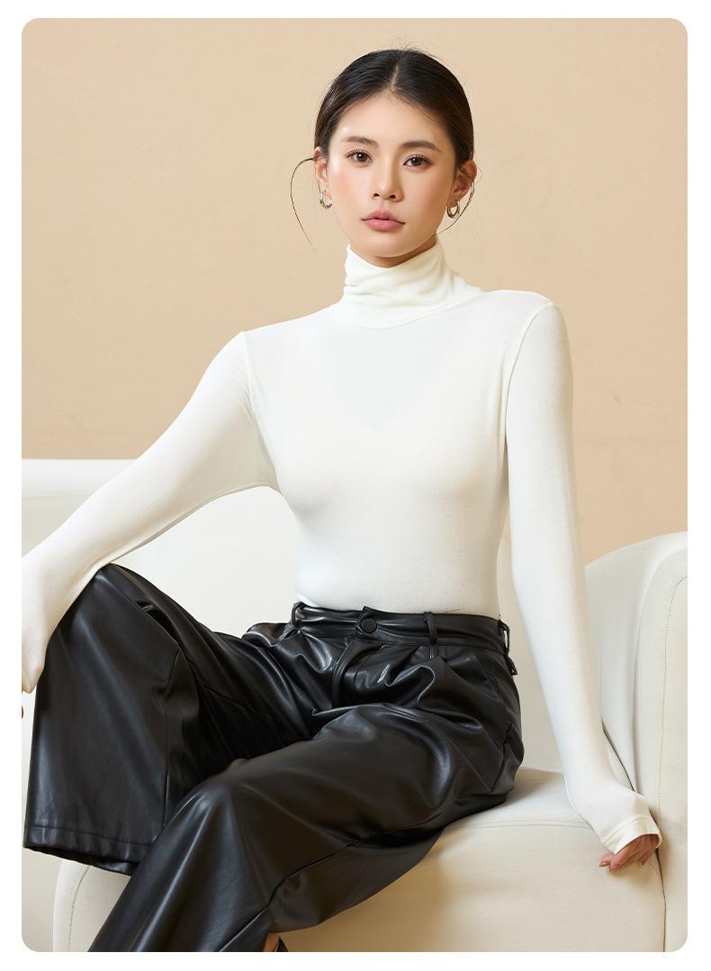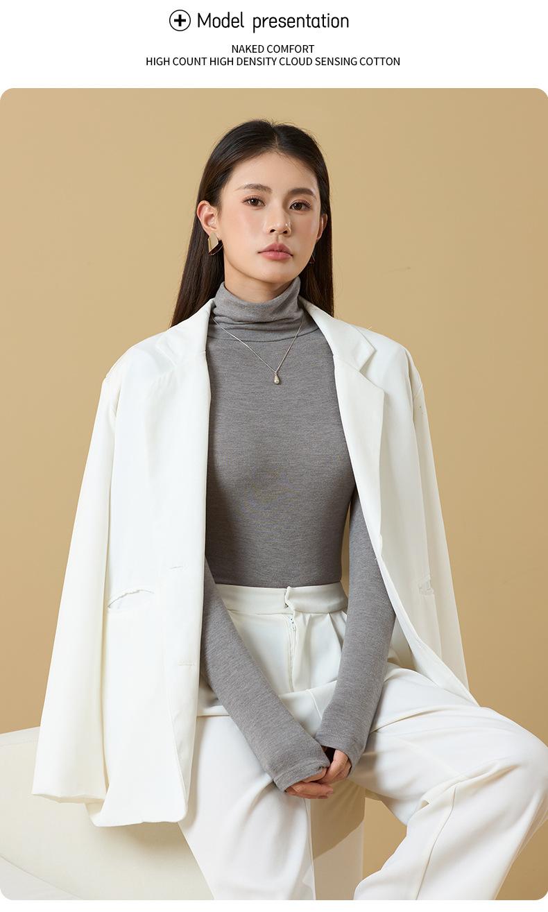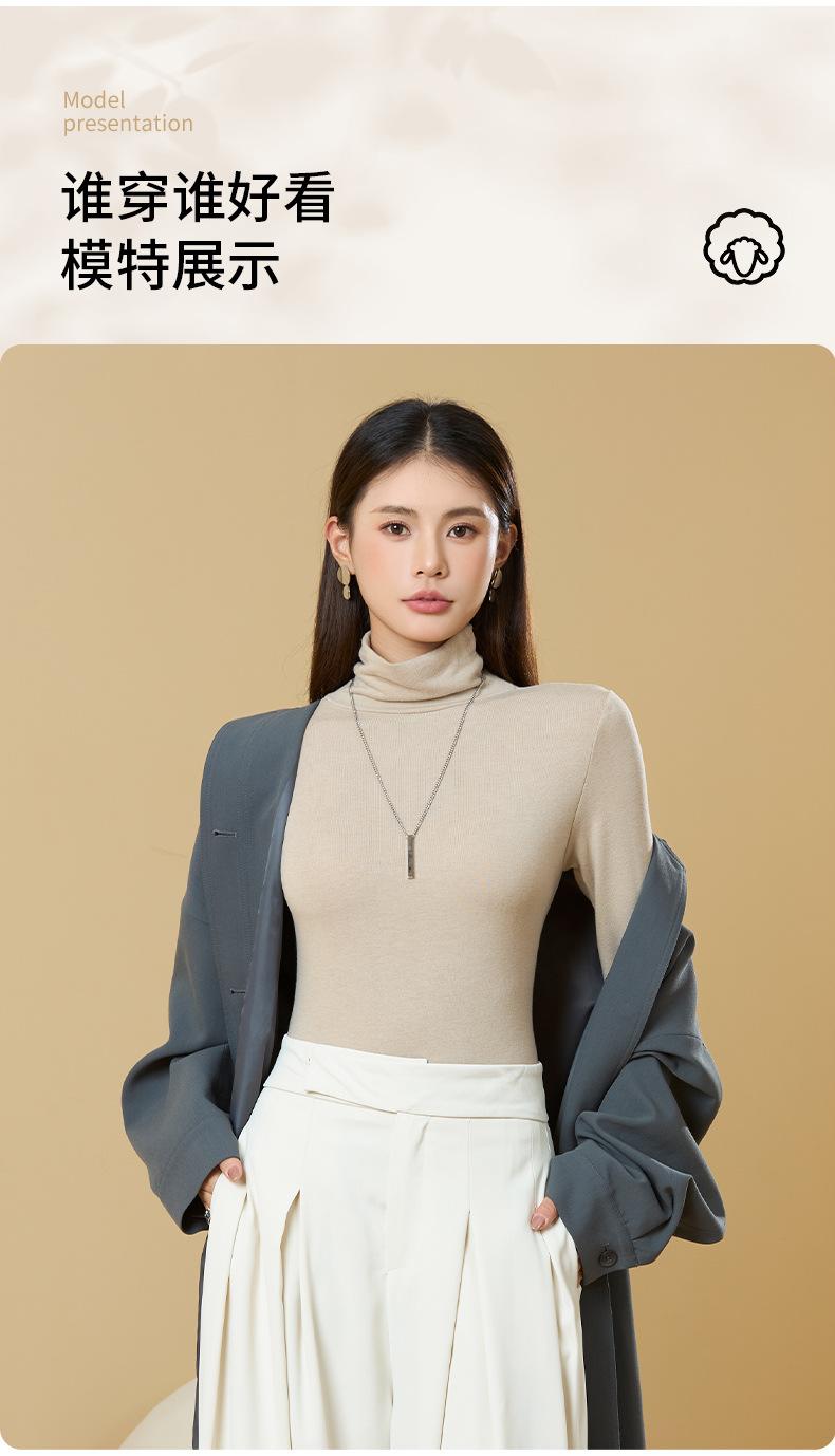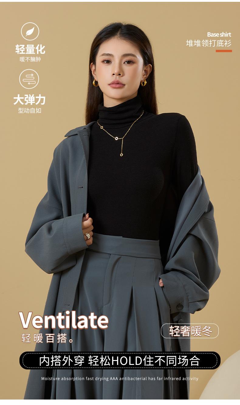 Top de Capa Base de Tencel Lana Acetato Otoño Invierno Cuello Alto Ajustado Nuevo Alta Elasticidad Interior Manga Larga Cálido Top Mujer