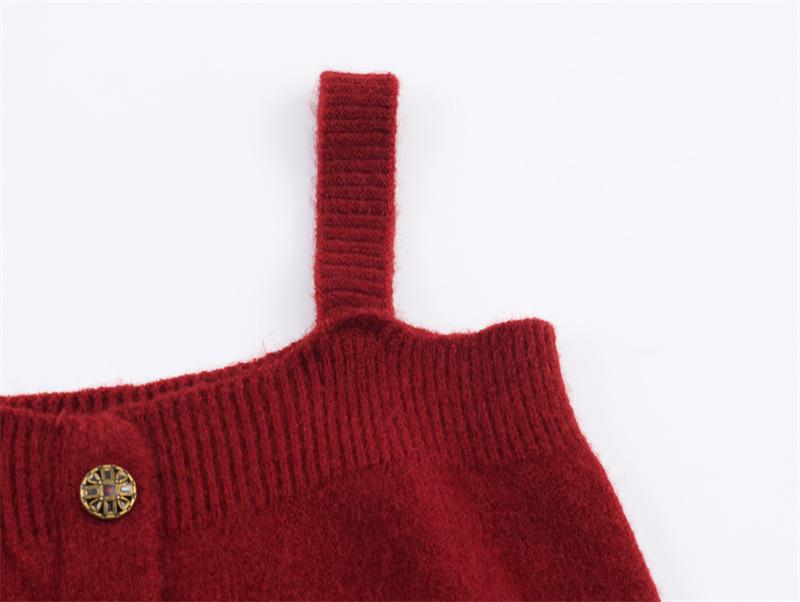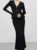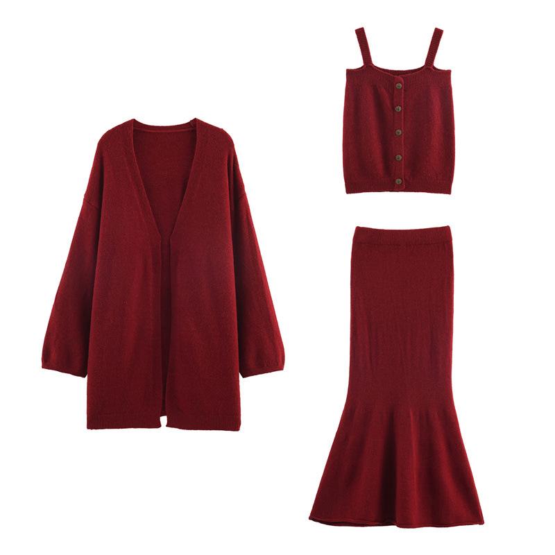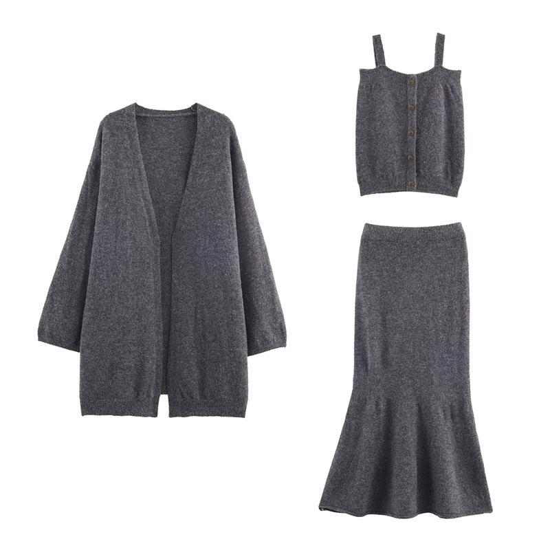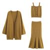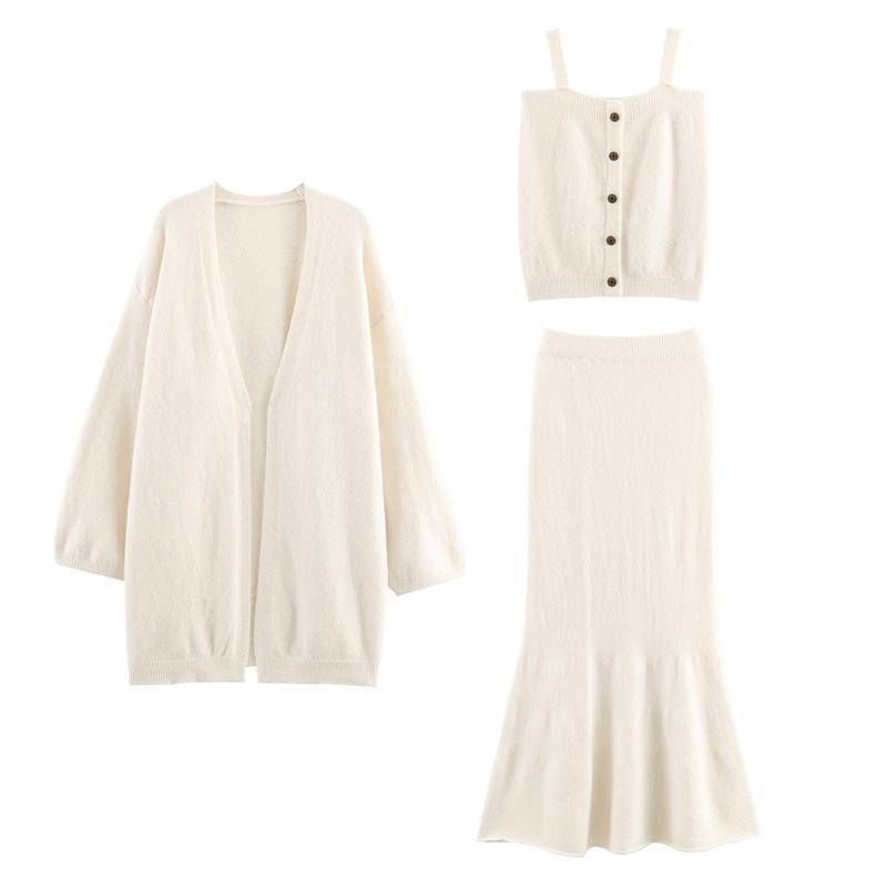 Conjunto de Tres Piezas de Temperamento Estilo Perezoso Otoño Nuevo Suéter Cárdigan Punto Ropa Exterior Camisola Chaleco Falda Ajustada Cola de Pez Mujer