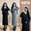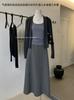 Conjunto Cárdigan de Punto Tencel Castaño Otoño para Mujer Chaleco Otoño Temprano Falda Media Conjunto de Tres Piezas