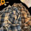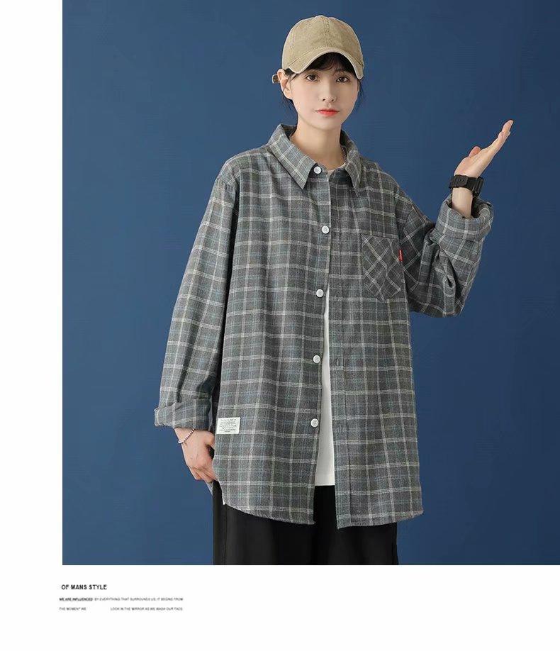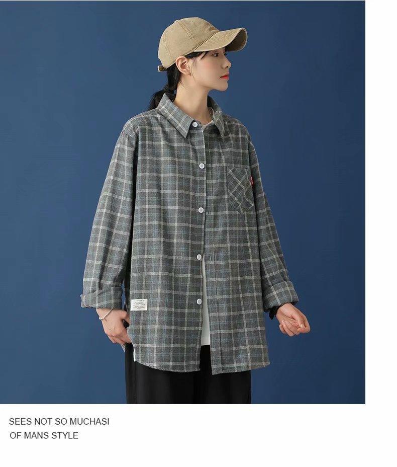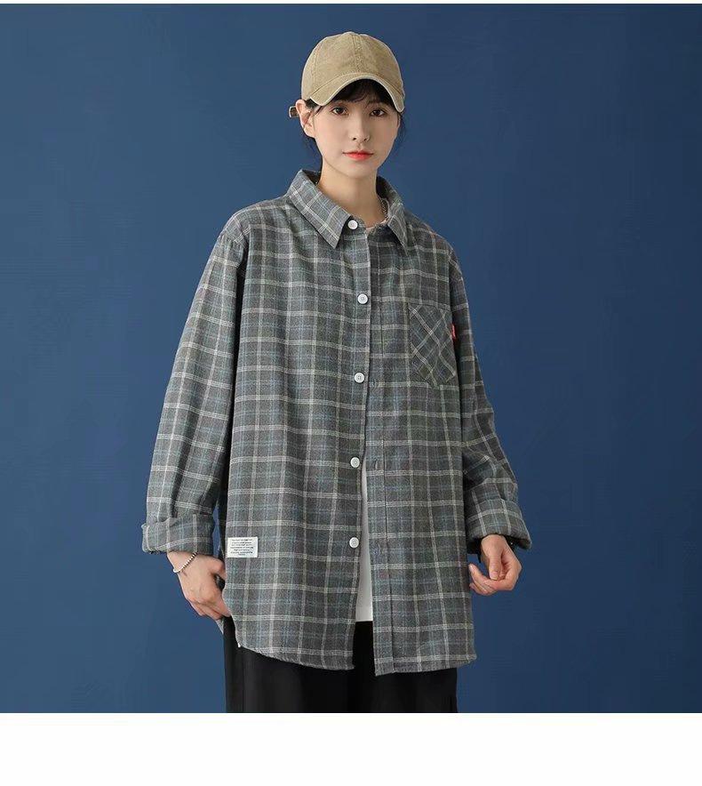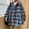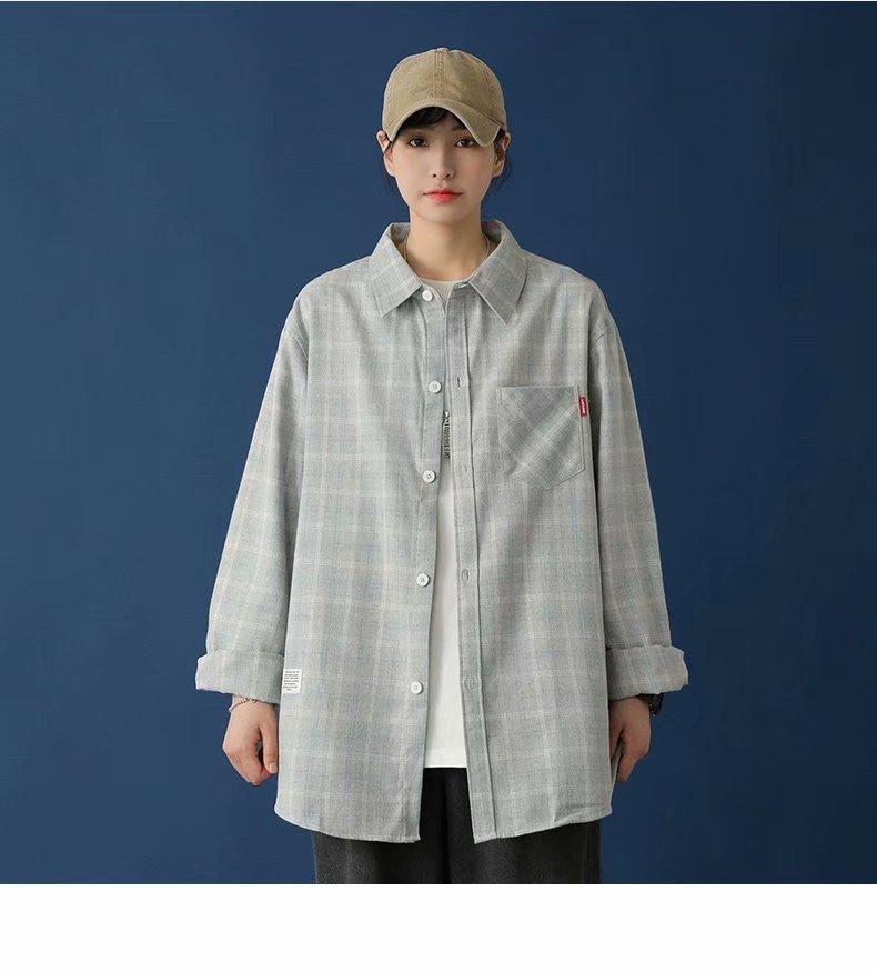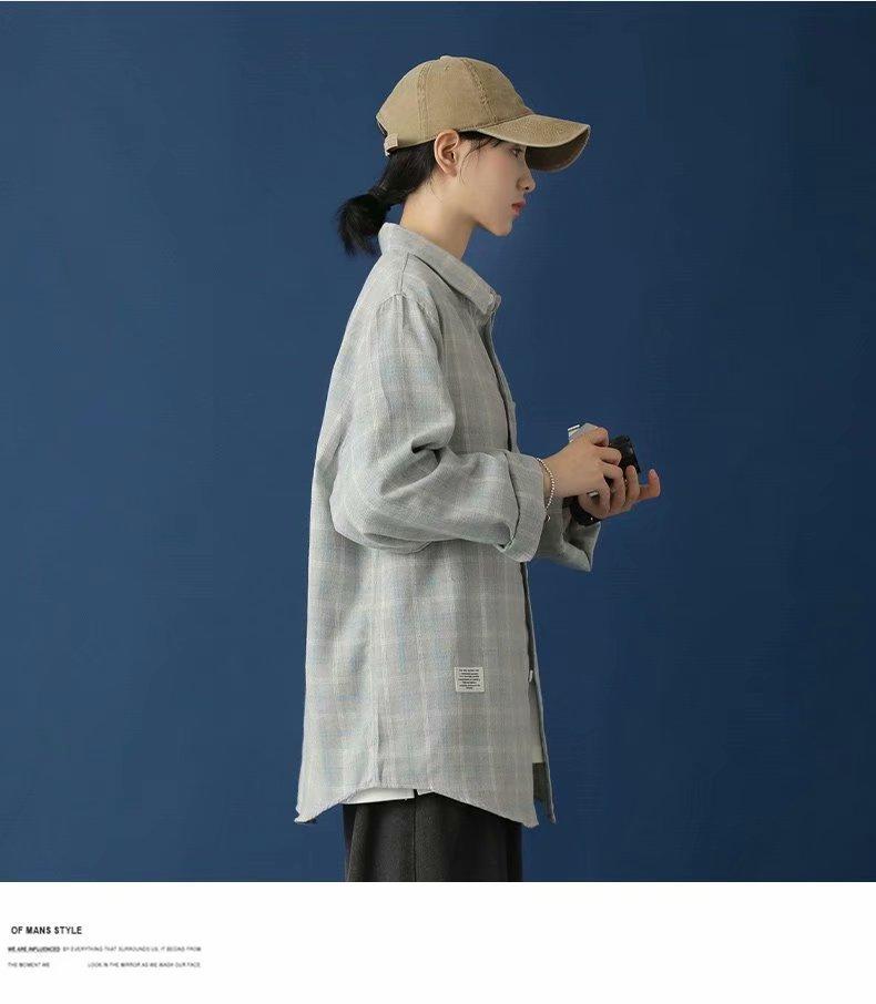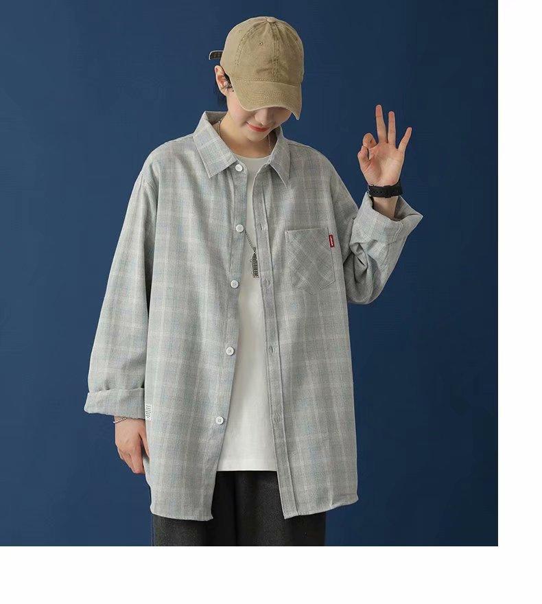 2021 Nueva Camisa Holgada a Cuadros de Manga Larga Estilo Coreano de Otoño para Hombre y Mujer Abrigo Delgado Chaqueta Camisa Estilo Retro Hong Kong