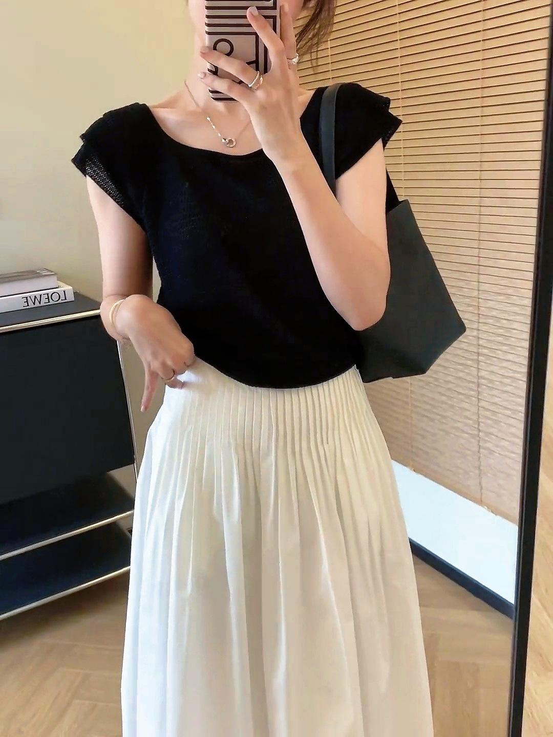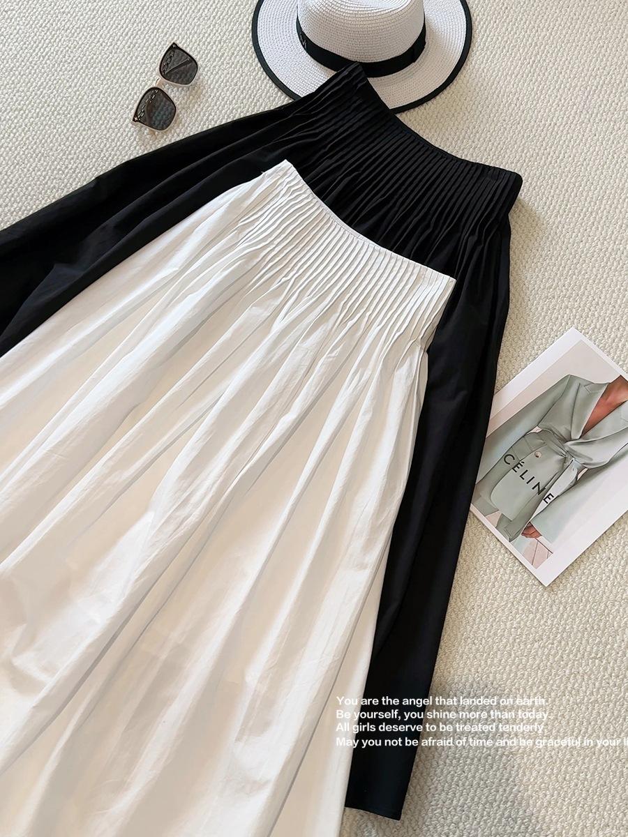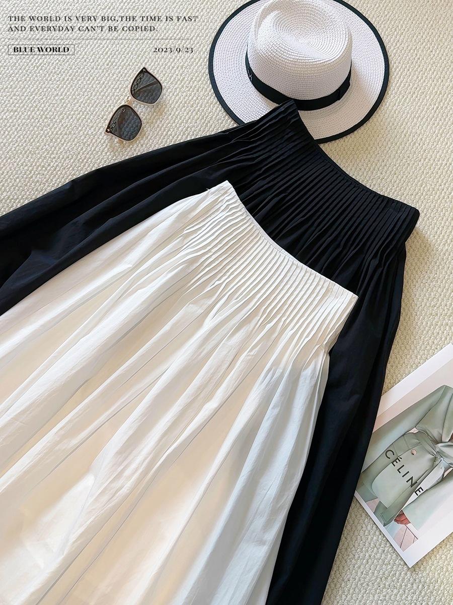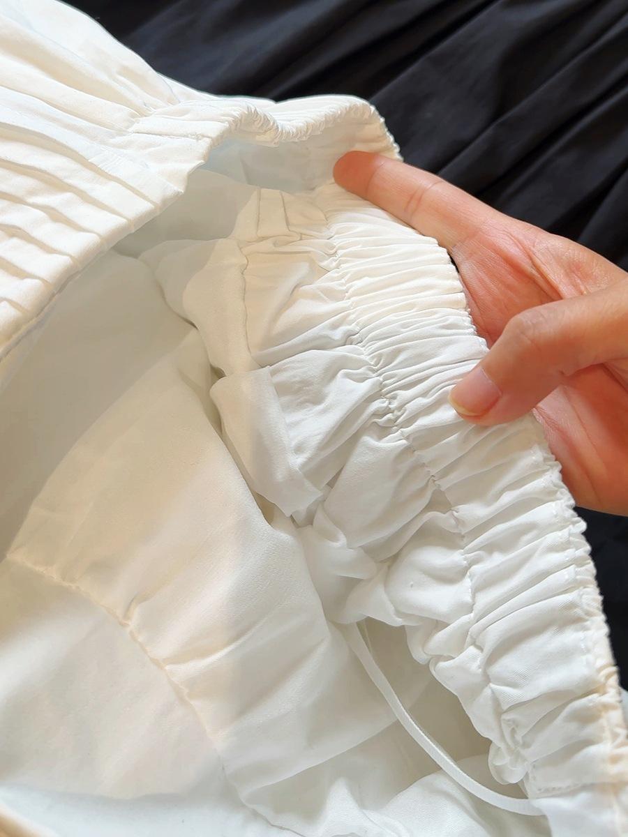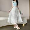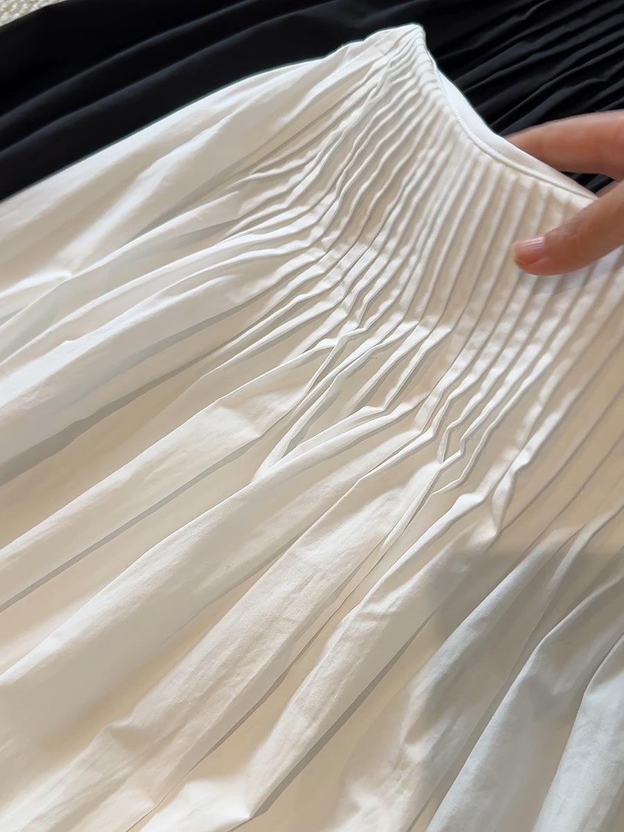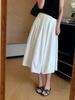 Falda Blanca Acampanada Plisada para Mujer 2025 Verano Nuevo Diseño Nicho Cintura Alta Largo Medio Dobladillo Amplio Falda Paraguas
