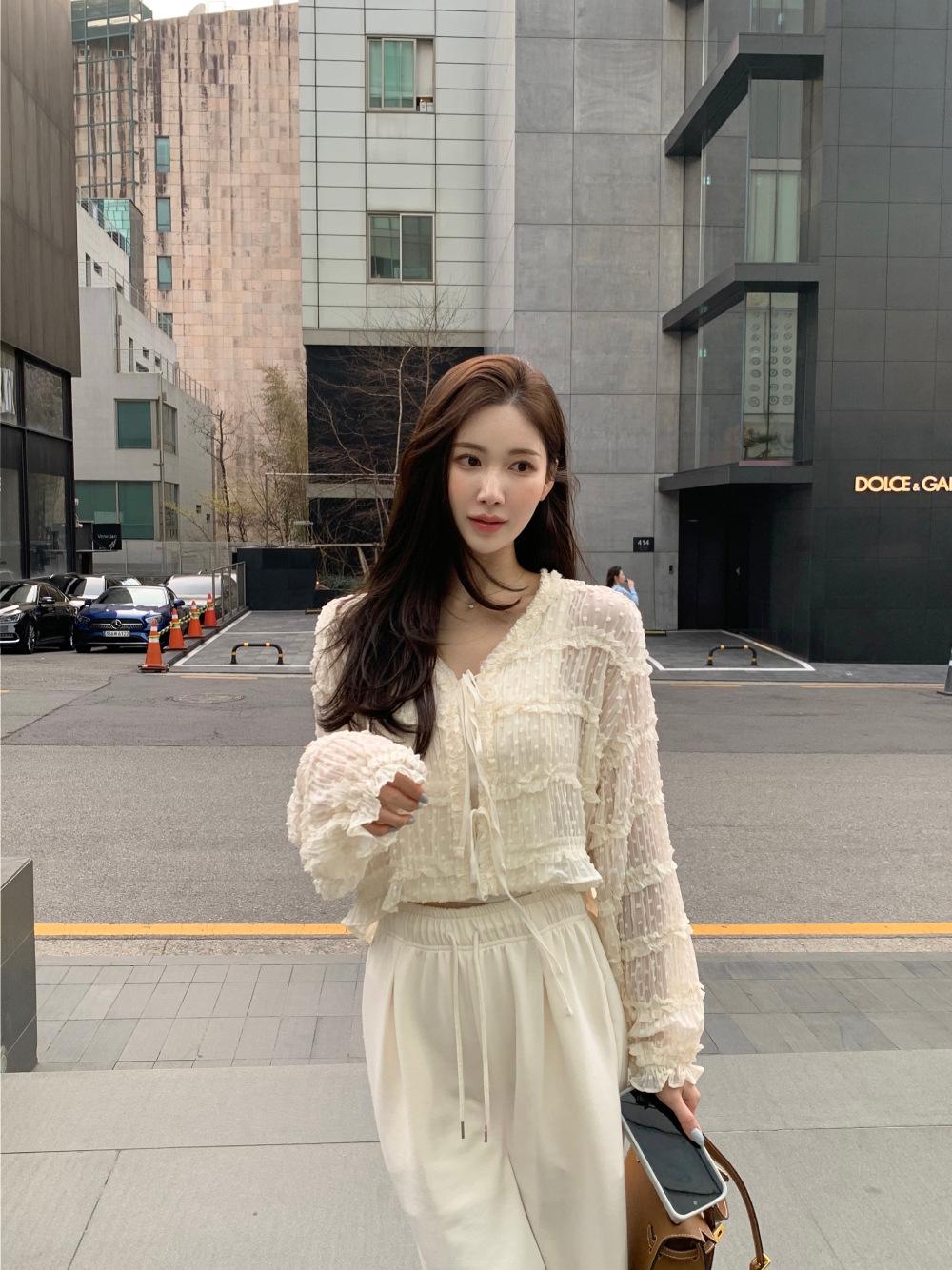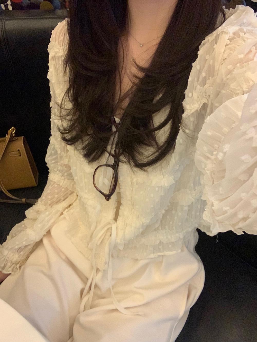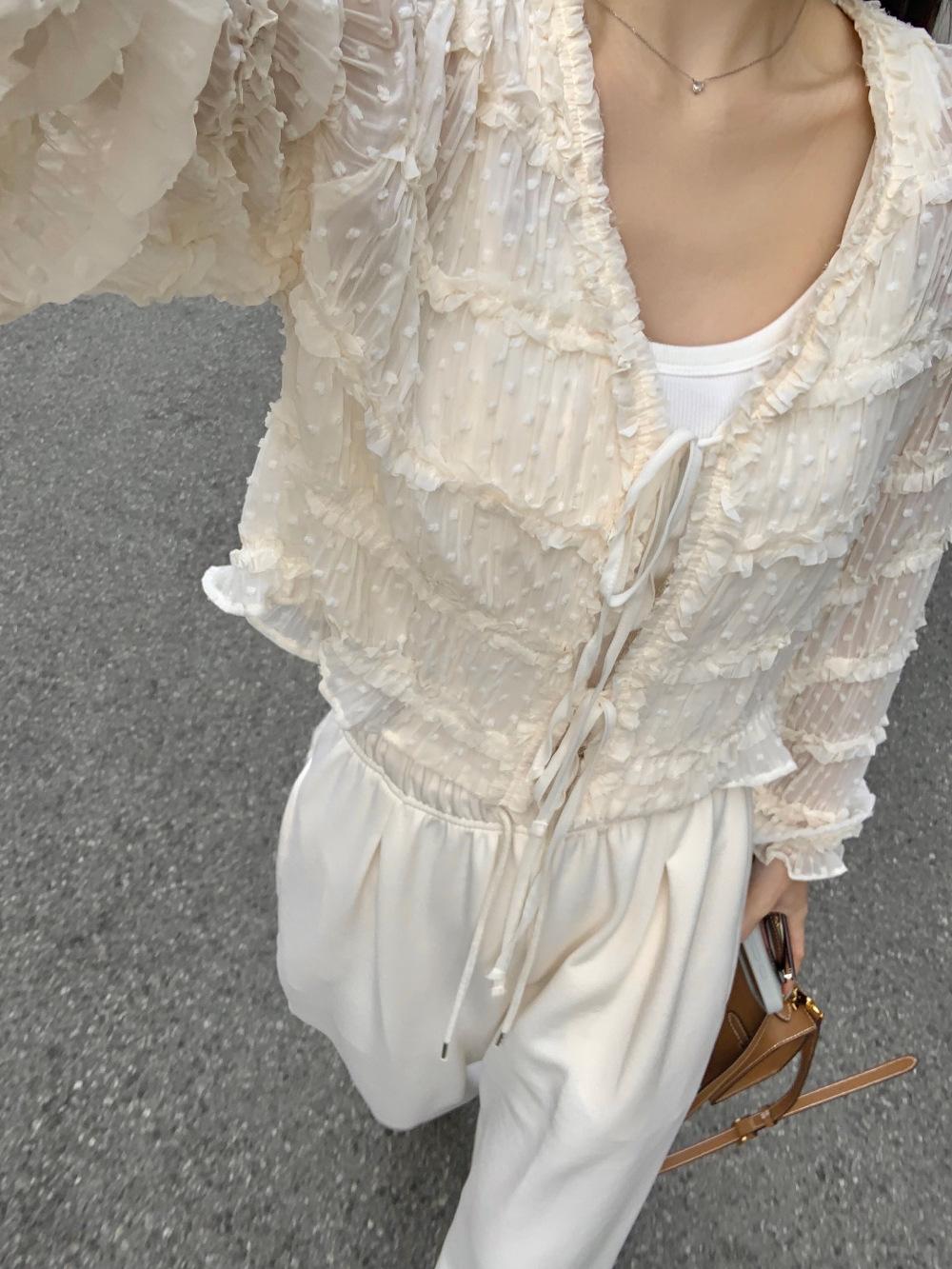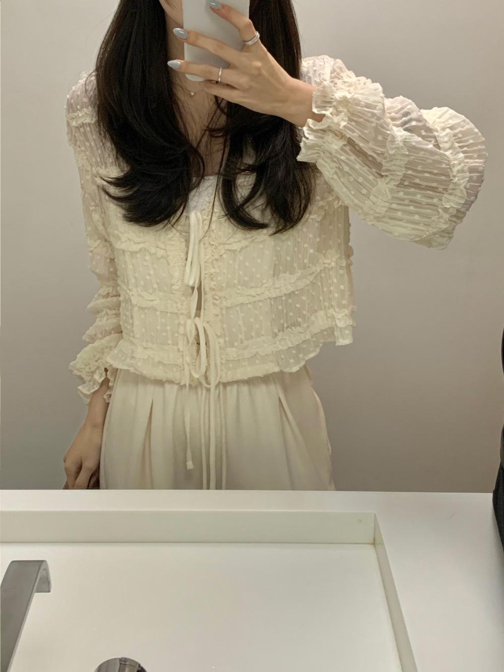 Compra Coreano ins encaje pajarita encaje volantes camisa corta mujer 2025 otoño nuevo top dulce al por mayor en Joom.pro