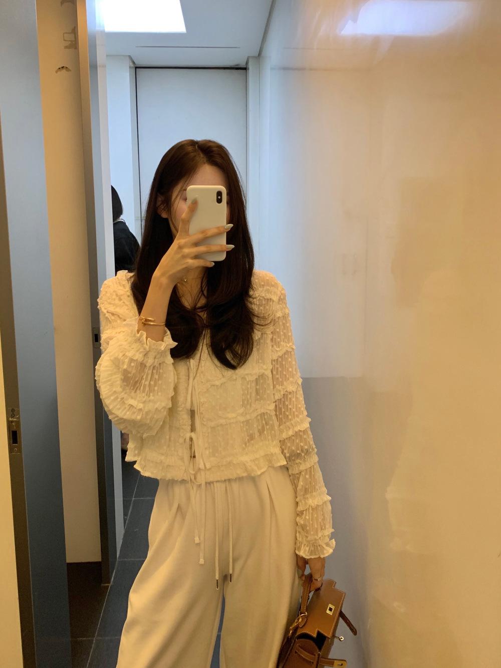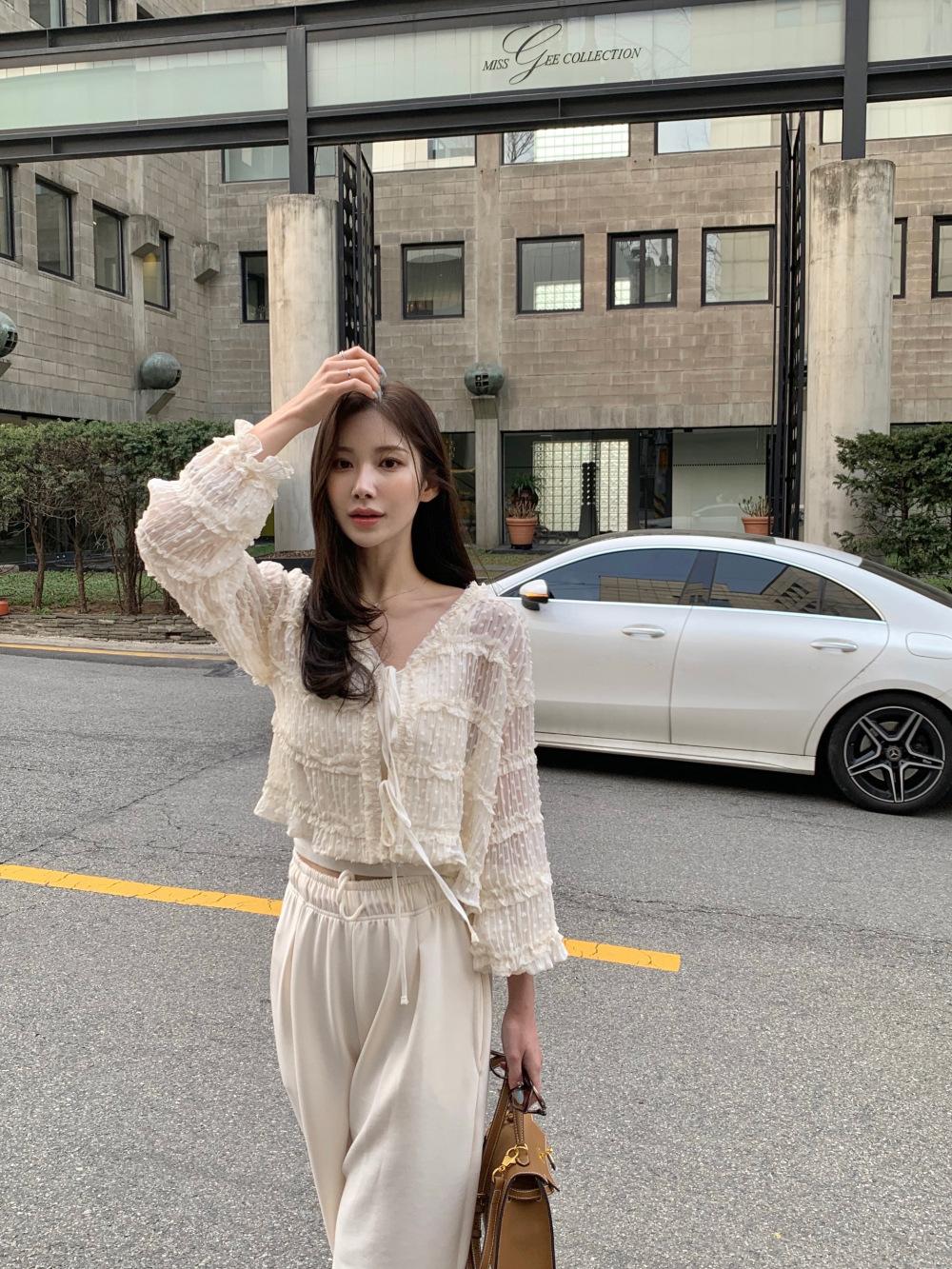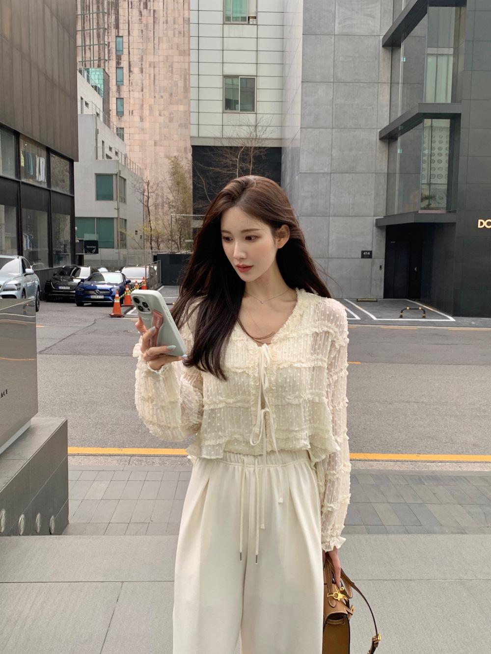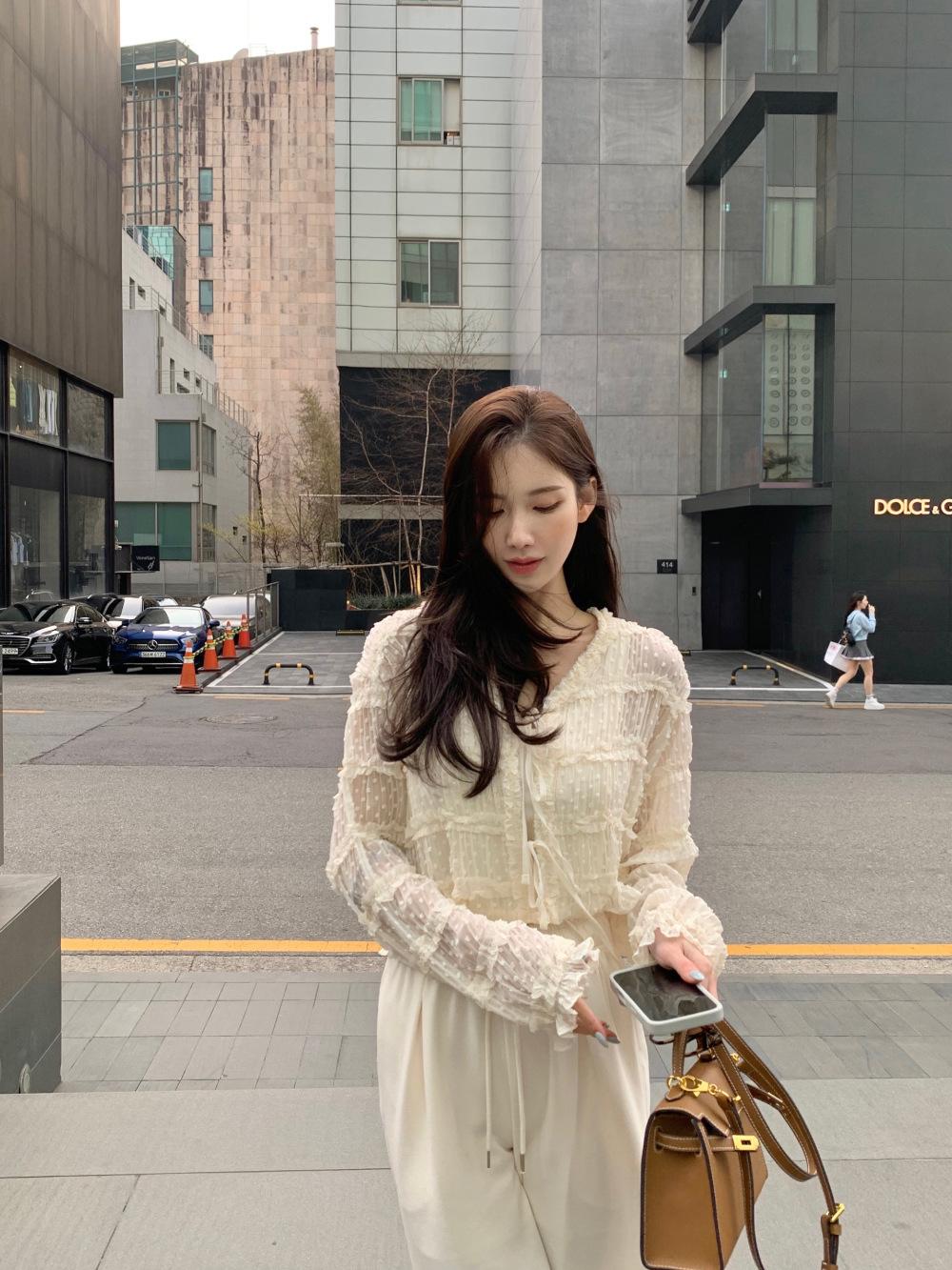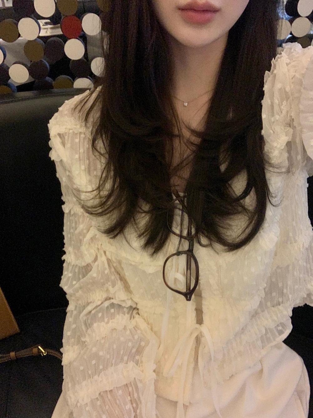 Compra Coreano ins encaje pajarita encaje volantes camisa corta mujer 2025 otoño nuevo top dulce al por mayor en Joom.pro