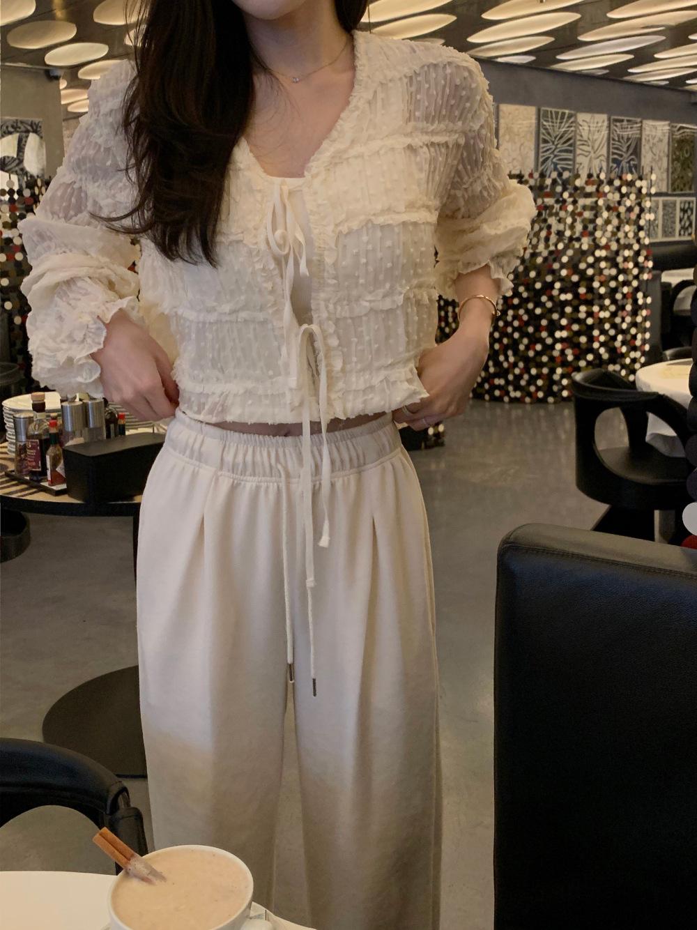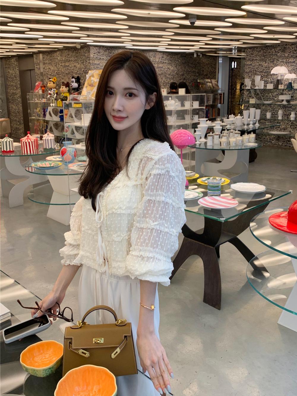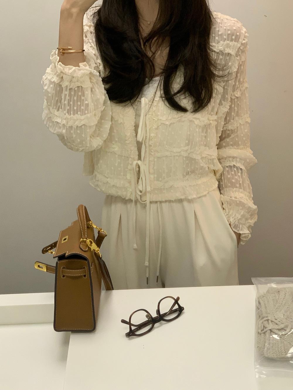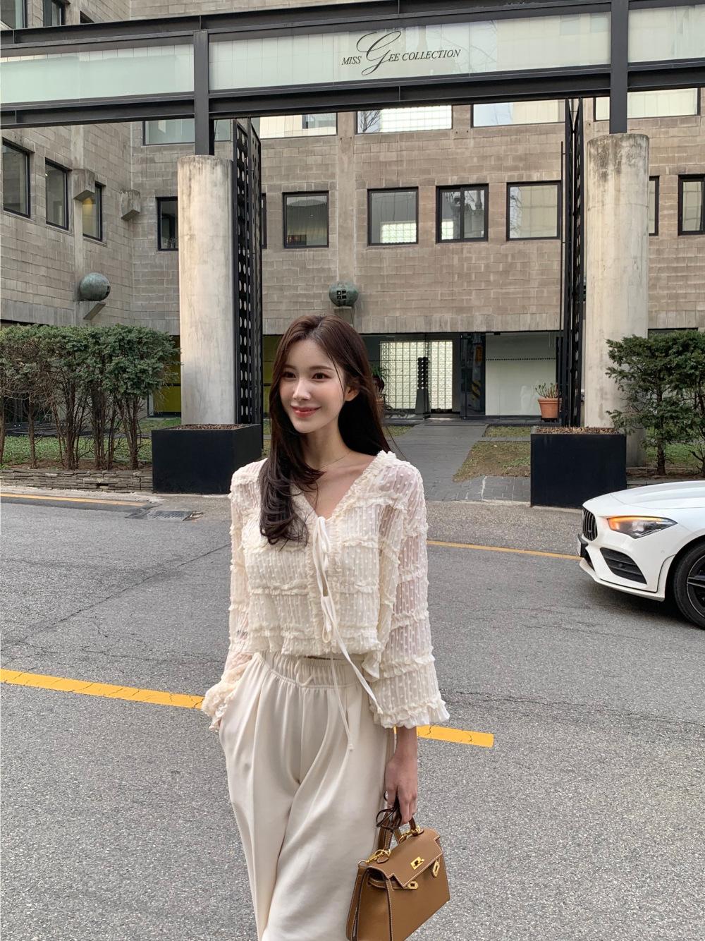 Compra Coreano ins encaje pajarita encaje volantes camisa corta mujer 2025 otoño nuevo top dulce al por mayor en Joom.pro