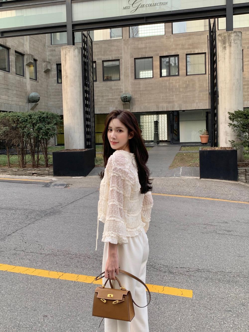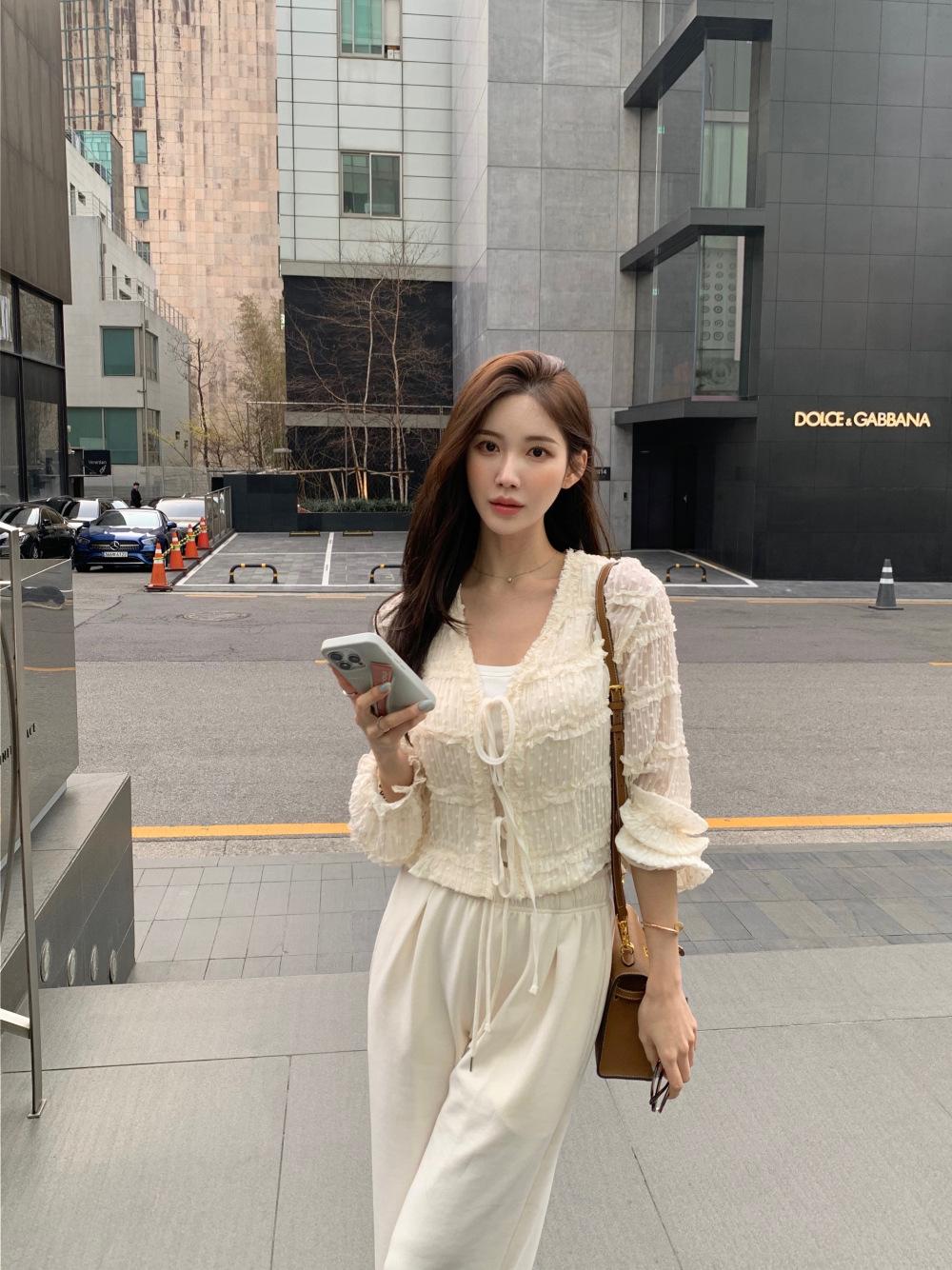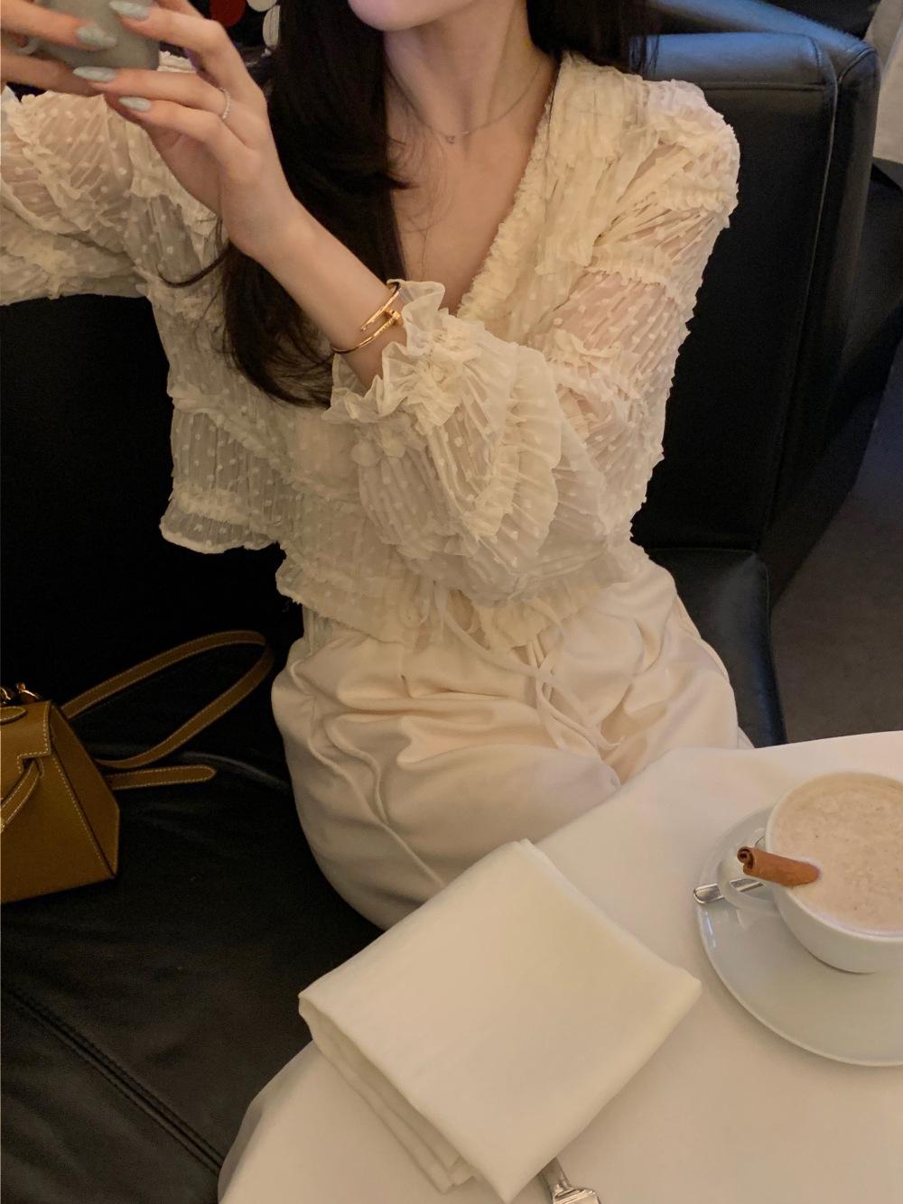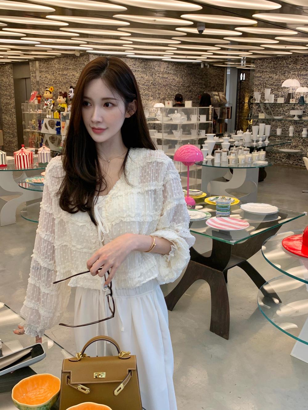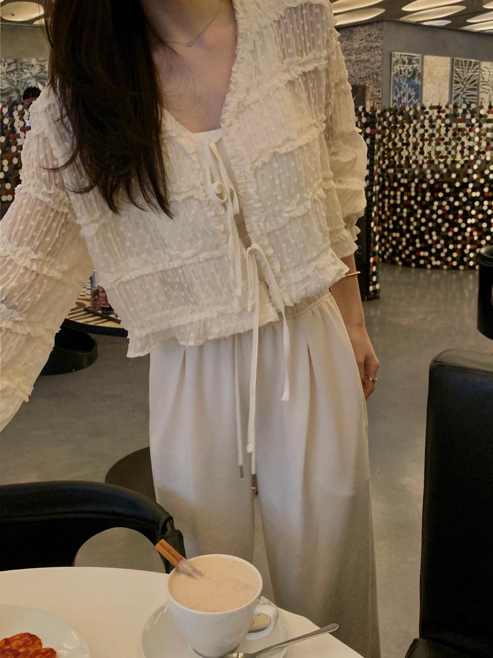 Compra Coreano ins encaje pajarita encaje volantes camisa corta mujer 2025 otoño nuevo top dulce al por mayor en Joom.pro