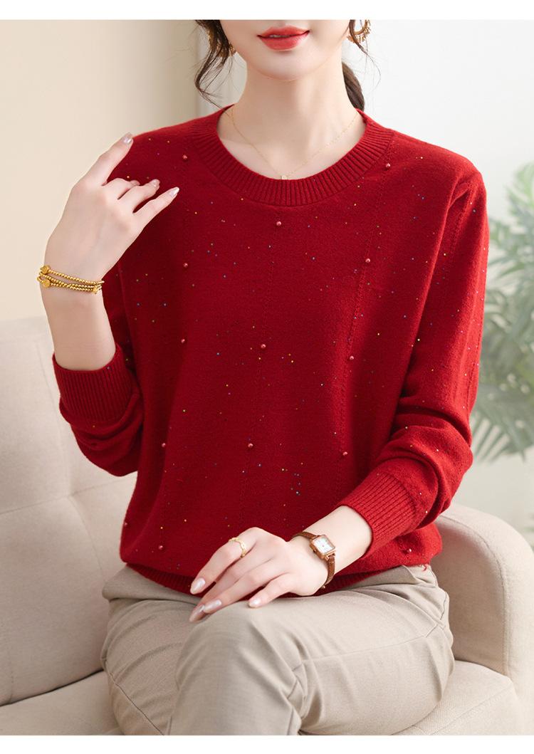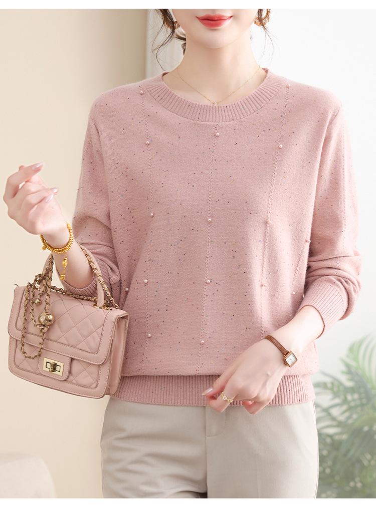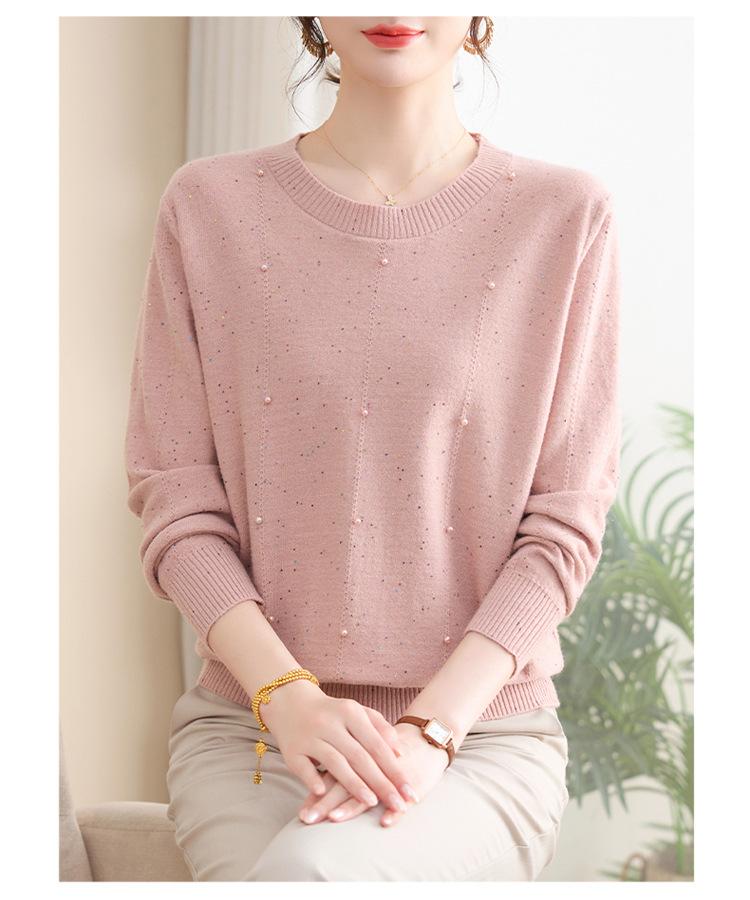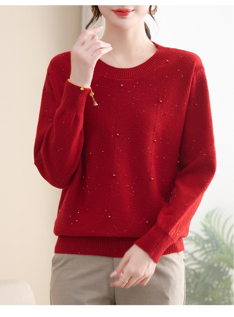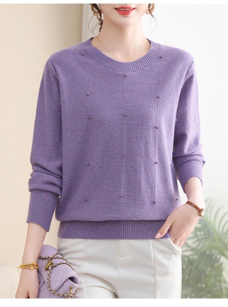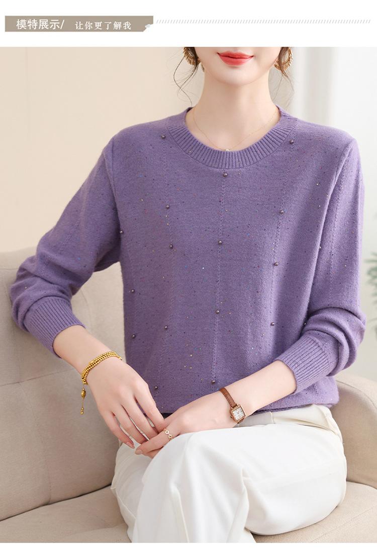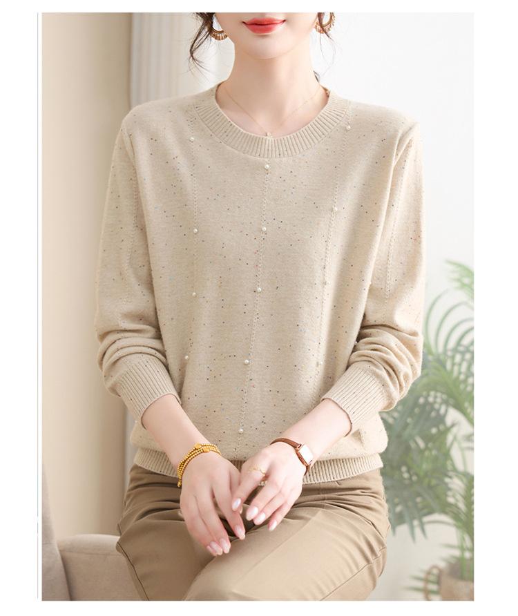 Suéter delgado de punto básico de manga larga con cuello redondo para mujeres de mediana edad y mayores, para primavera y otoño, top moderno de tendencia