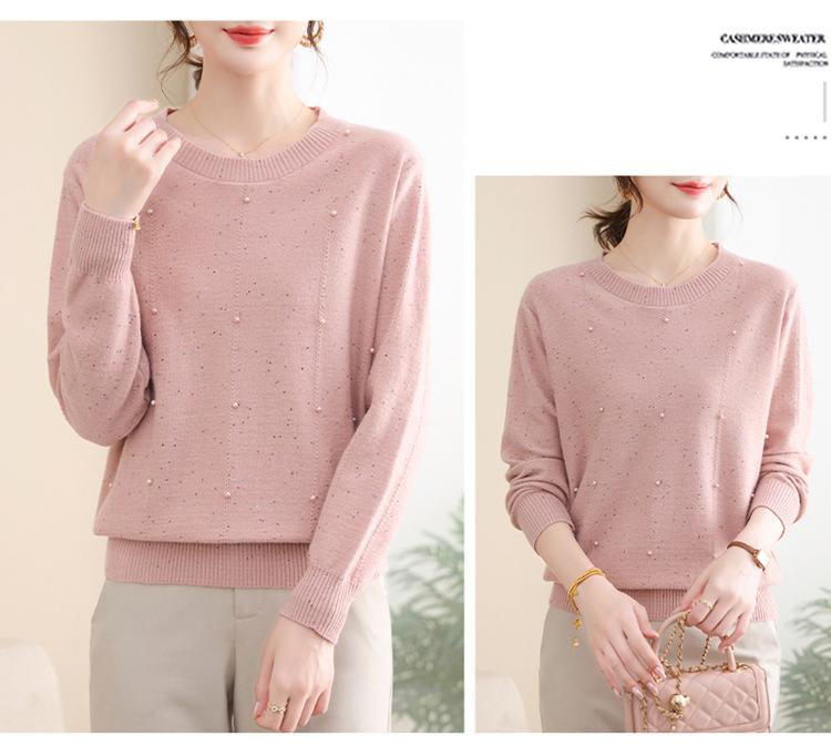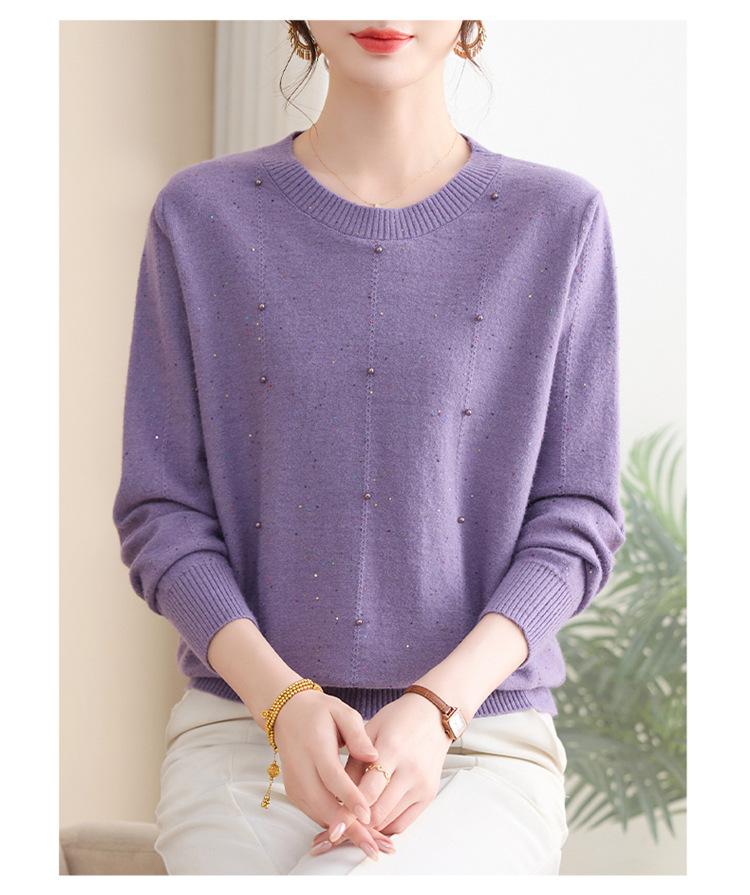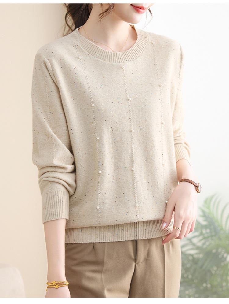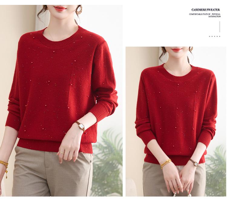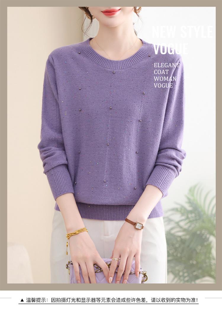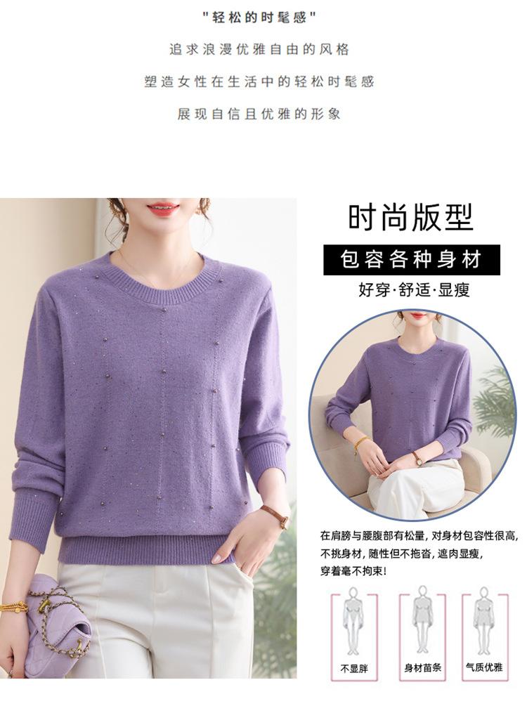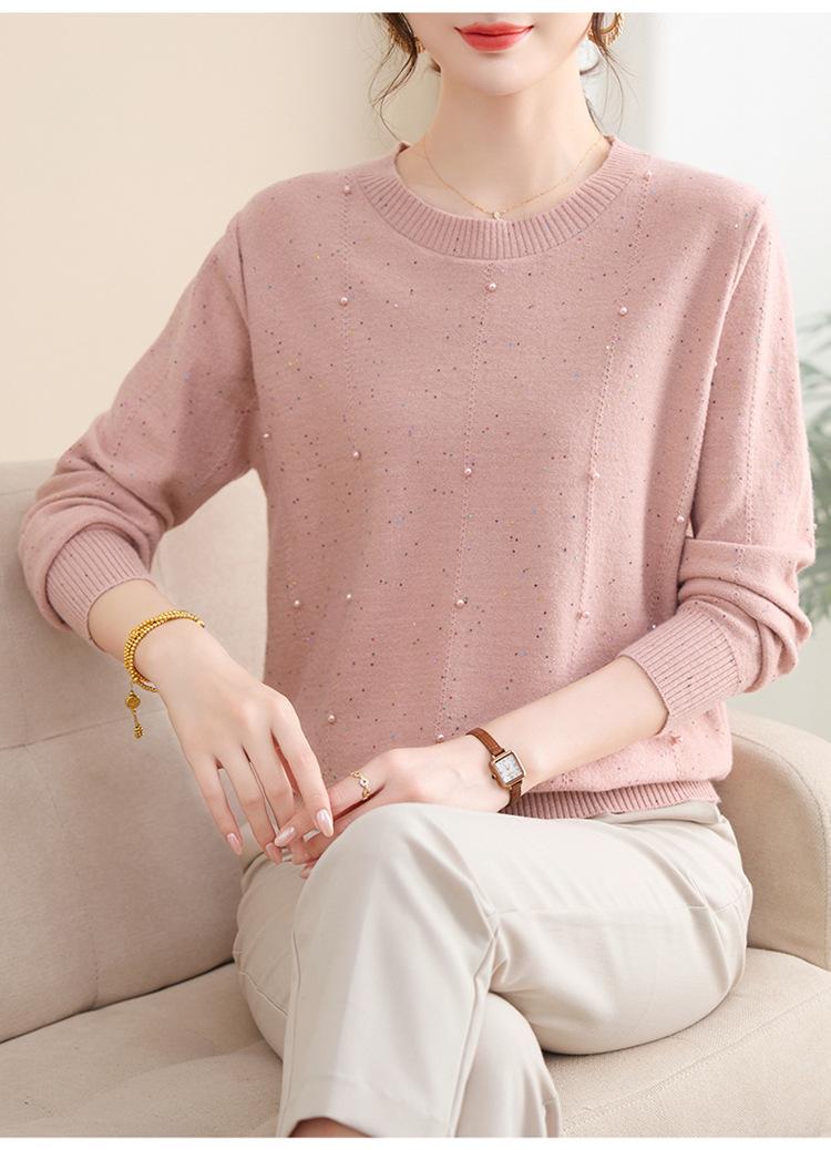 Suéter delgado de punto básico de manga larga con cuello redondo para mujeres de mediana edad y mayores, para primavera y otoño, top moderno de tendencia