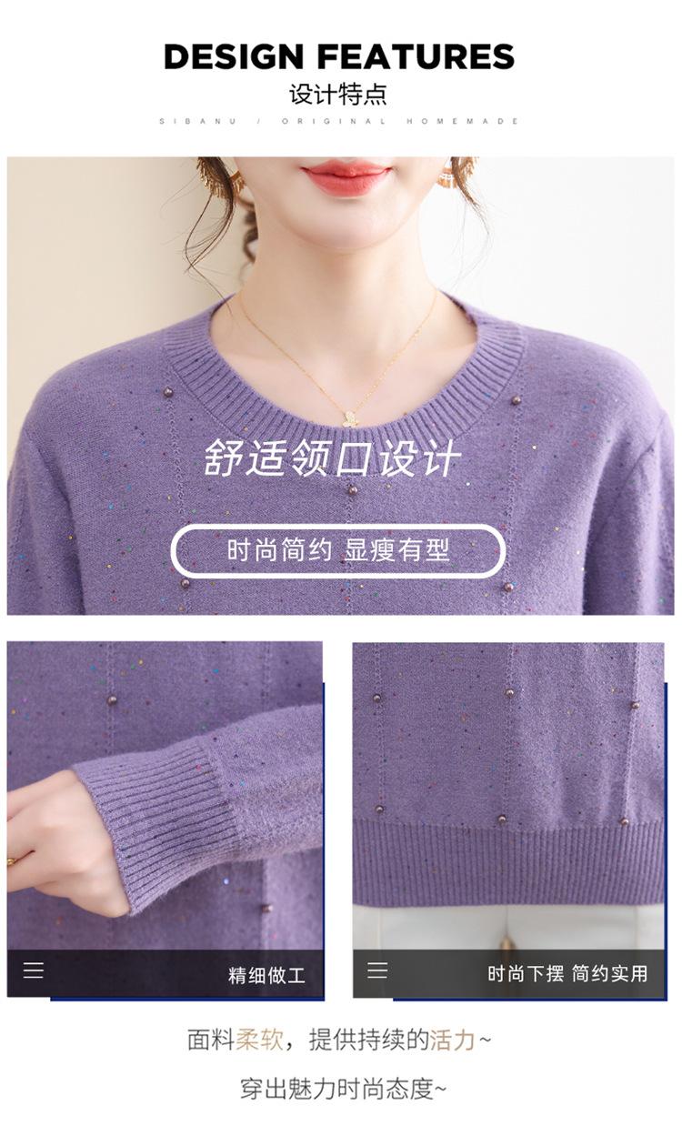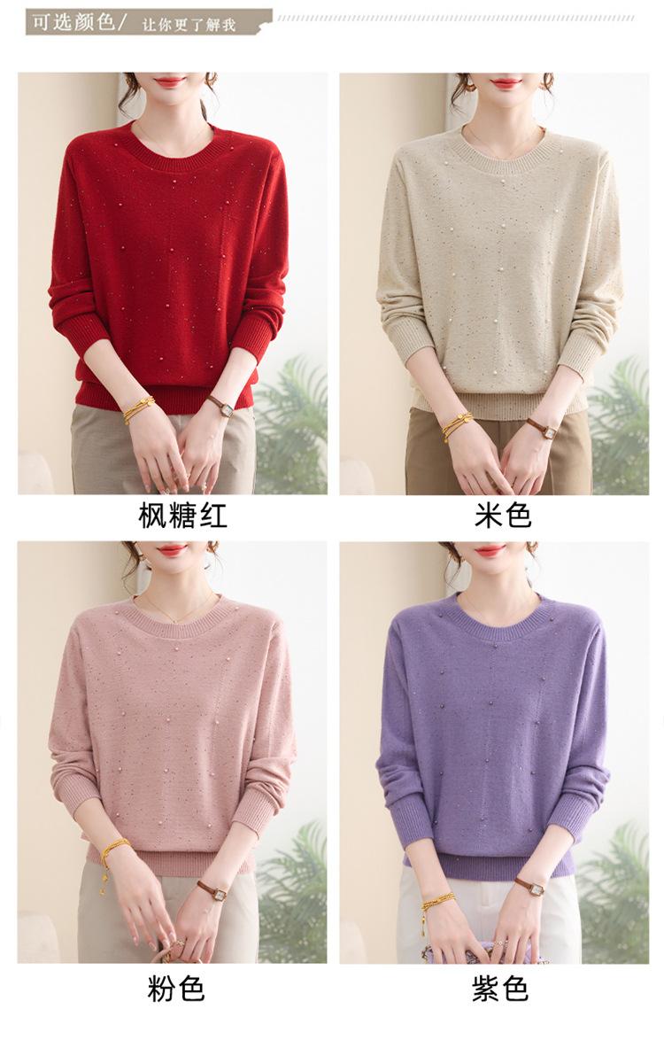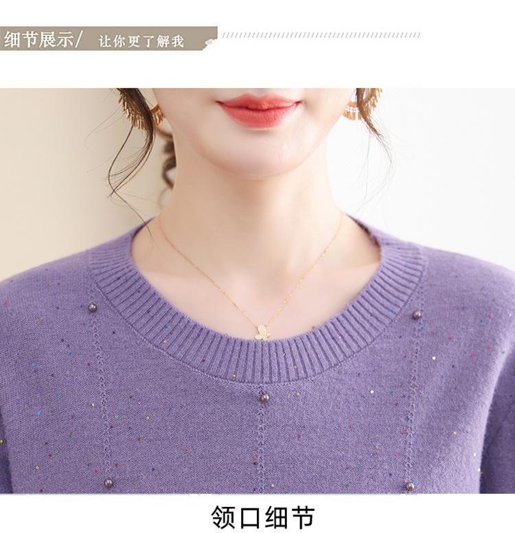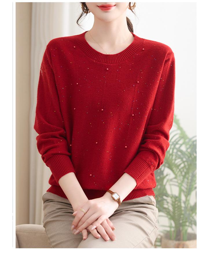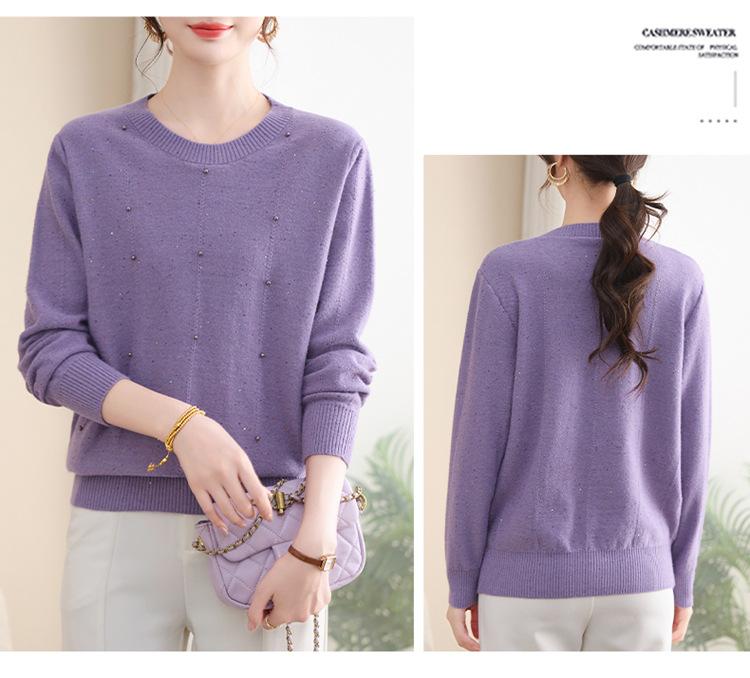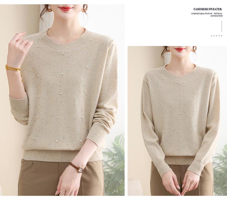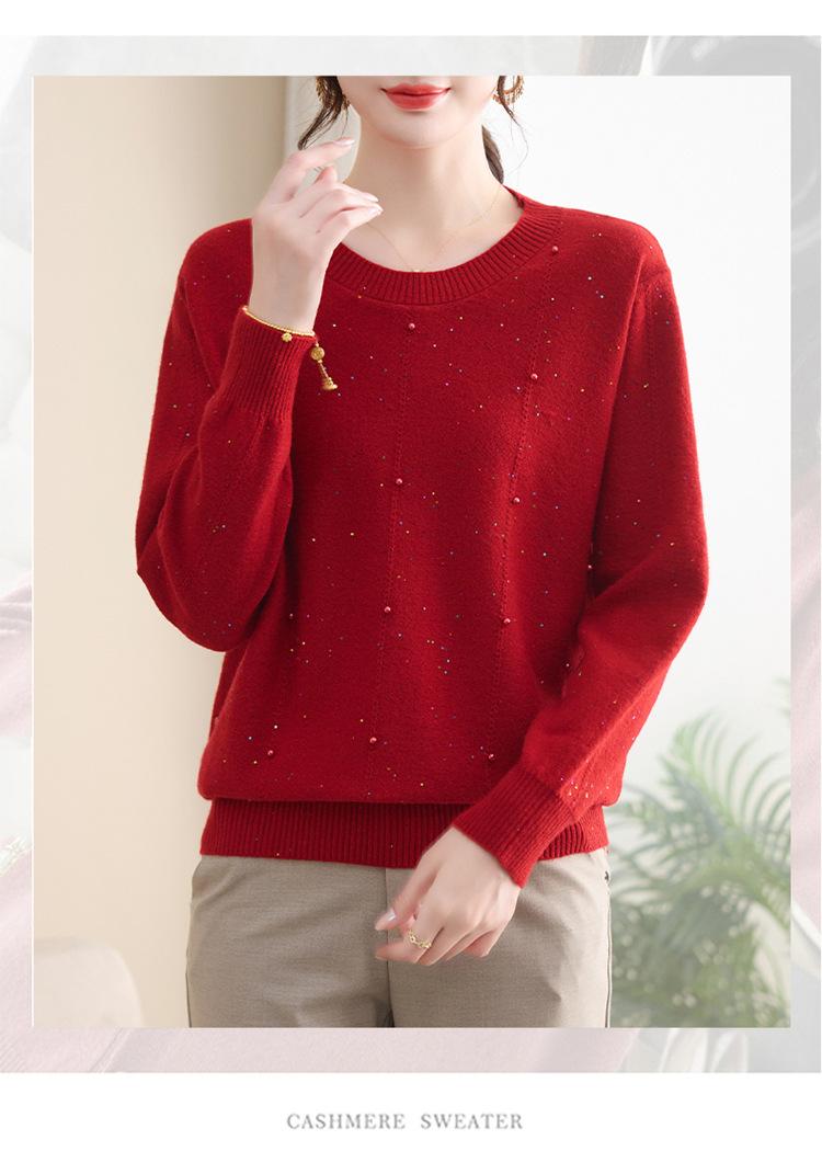 Suéter delgado de punto básico de manga larga con cuello redondo para mujeres de mediana edad y mayores, para primavera y otoño, top moderno de tendencia
