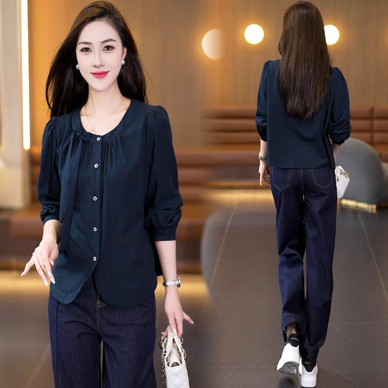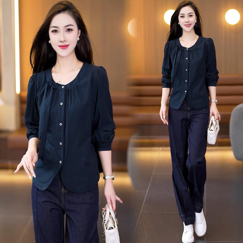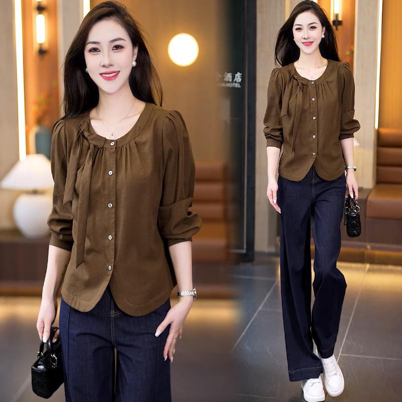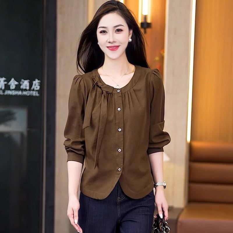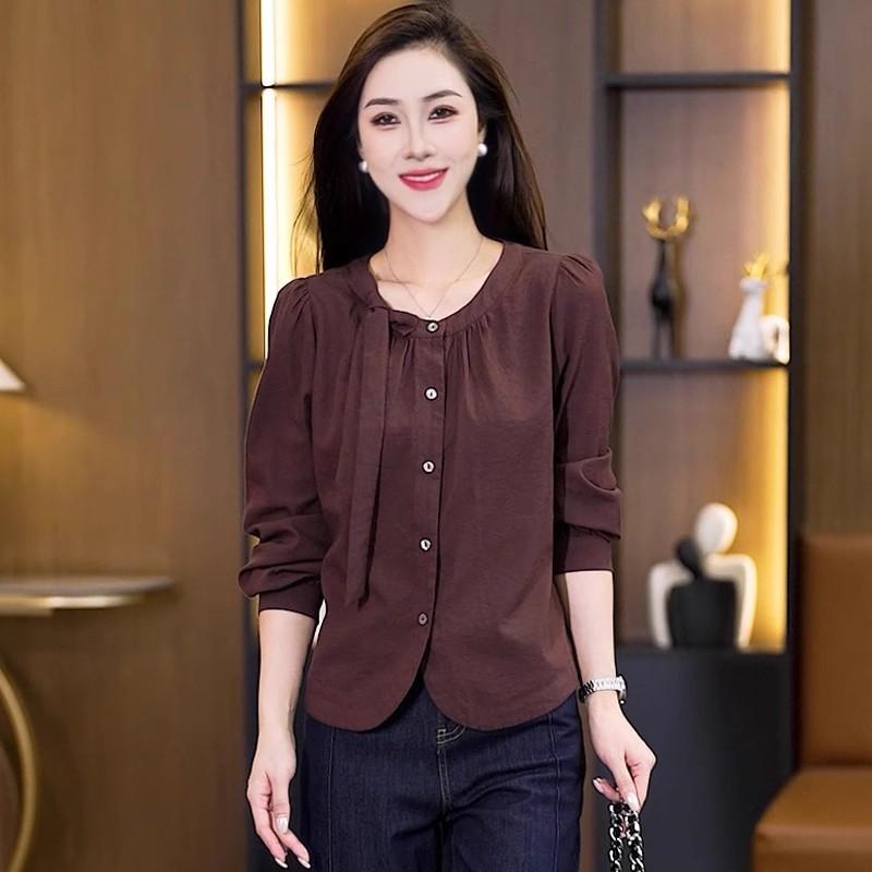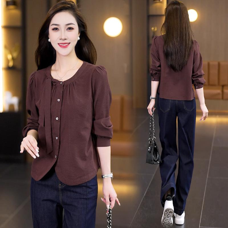Camisa de Manga Larga de Moda para Mujer 2025 Otoño Nuevo Estilo Diseño Adelgazante de Moda Sentido Lazo Versátil Camisa Casual Top