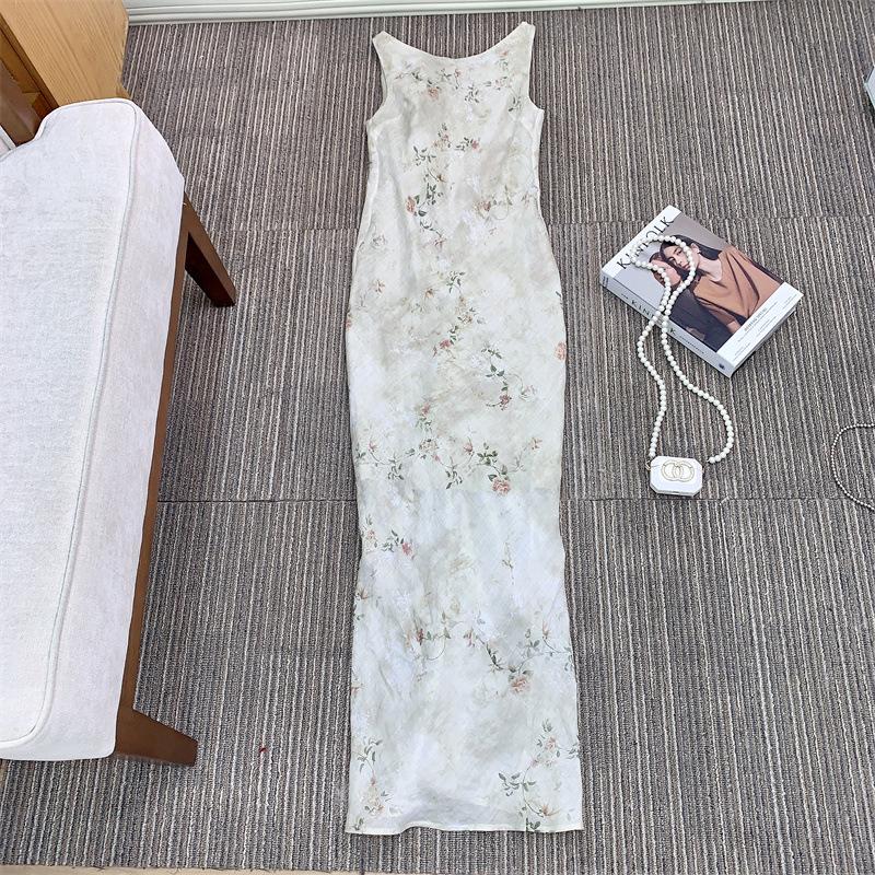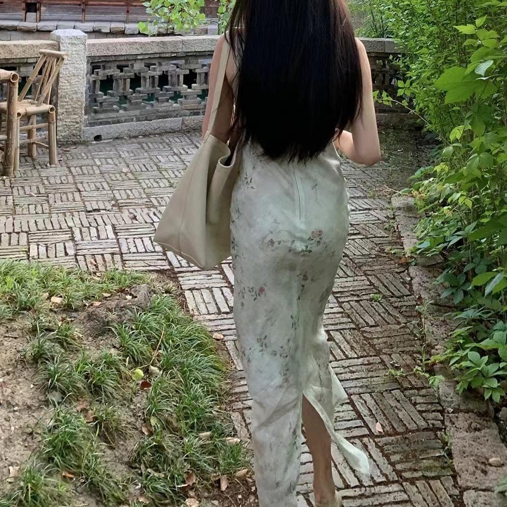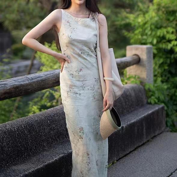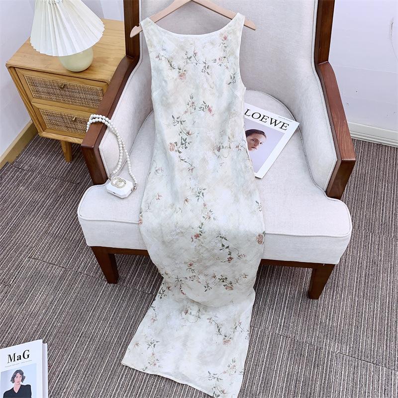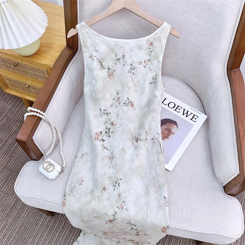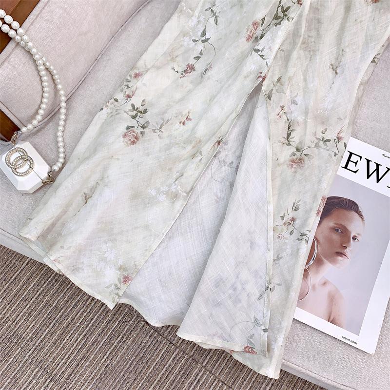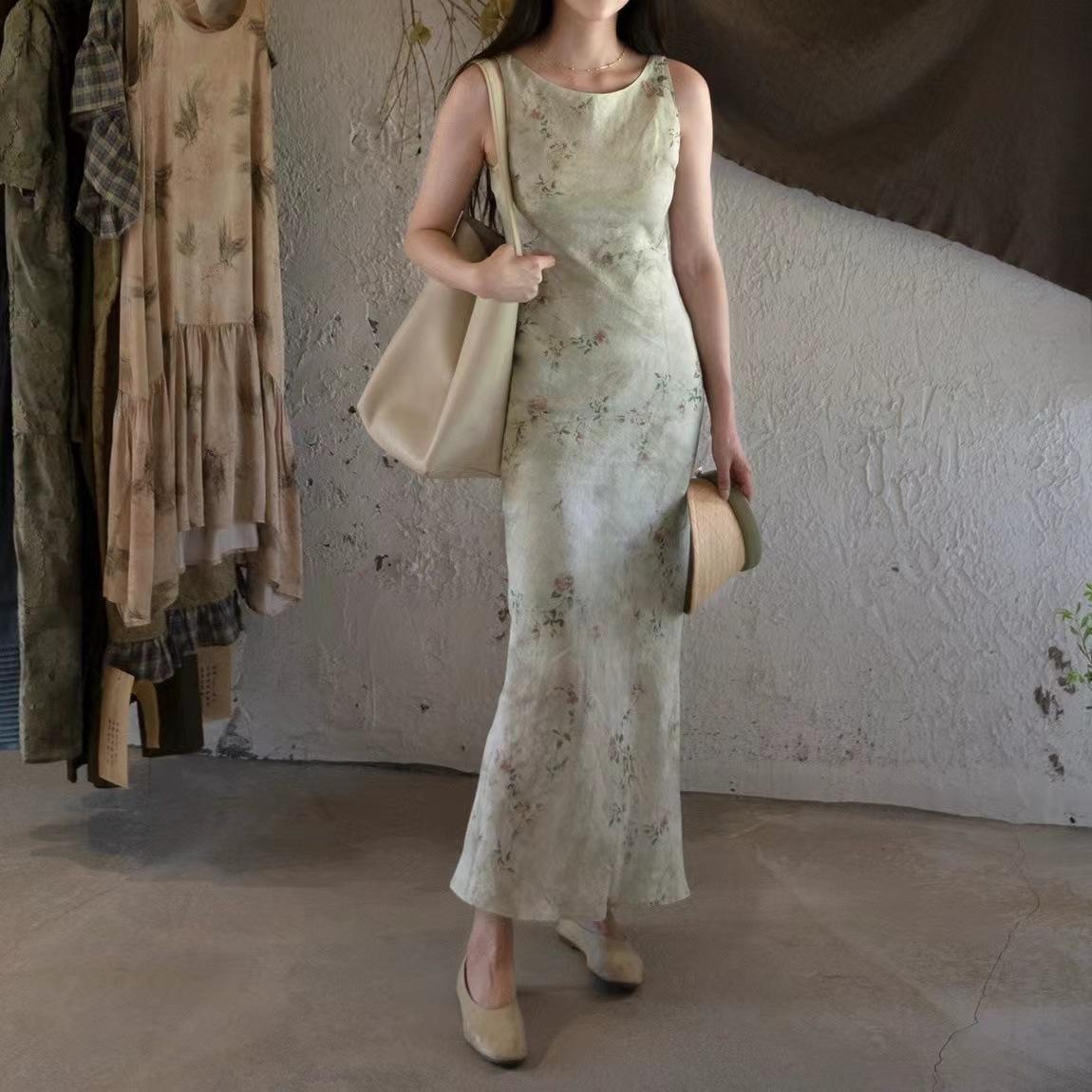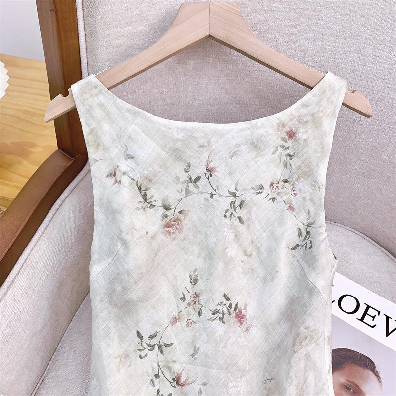 Compra Lunares Floati Ramie Corte al Bies Estilo Nacional Fresco Elegante Cintura Falda Larga Verano para Mujer Mono sin Mangas Estampado al por mayor en Joom.pro