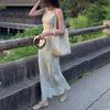Lunares Floati Ramie Corte al Bies Estilo Nacional Fresco Elegante Cintura Falda Larga Verano para Mujer Mono sin Mangas Estampado
