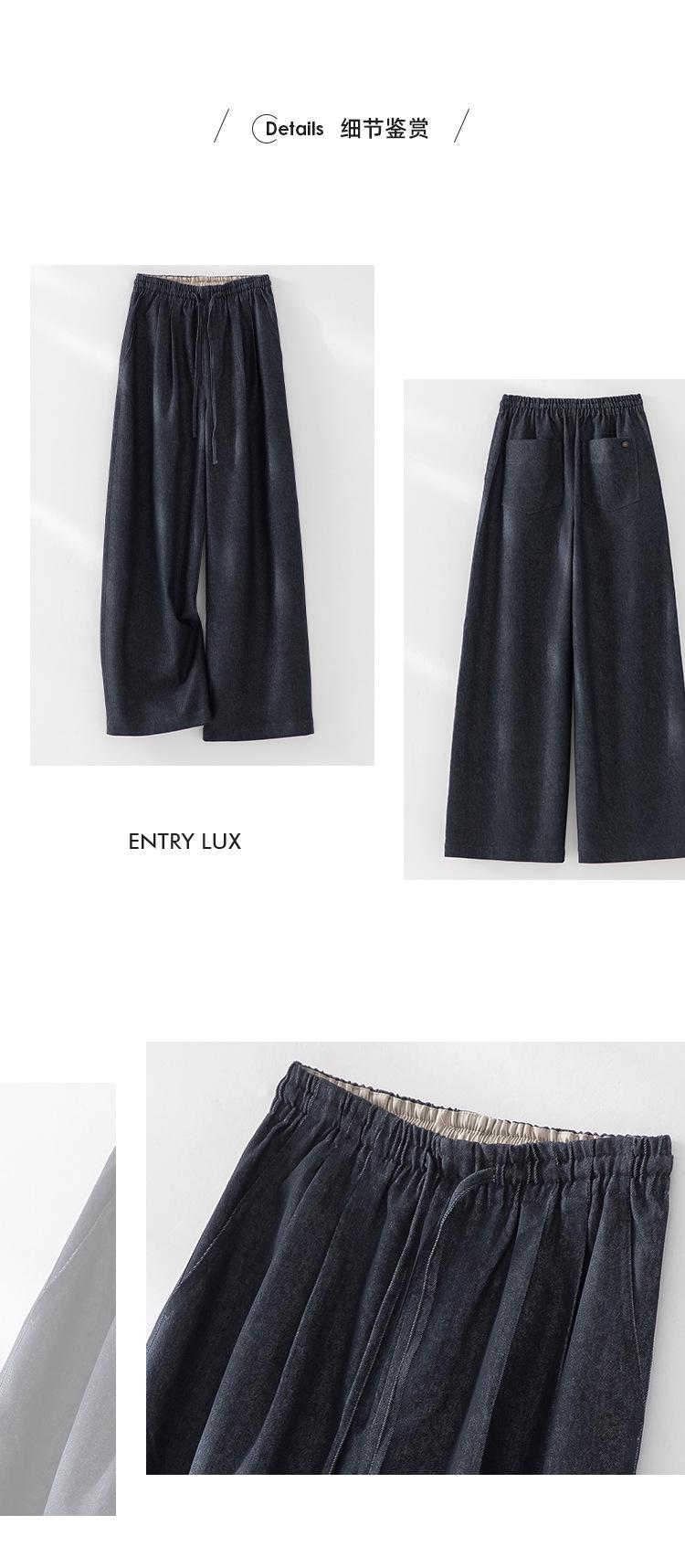 Pantalones de Pierna Ancha Mujer Holgados Adelgazantes Cubre Carne Cintura Elástica Cordón Jeans Versátiles Pantalones Casuales Pantalones de Mujer 25 Otoño/Invierno Nuevo