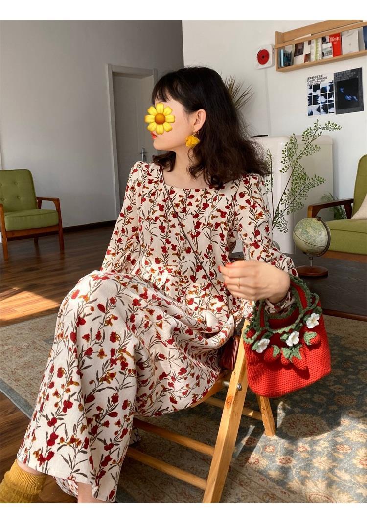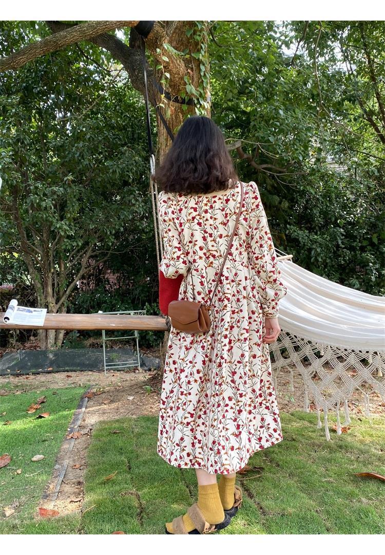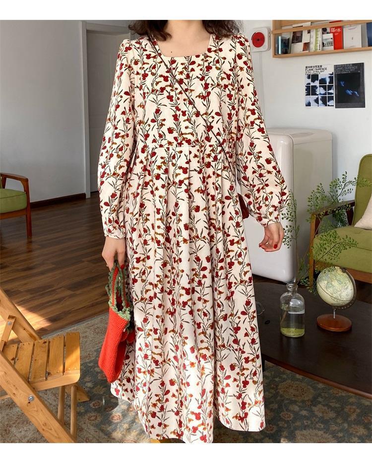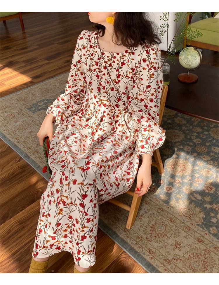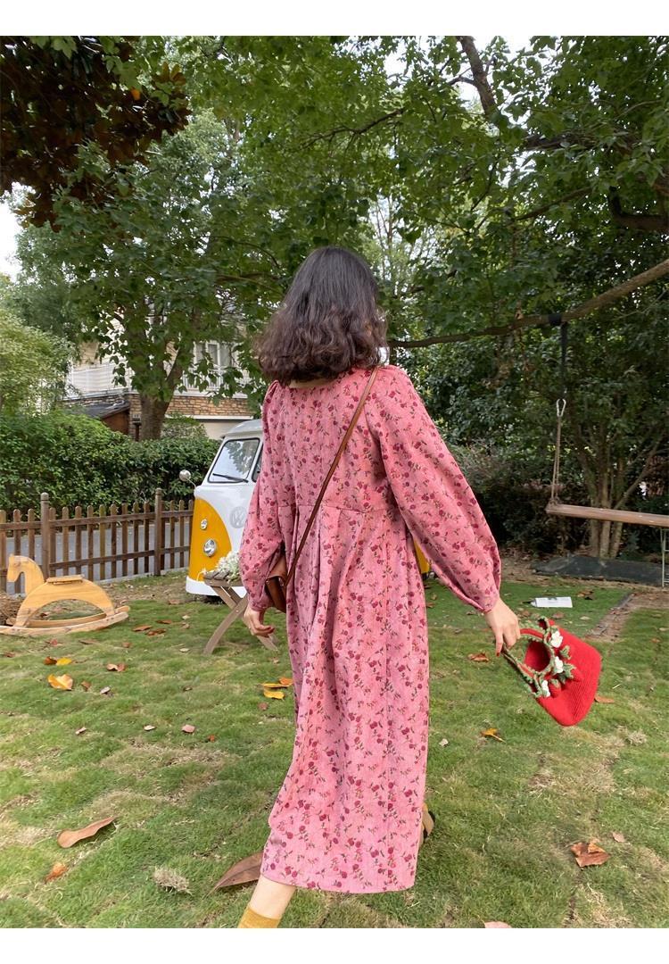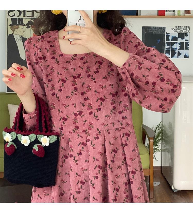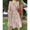 Compra Vestido floral rosa mujer primavera y otoño 2025 largo cuello cuadrado cintura alta temperamento francés retro vestido largo albaricoque malla al por mayor en Joom.pro