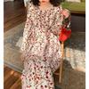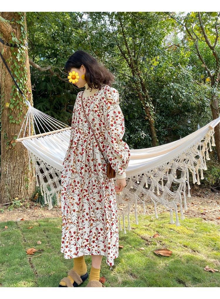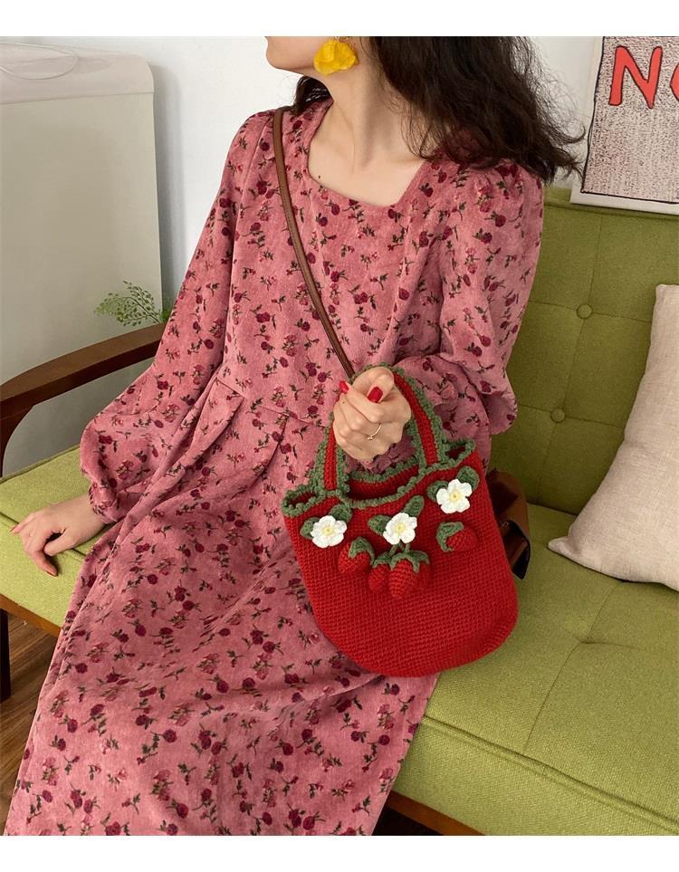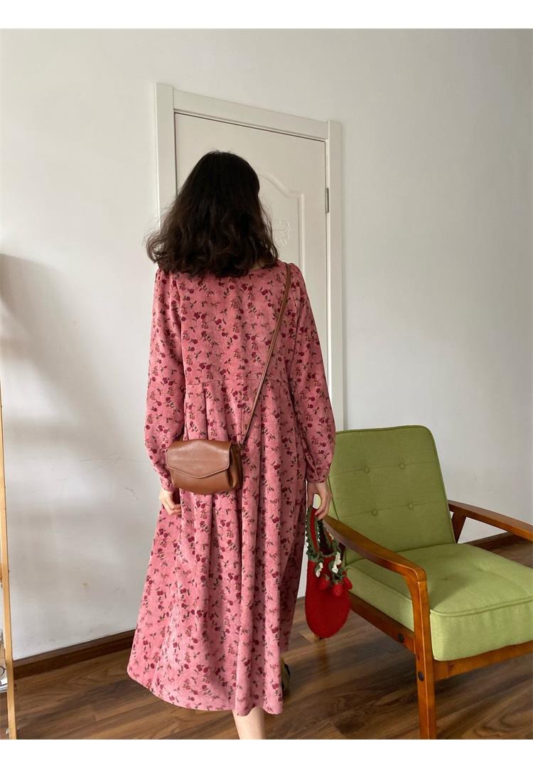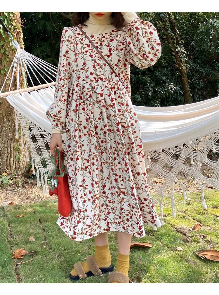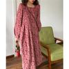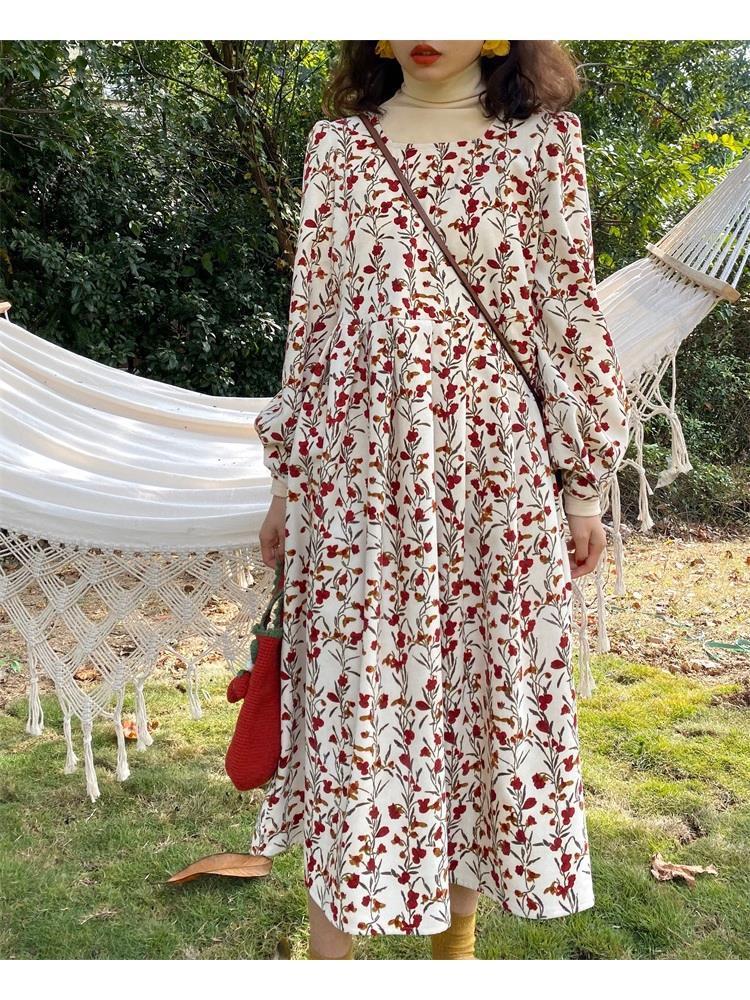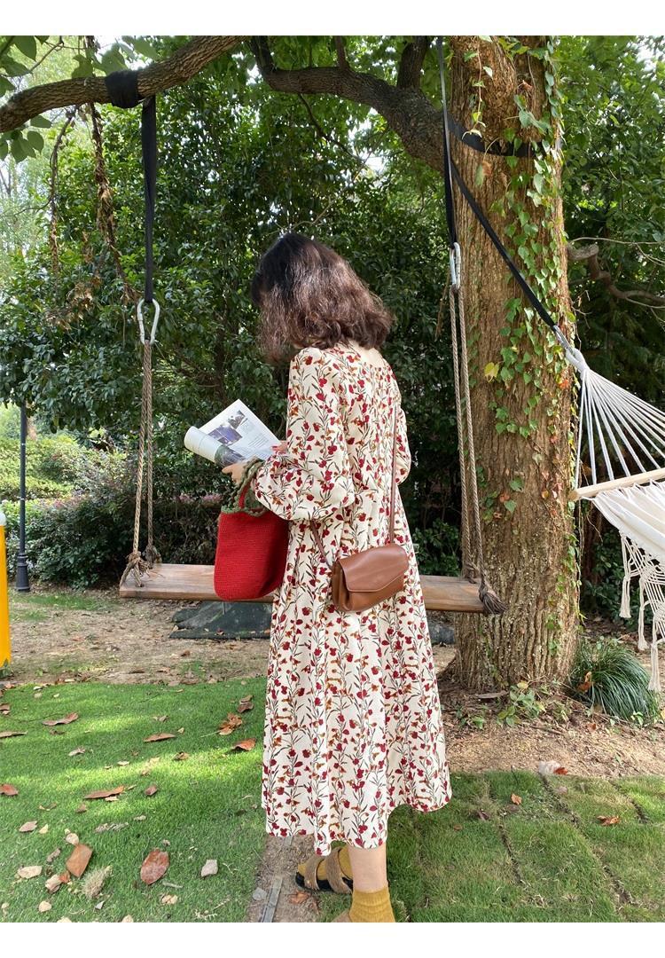 Compra Vestido floral rosa mujer primavera y otoño 2025 largo cuello cuadrado cintura alta temperamento francés retro vestido largo albaricoque malla al por mayor en Joom.pro