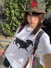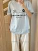 Playera de Algodón Puro de Manga Corta para Mujer Talla Grande Jersey Estampado Manga Media Coreana Casual Dulce Fresca Top