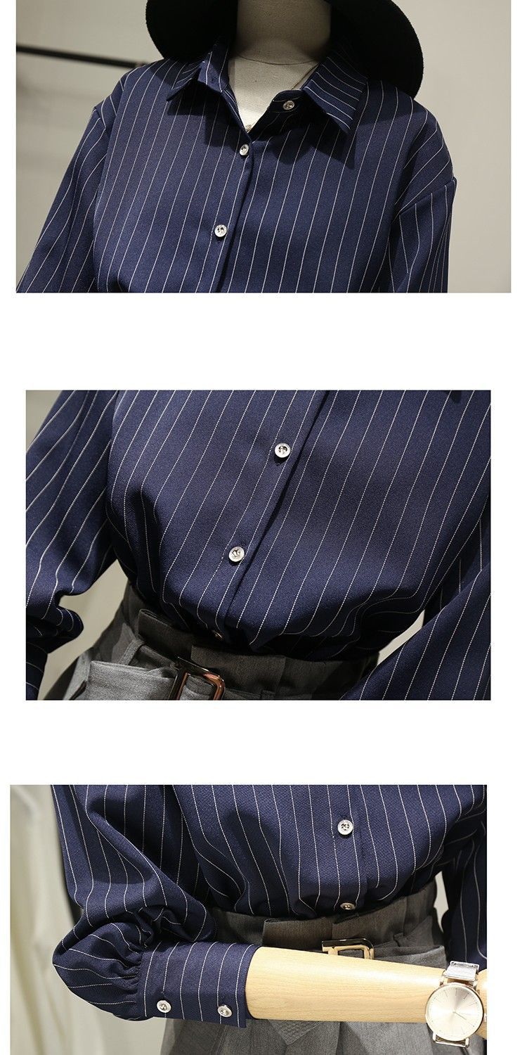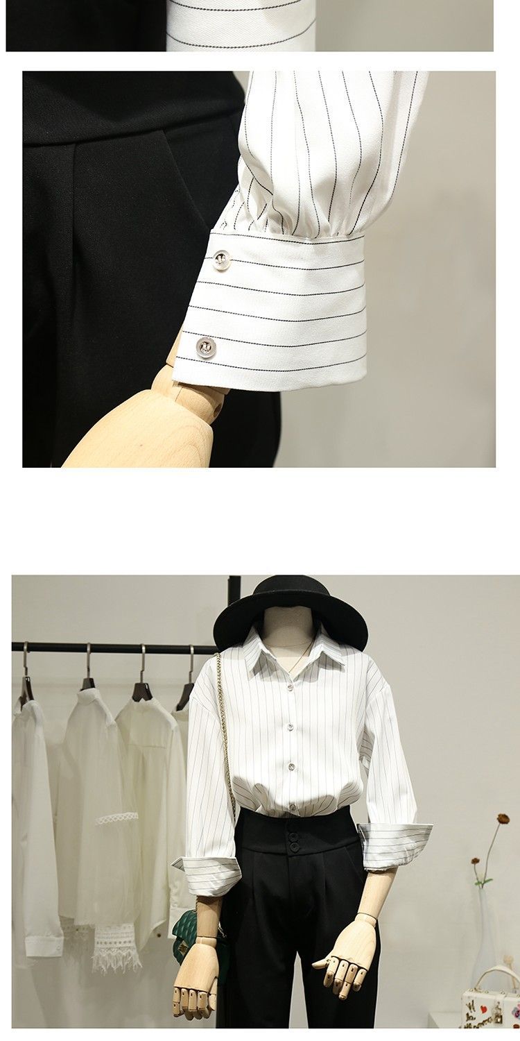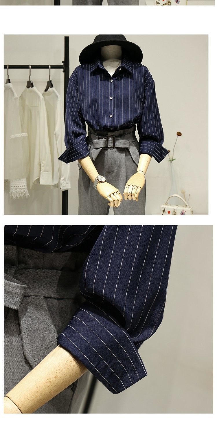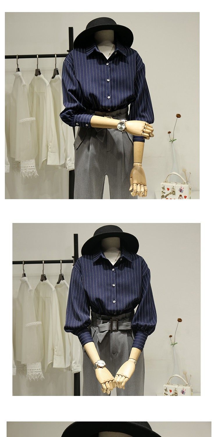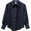 Camisa a rayas mujer sentido del diseño nicho 2025 primavera hombro caído manga tres cuartos principios de primavera top de mujer temperamento retro estilo Hong Kong