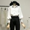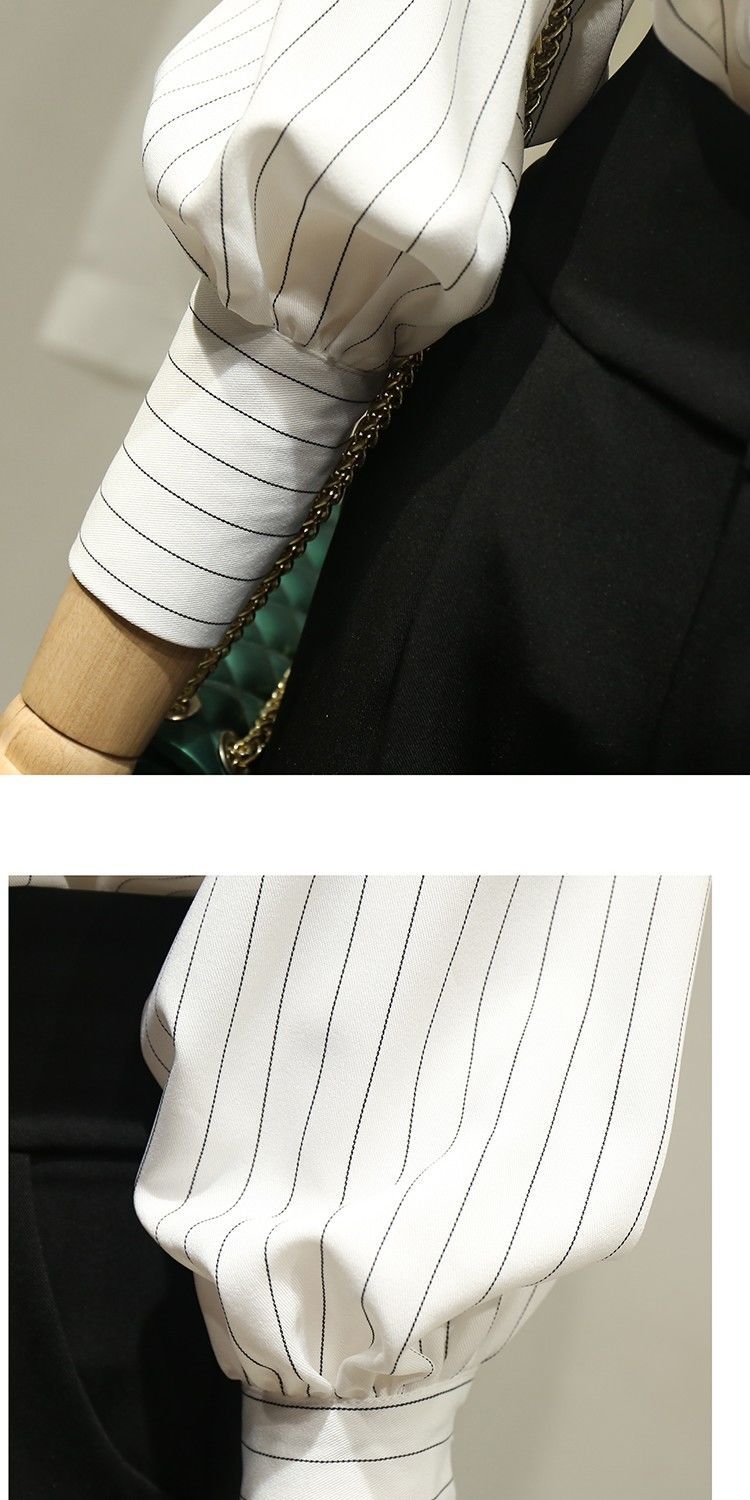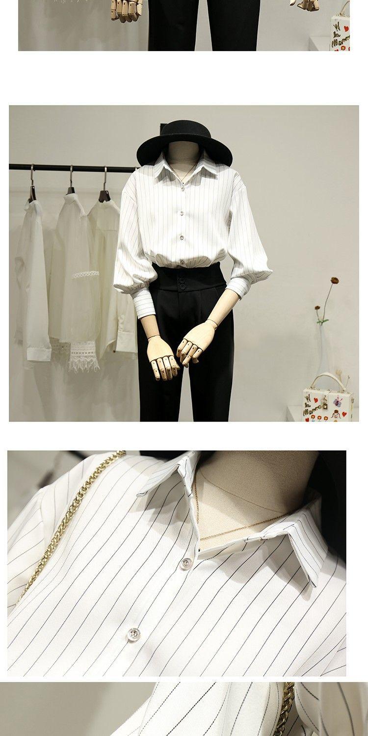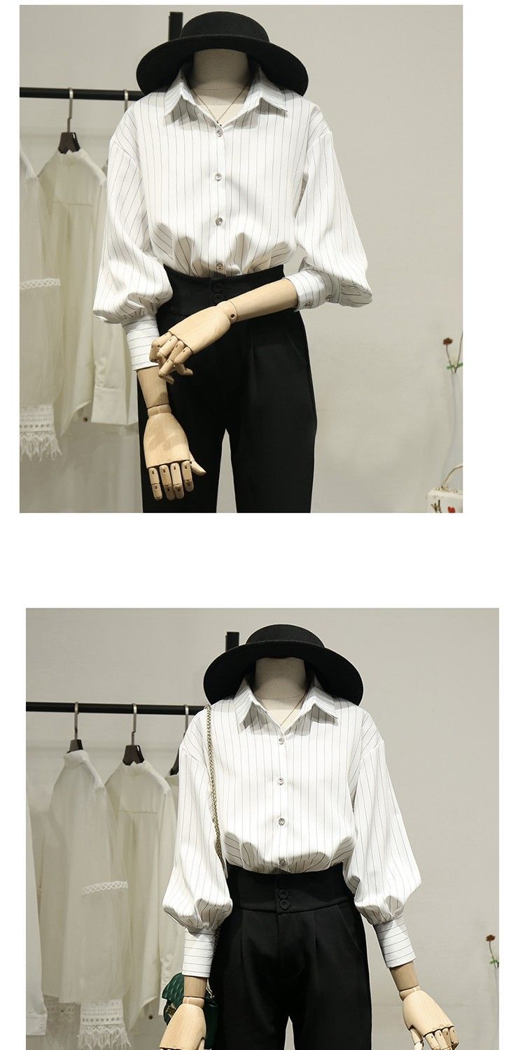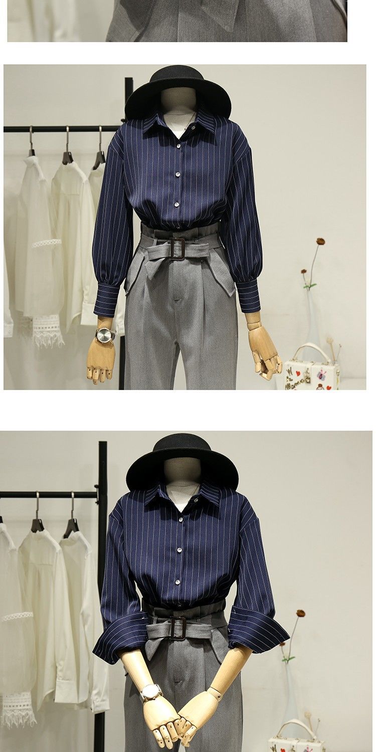 Camisa a rayas mujer sentido del diseño nicho 2025 primavera hombro caído manga tres cuartos principios de primavera top de mujer temperamento retro estilo Hong Kong