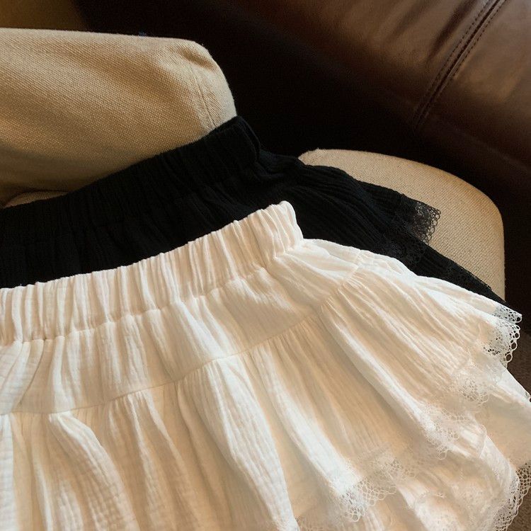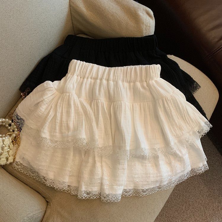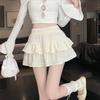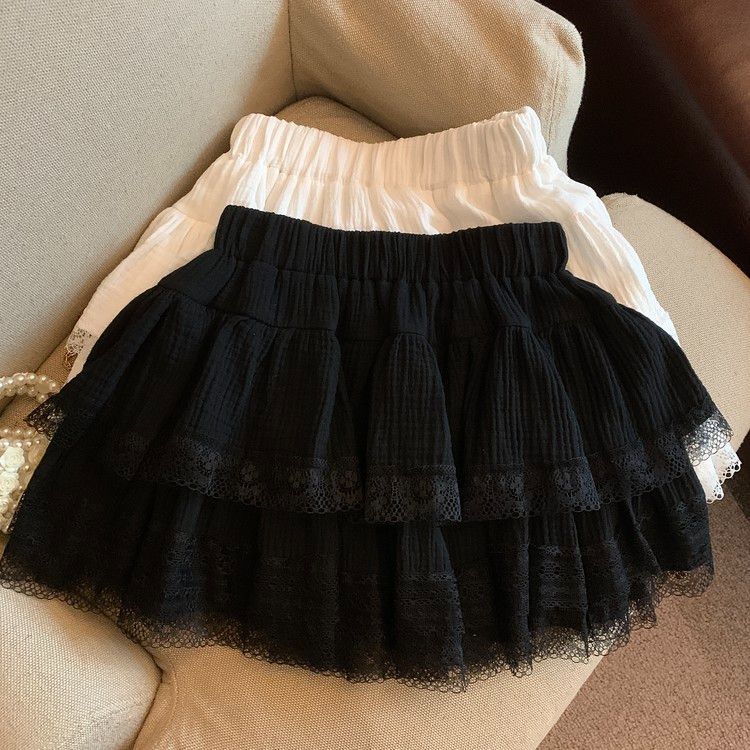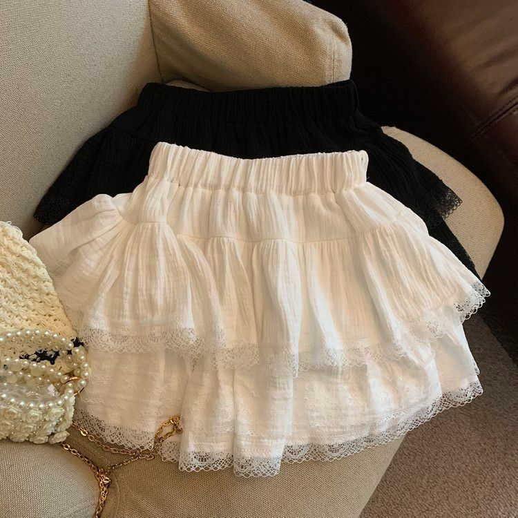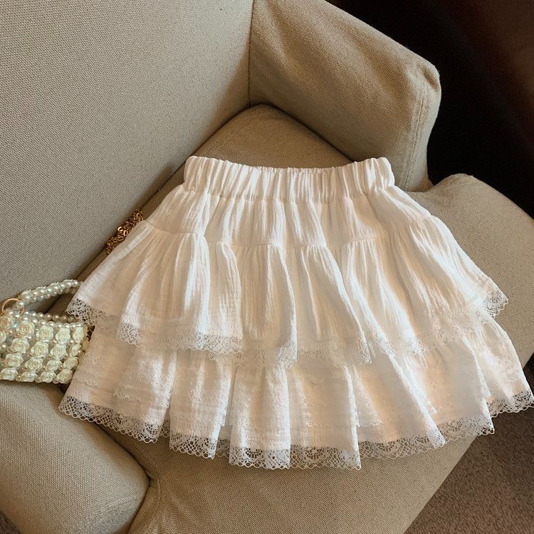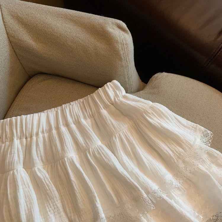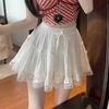 Falda Blanca Estilo Ballet Francés Abullonada para Mujer Primavera y Verano Falda con Volantes Cintura Alta Línea A Falda de Encaje