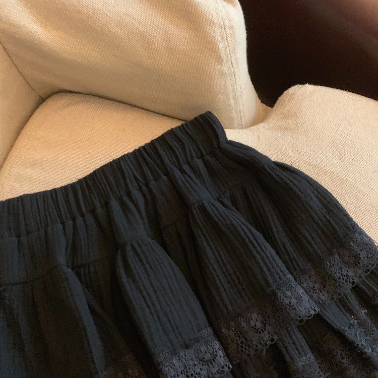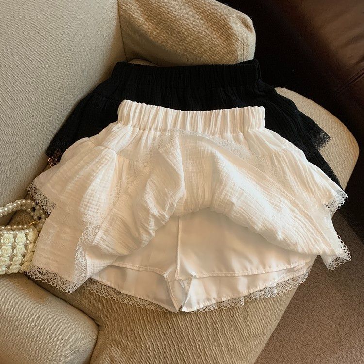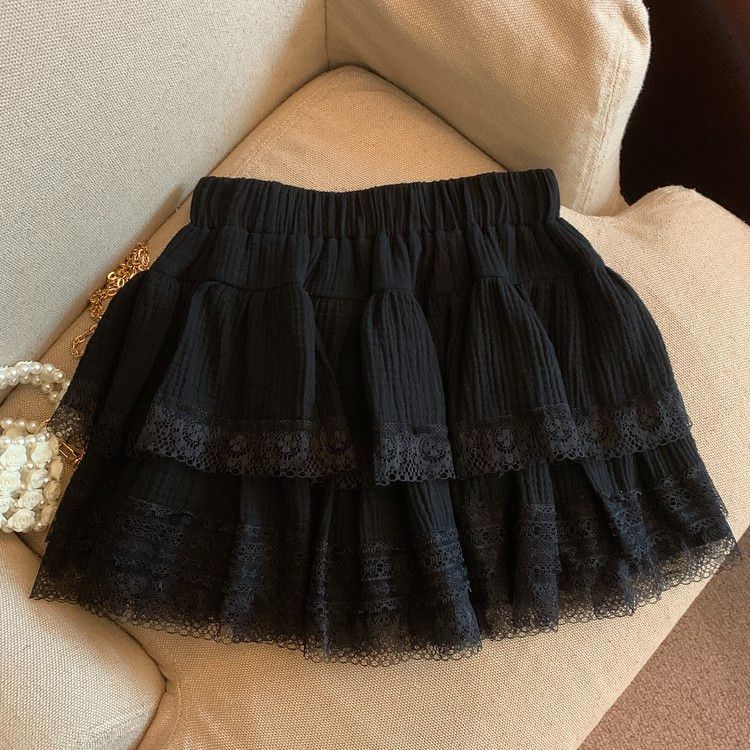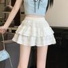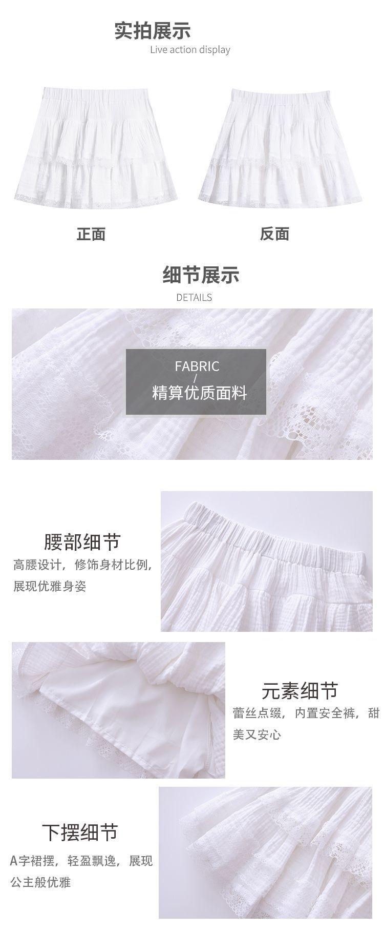 Falda Blanca Estilo Ballet Francés Abullonada para Mujer Primavera y Verano Falda con Volantes Cintura Alta Línea A Falda de Encaje