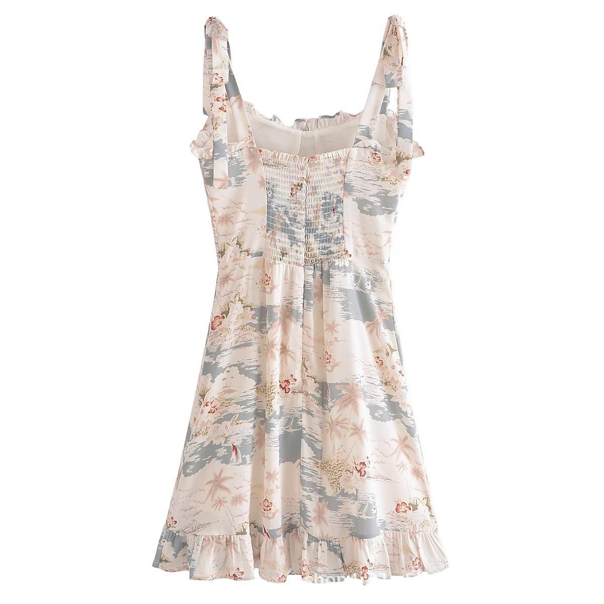 Vestido de Verano para Mujer Francés Sexy de Tirantes Temperamento Ajustado Adelgazante con Volantes Vestido de Vacaciones Falda al Mayoreo
