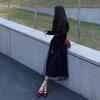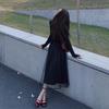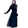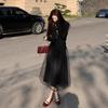 Traje de Otoño Temprano Estilo Maduro para Mujer Chic Bonita Falda Midi de Malla con Cárdigan de Punto Negro Conjunto de Dos Piezas