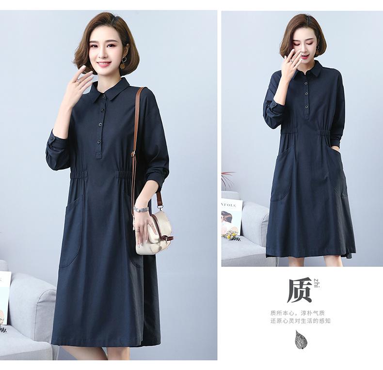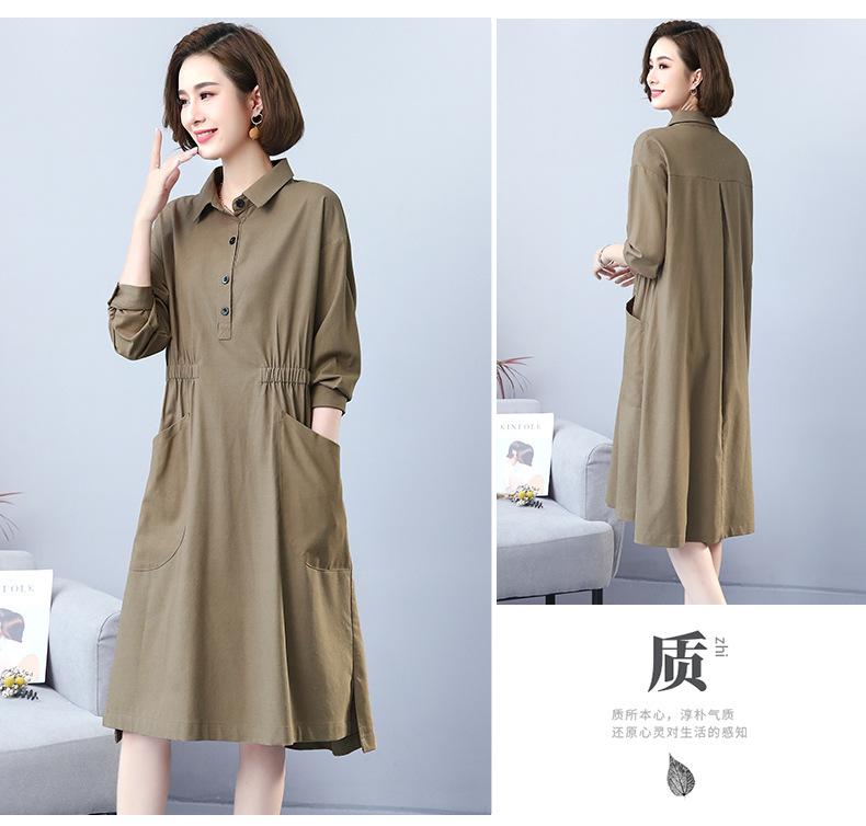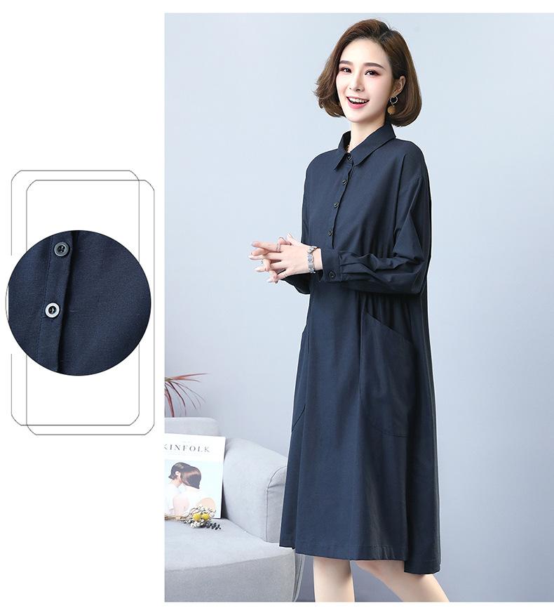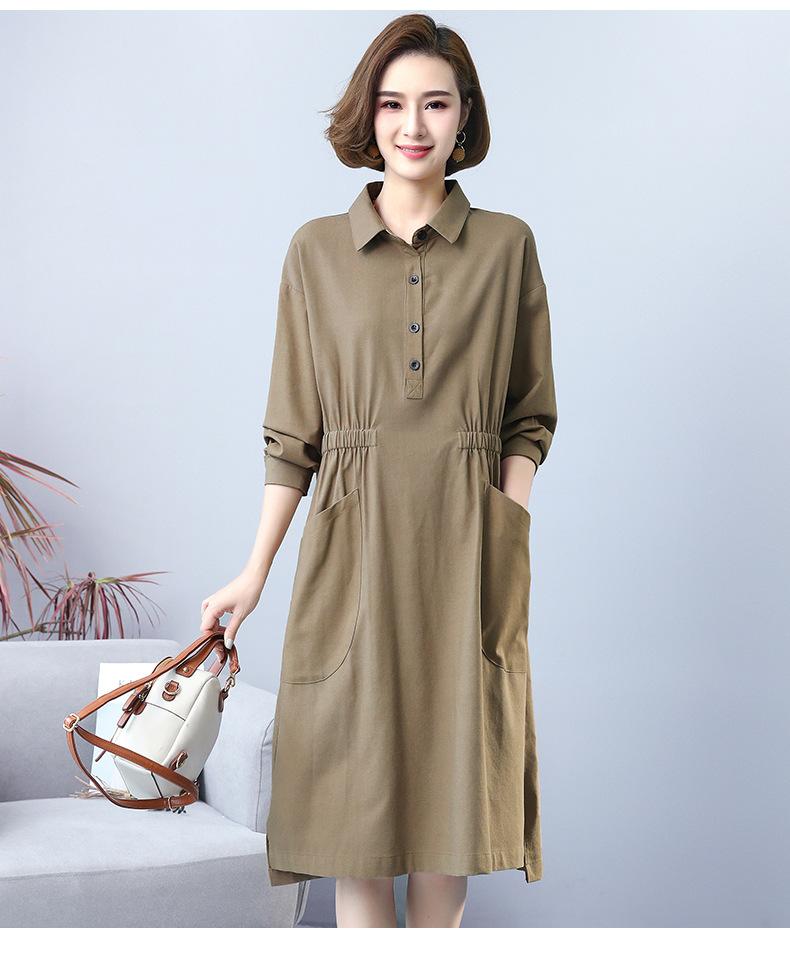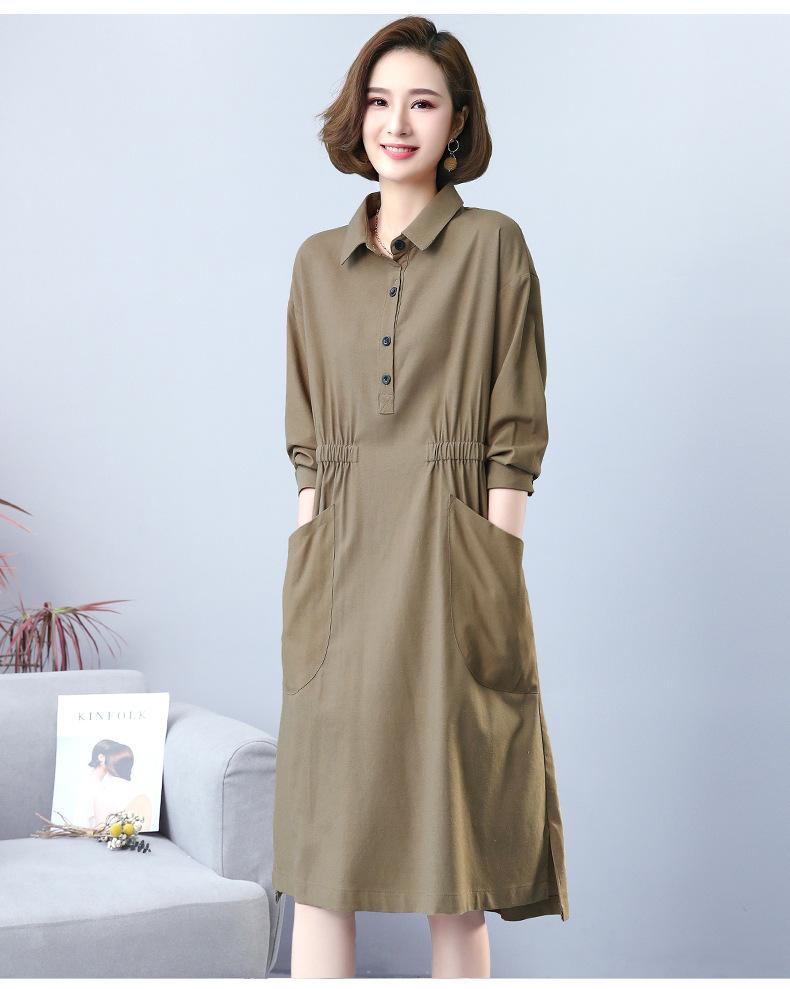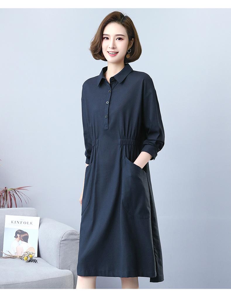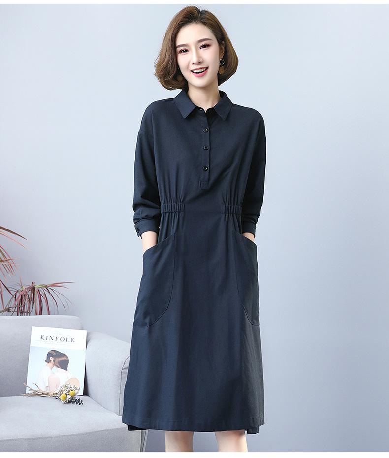 Compra Otoño Nuevo 2025 Estilo Coreano Color Sólido Largo Medio Casual Holgado Adelgazante Temperamento Vestido Camisero Manga Larga al por mayor en Joom.pro