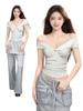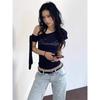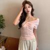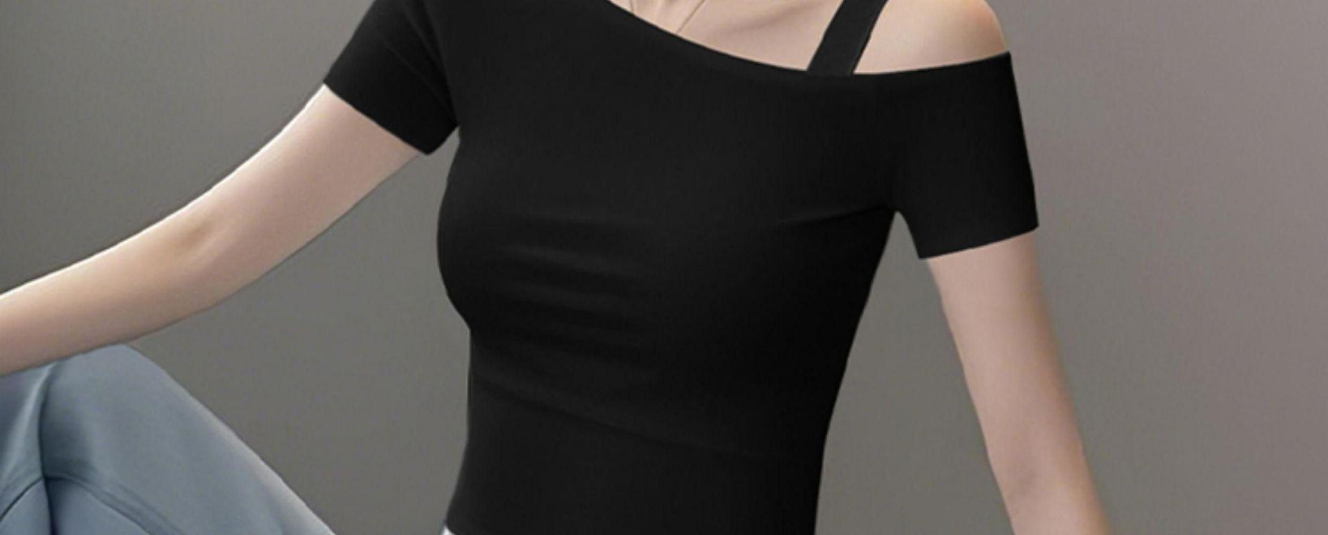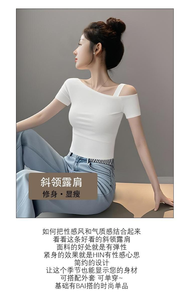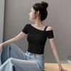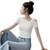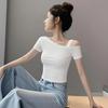 Playera de Manga Corta con Hombros Descubiertos para Mujer, Nueva Camiseta Básica de Verano Ajustada, Top Nicho de Moda Único y Hermoso con Hombros Descubiertos