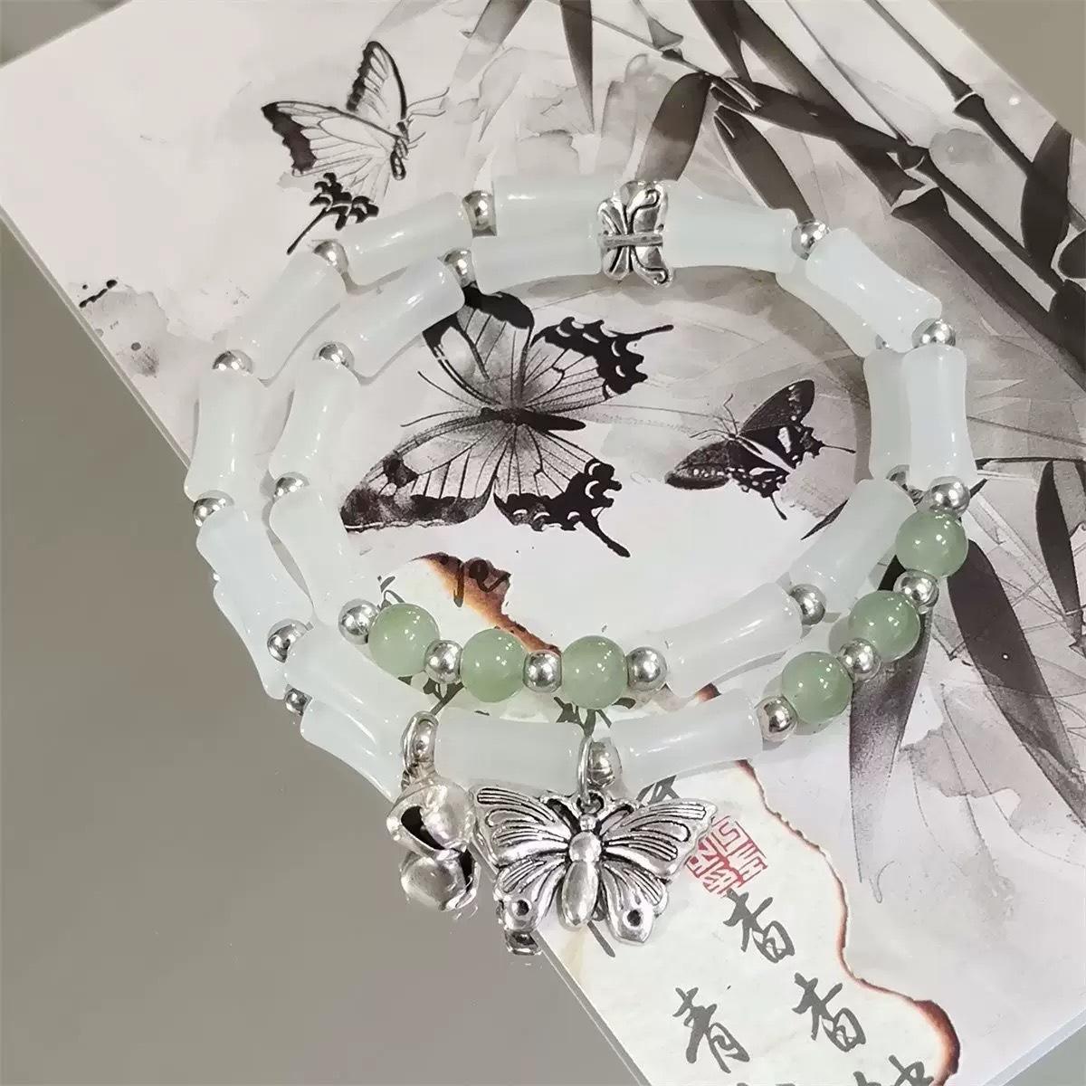 Nueva Pulsera de Estilo Nacional Chino Pulsera Apilada de Doble Círculo Diseño Creativo de Nicho Versátil Pulsera Retro con Cuentas para Hombre y Mujer