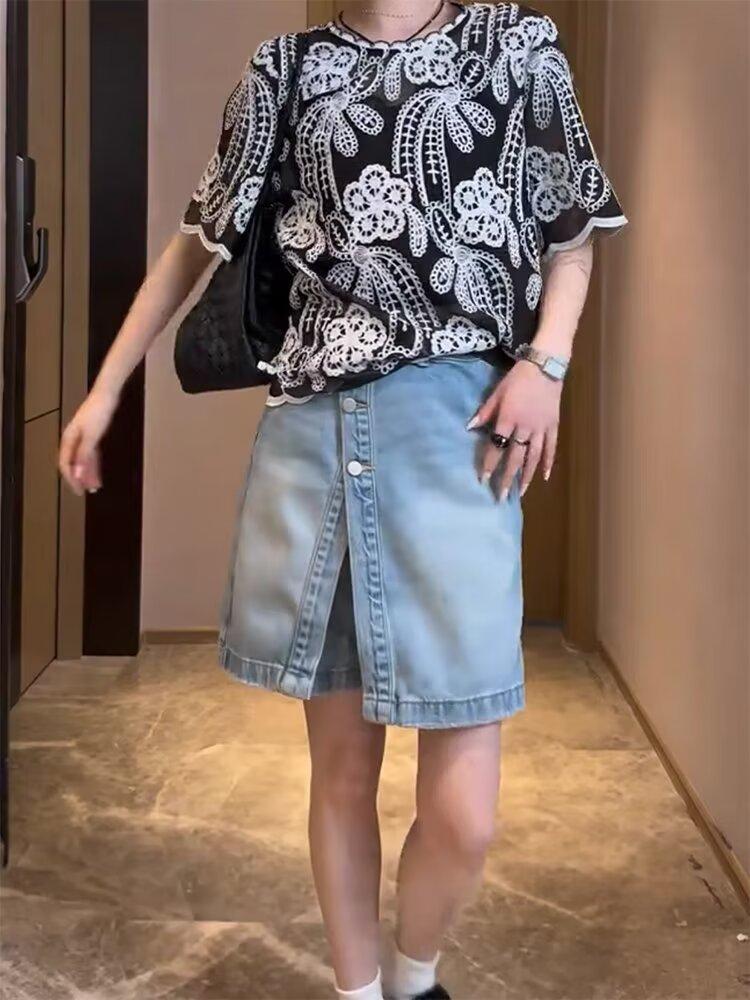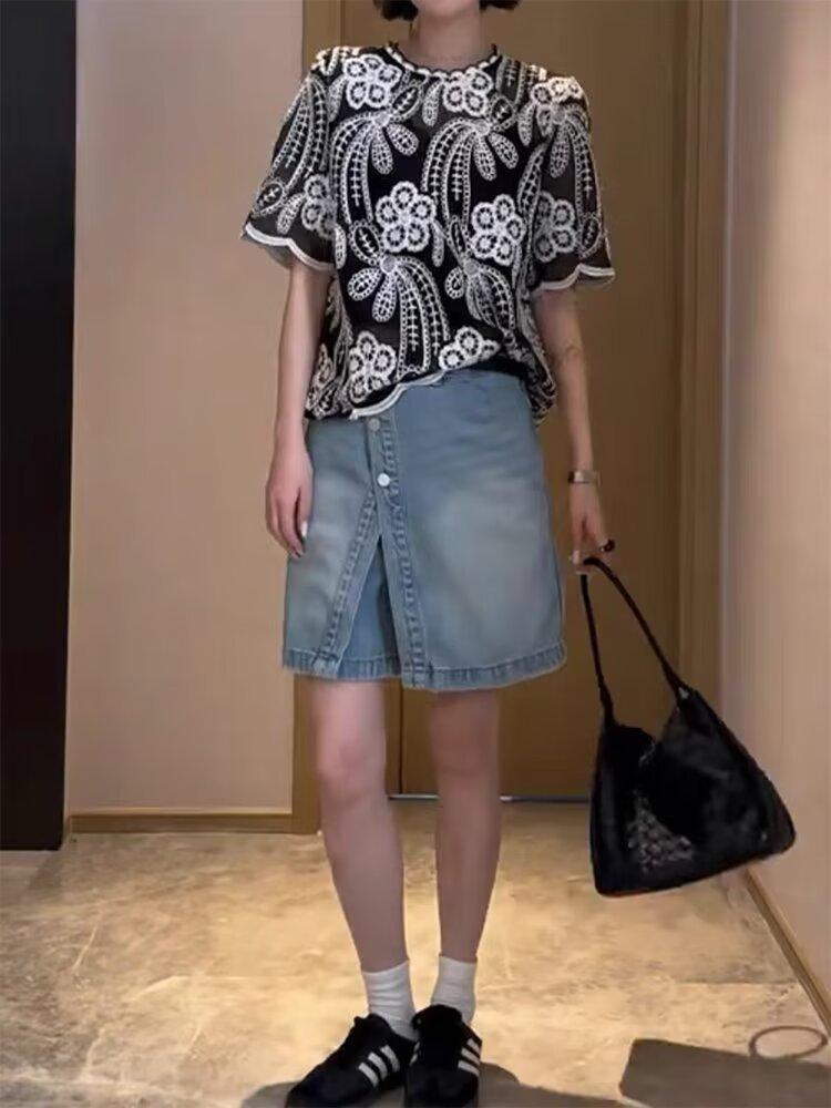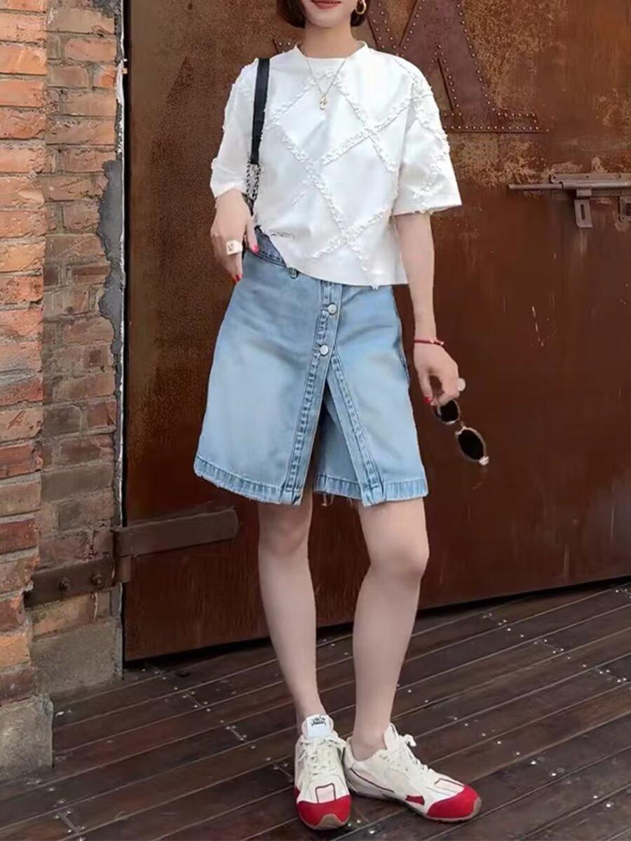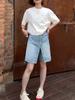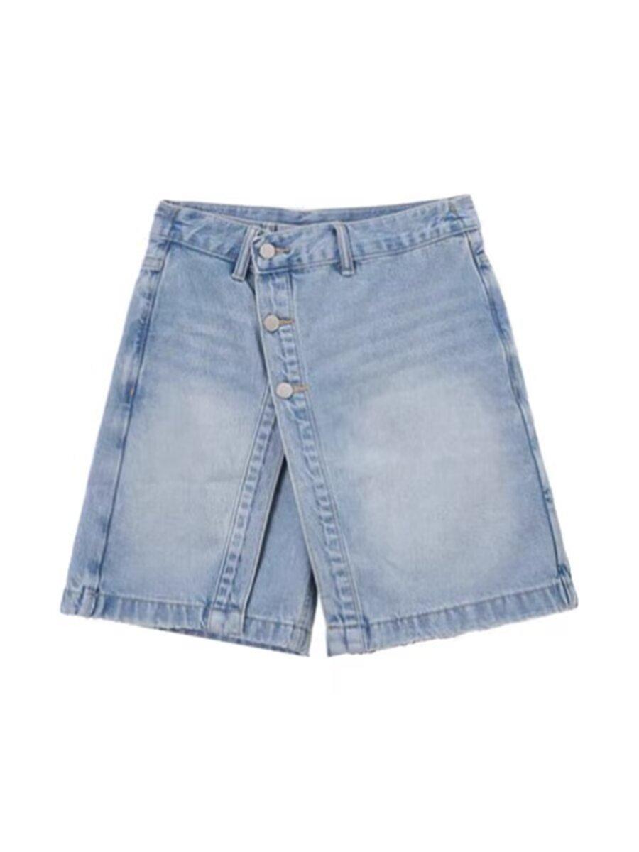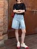Talla Grande Gordo mm Retro Azul Shorts de Mezclilla A-Line de Verano para Mujer Nuevos Cintura Alta Slim Rectos Pierna Ancha Pantalones Cinco Puntos