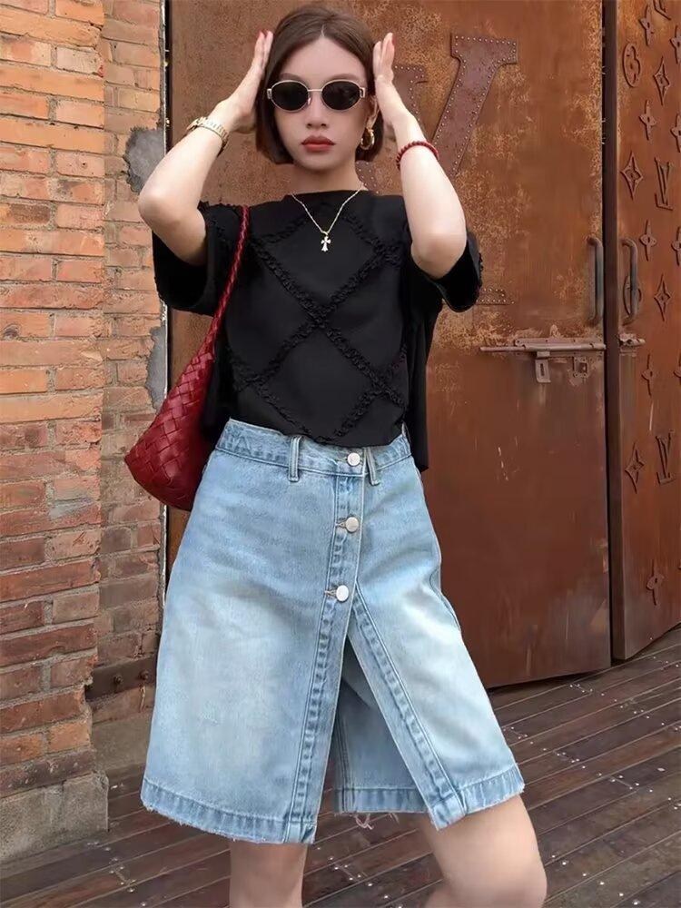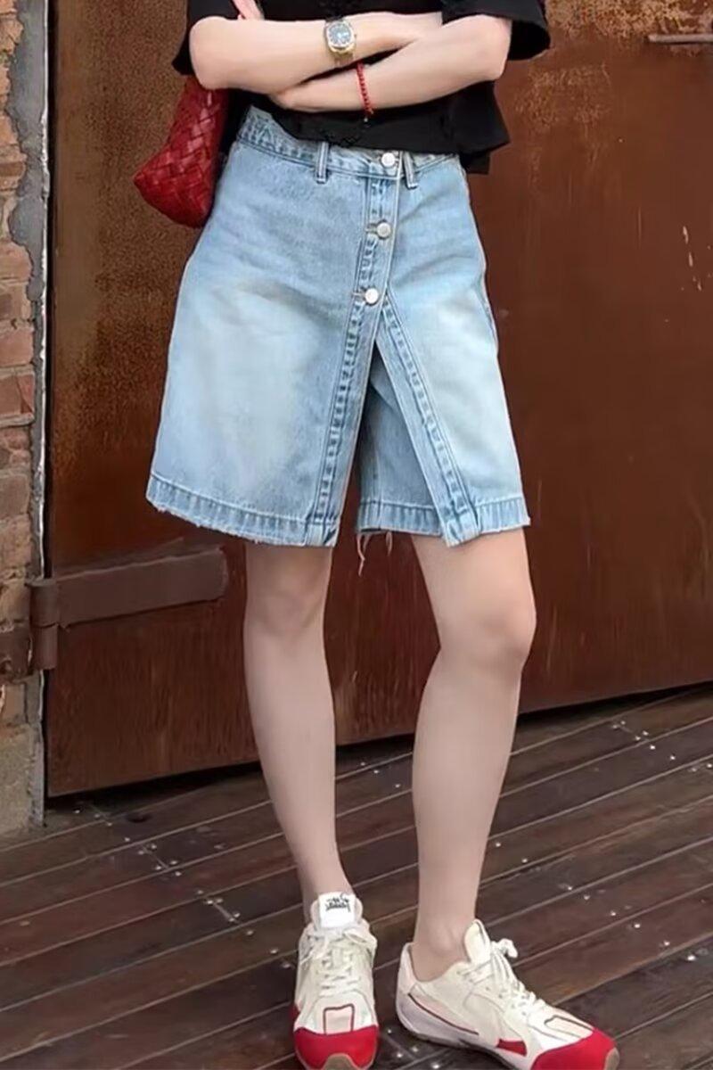 Compra Talla Grande Gordo mm Retro Azul Shorts de Mezclilla A-Line de Verano para Mujer Nuevos Cintura Alta Slim Rectos Pierna Ancha Pantalones Cinco Puntos al por mayor en Joom.pro