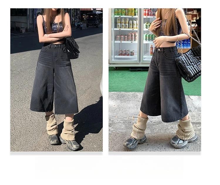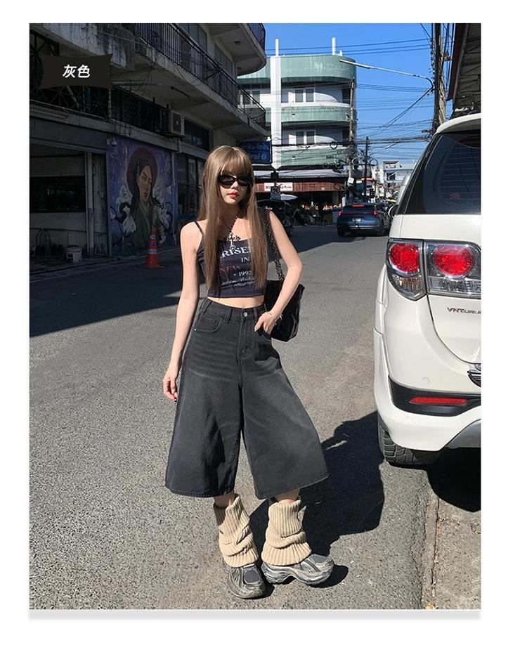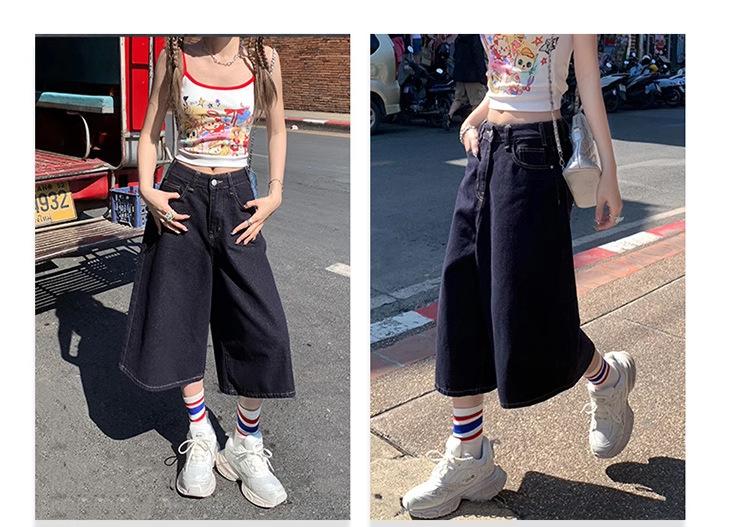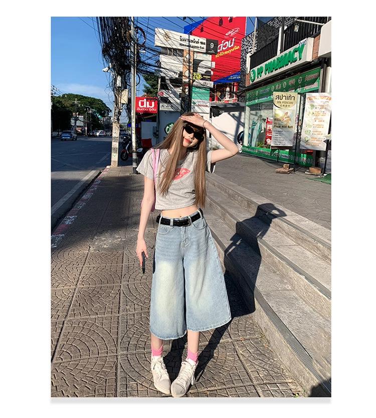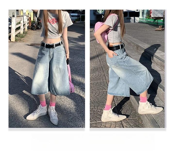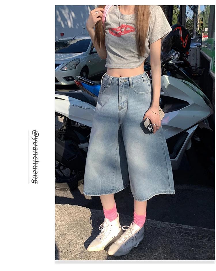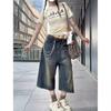 Talla Grande Americano Retro Lavado Shorts de Mezclilla de Siete Puntos para Mujer Verano Nuevo Cintura Alta Gordo MM Suelto Adelgazantes Pierna Ancha