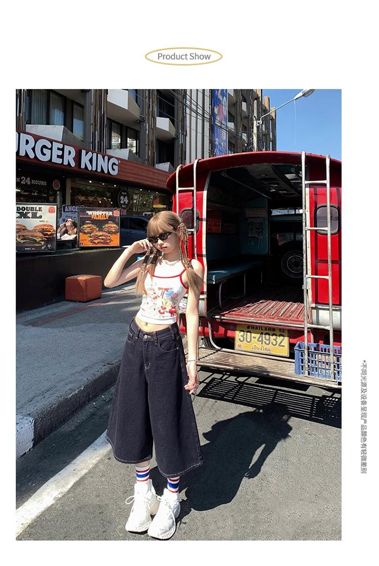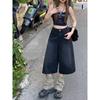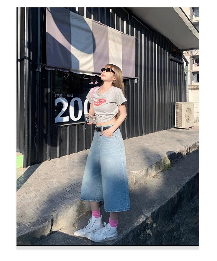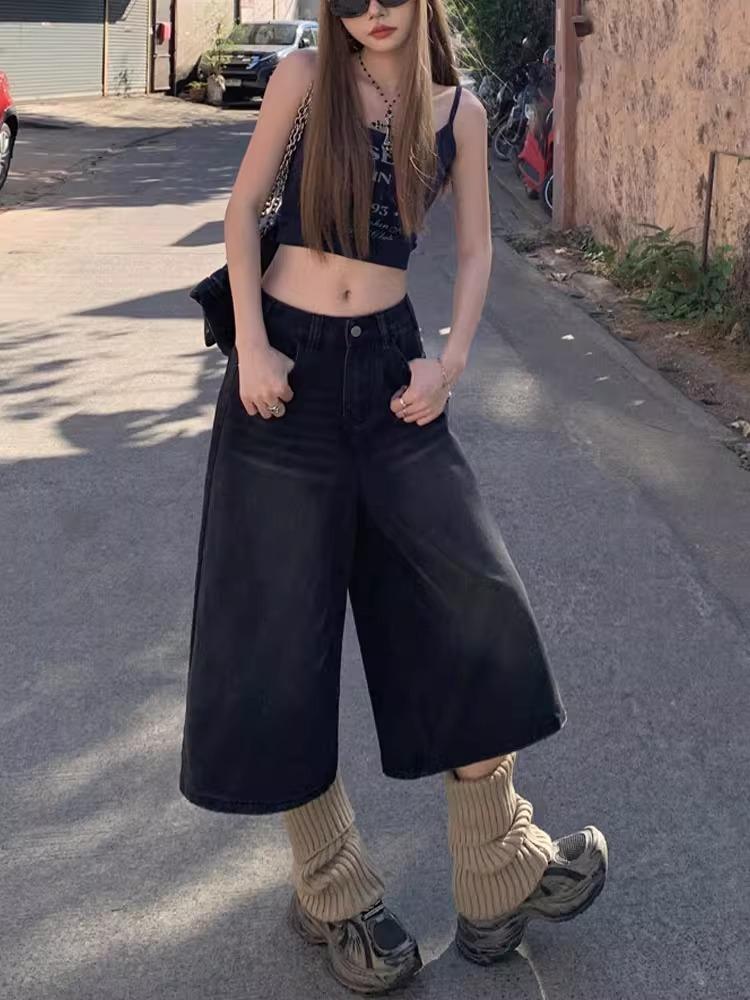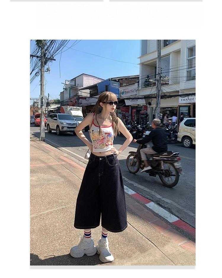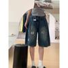 Talla Grande Americano Retro Lavado Shorts de Mezclilla de Siete Puntos para Mujer Verano Nuevo Cintura Alta Gordo MM Suelto Adelgazantes Pierna Ancha