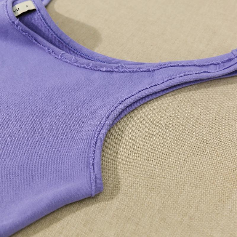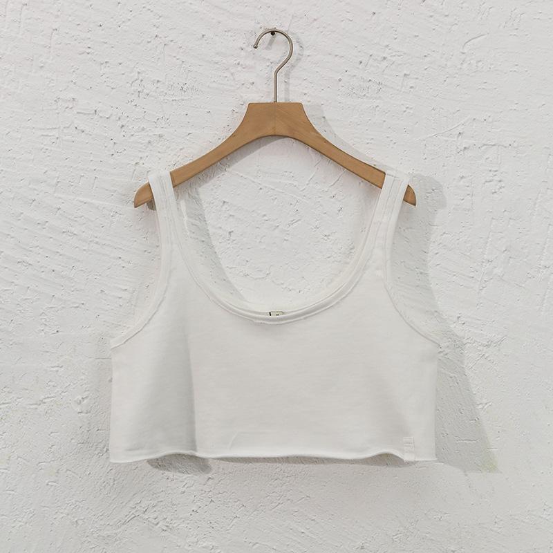 Chaleco Deportivo Corto Transfronterizo de Verano para Mujer con Ombligo Descubierto Europeo y Americano Holgado de Tirantes Algodón Puro Cuello Redondo Cintura Descubierta Espalda Descubierta Top Corto