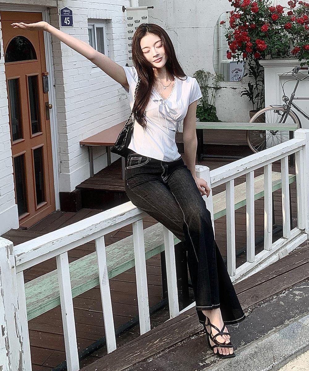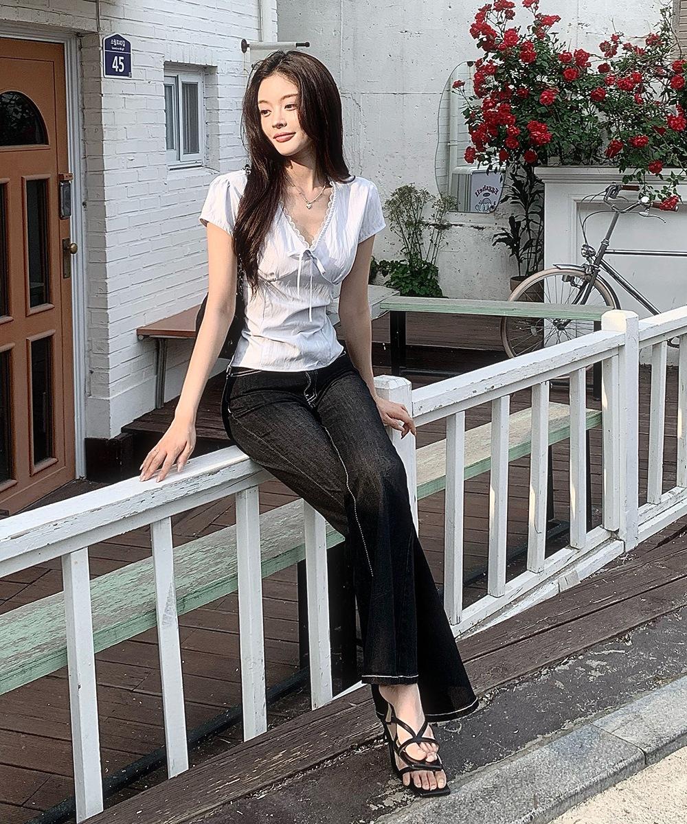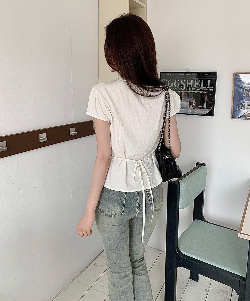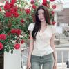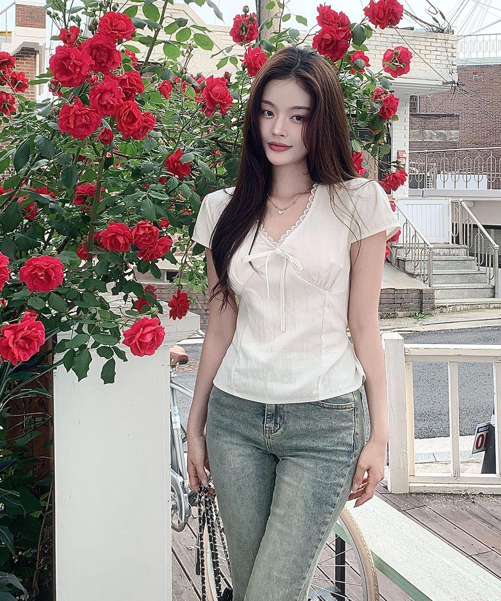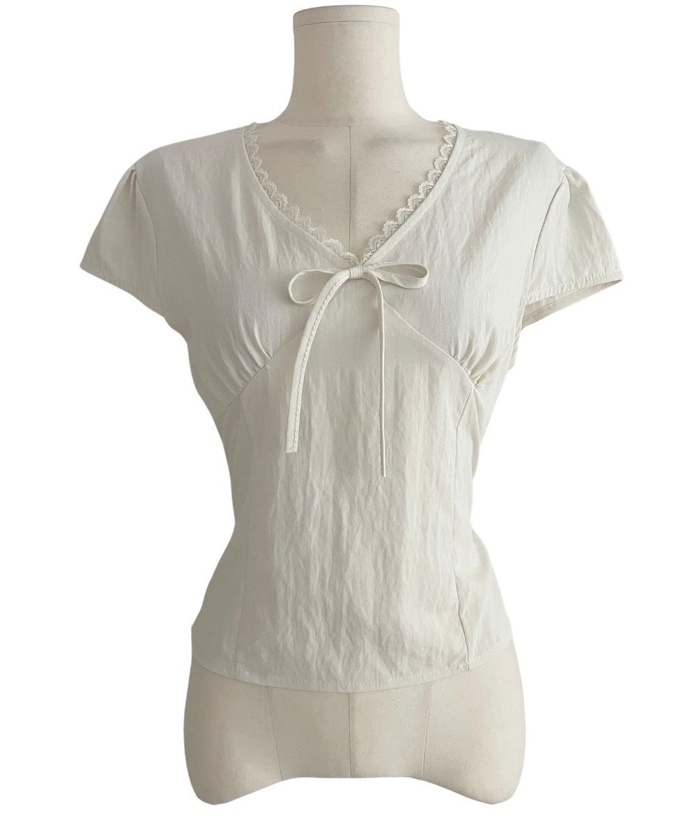 Camisa Coreana Ins Elegante Suave Encaje de Hadas Cuello en V para Mujer 2025 Verano Dulce Camisa de Manguita Vuelo