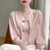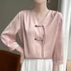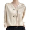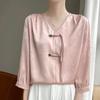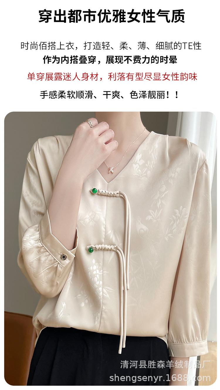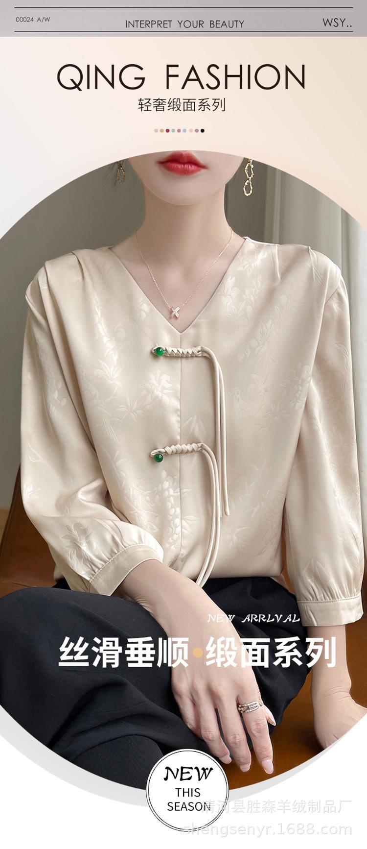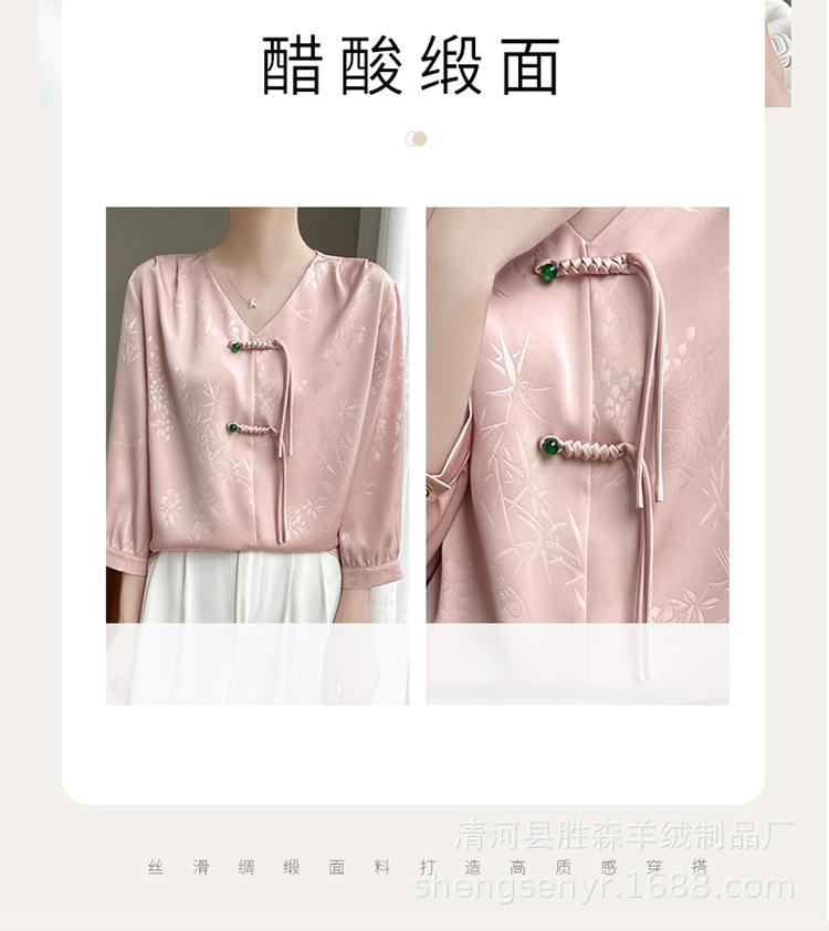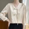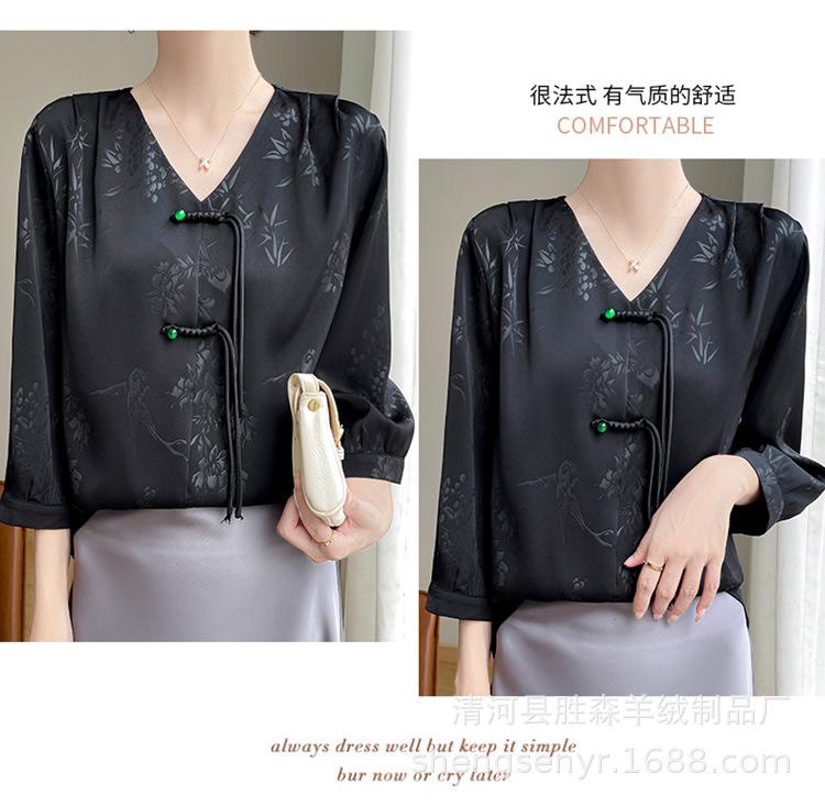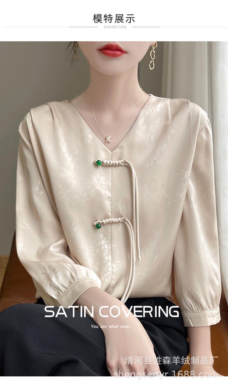 Compra 2024 Verano Nuevo Estilo Chino Estilo Nacional Cuello en V Botón Camisa Jacquard Manga Siete Puntos Suelta Combinable Top para Mujer al por mayor en Joom.pro