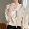 2024 Verano Nuevo Estilo Chino Estilo Nacional Cuello en V Botón Camisa Jacquard Manga Siete Puntos Suelta Combinable Top para Mujer