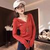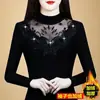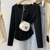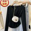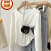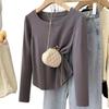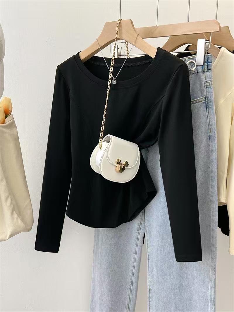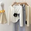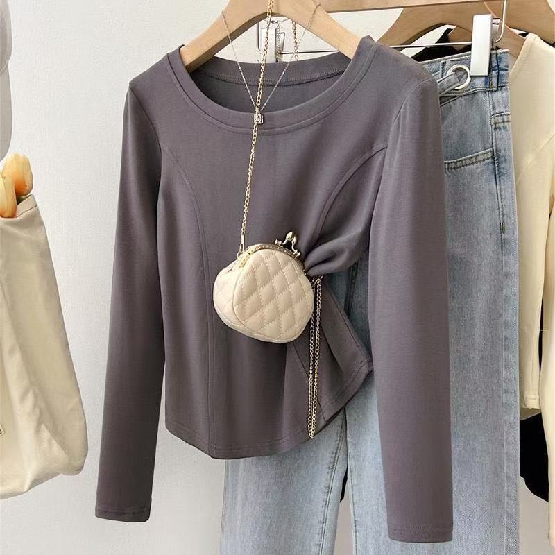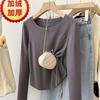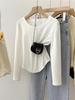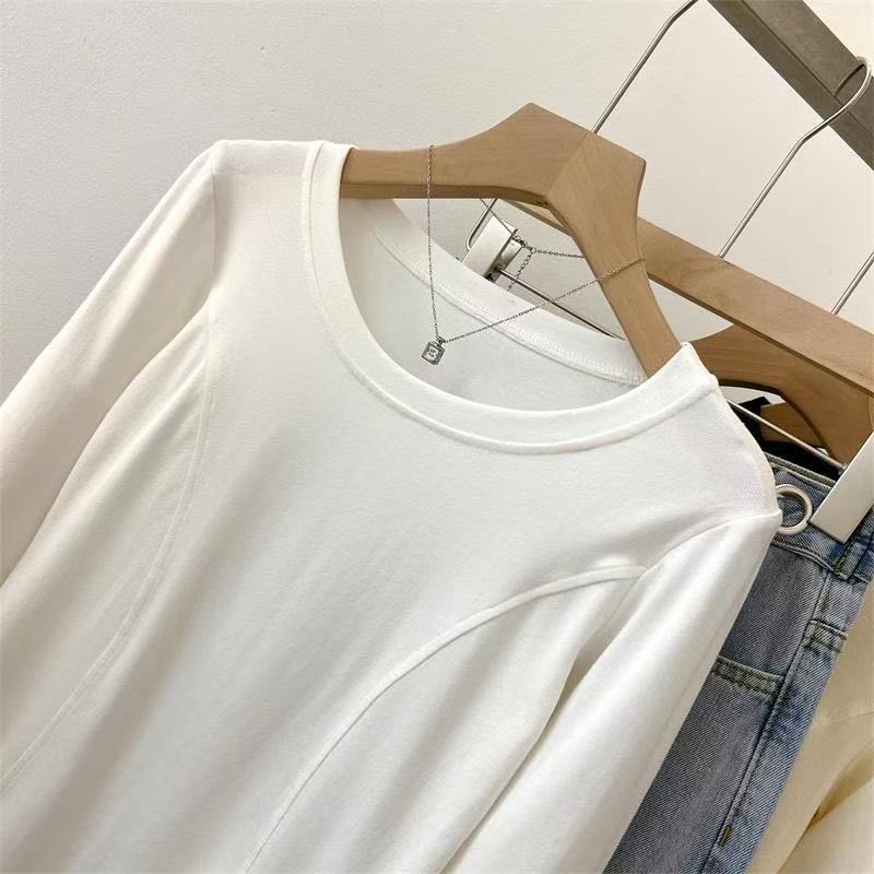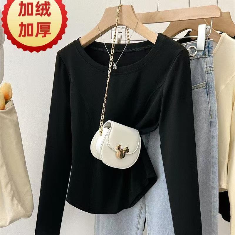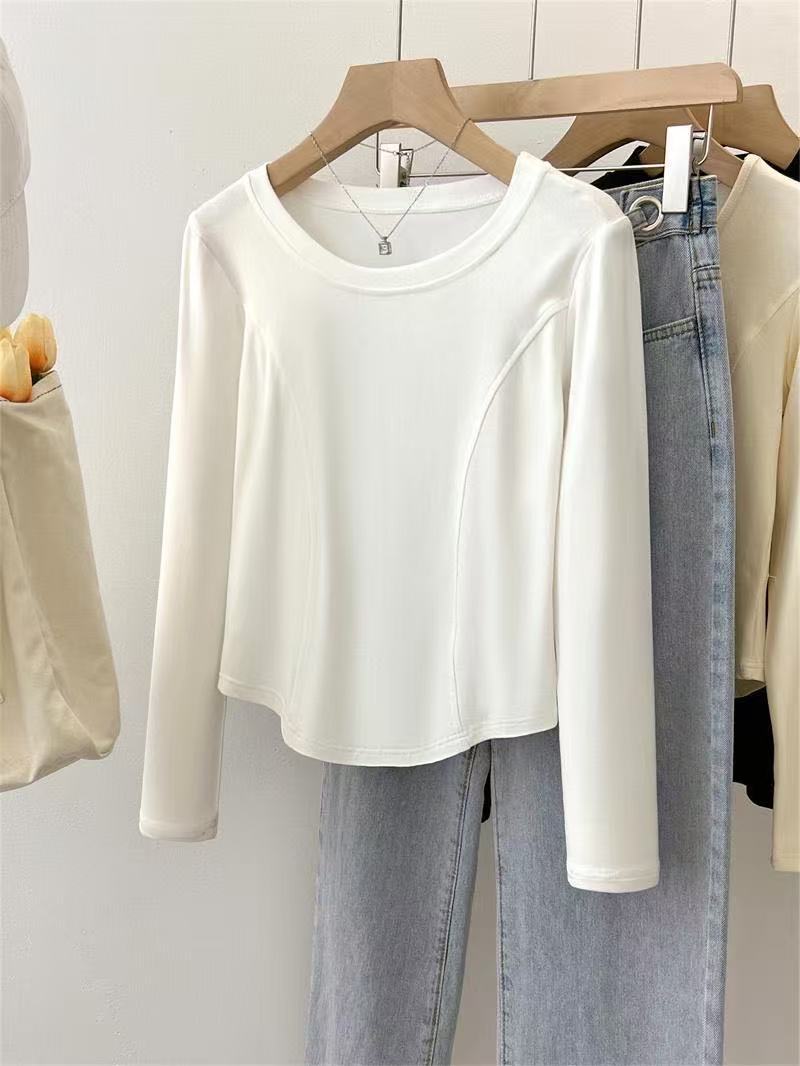 Playera de Manga Larga con Dobladillo Curvo y Hombro Recto para Mujer, Otoño e Invierno, Nuevo Estilo, Blanco Hueso, Adelgazante, Talla Grande, Forro Polar, Capa Base