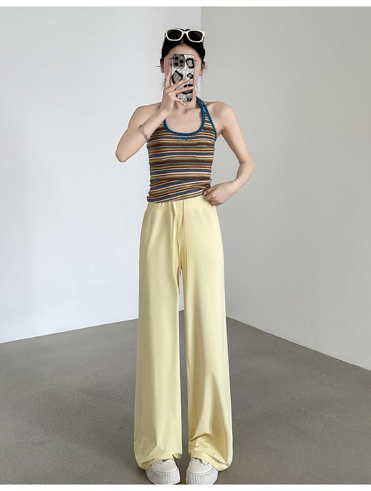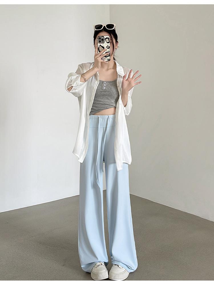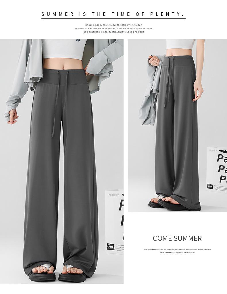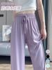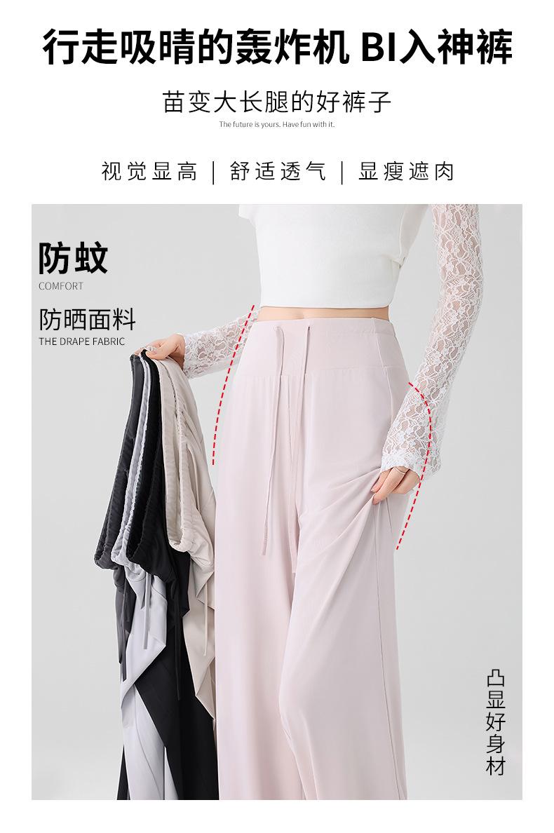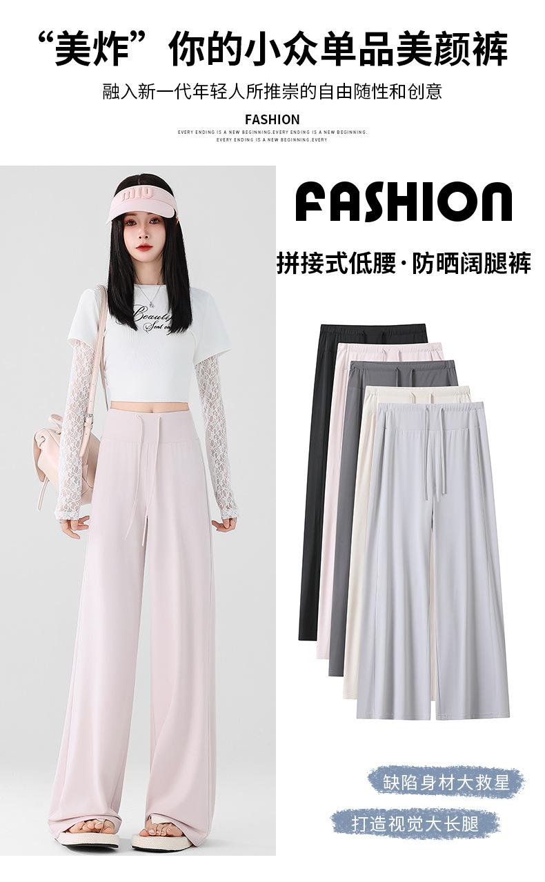 Pantalones de Protección Solar de Seda de Hielo Lulu para Mujer Verano Delgados Cintura Alta Adelgazantes Colgantes Holgados Estilo Lazy Frescos Pierna Ancha