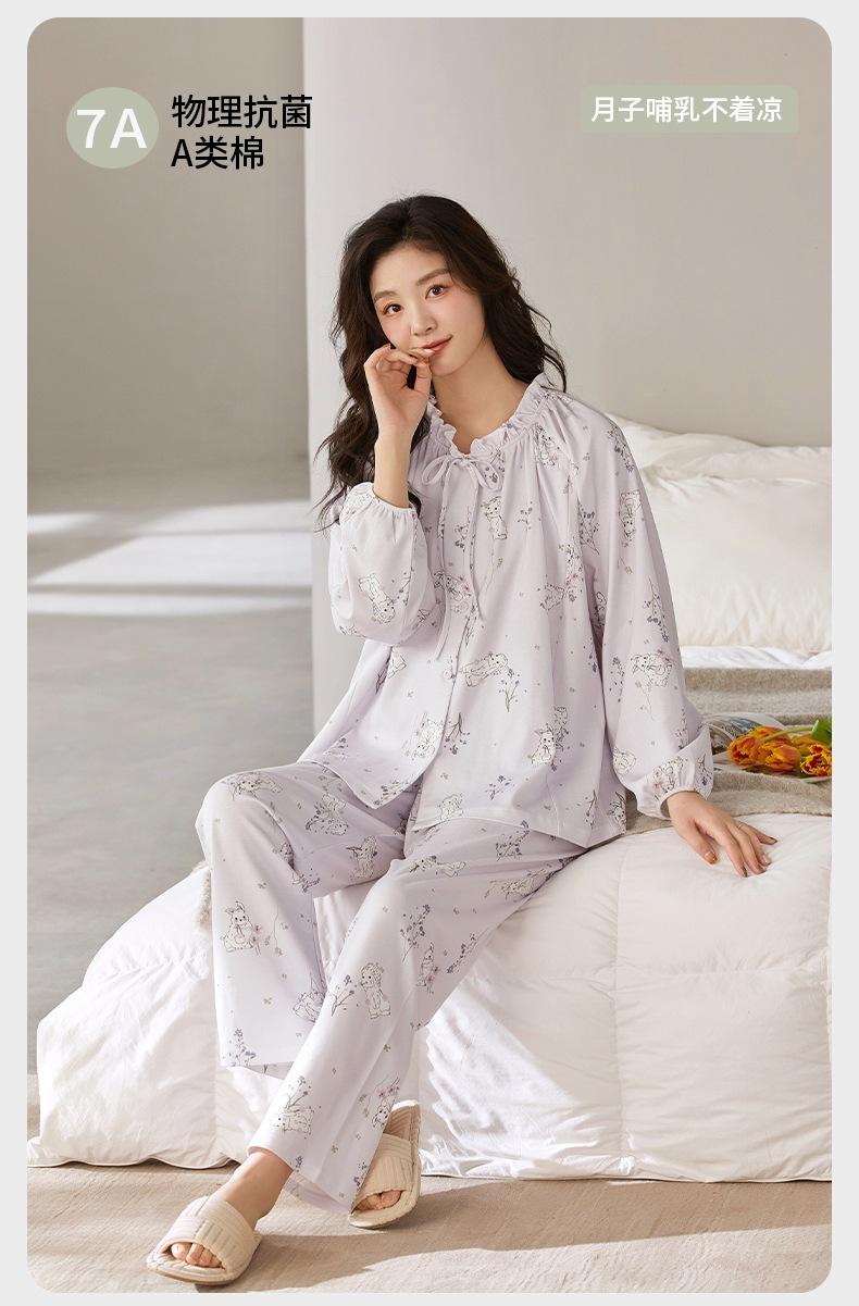Venta al por mayor física 7A Fabricante Algodón Ropa de maternidad Temporada de primavera y otoño Pijamas para mujeres embarazadas Ropa de maternidad para posparto Ropa de parto Amamantamiento con cremallera