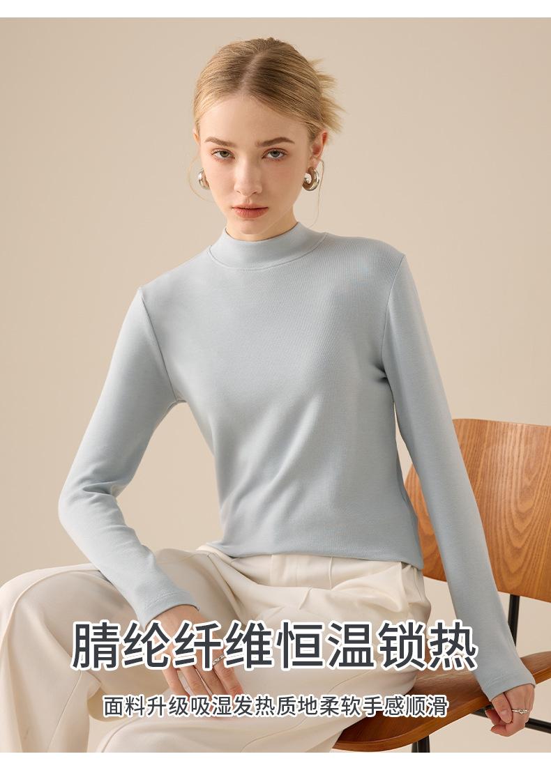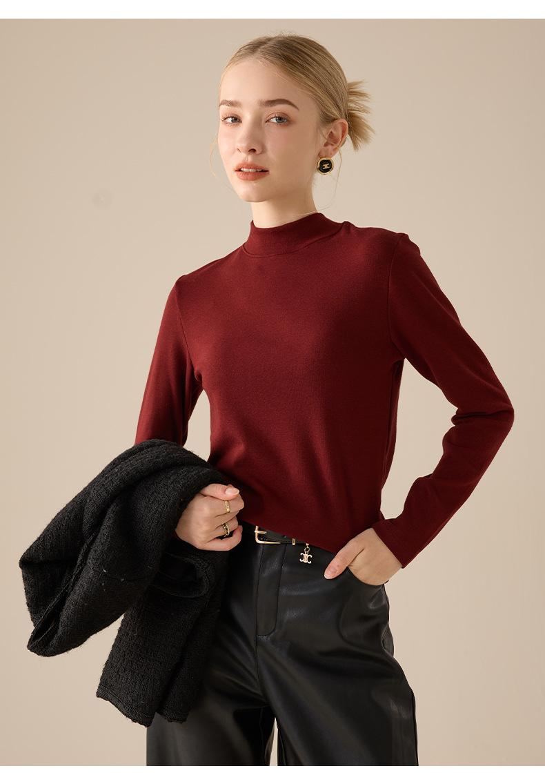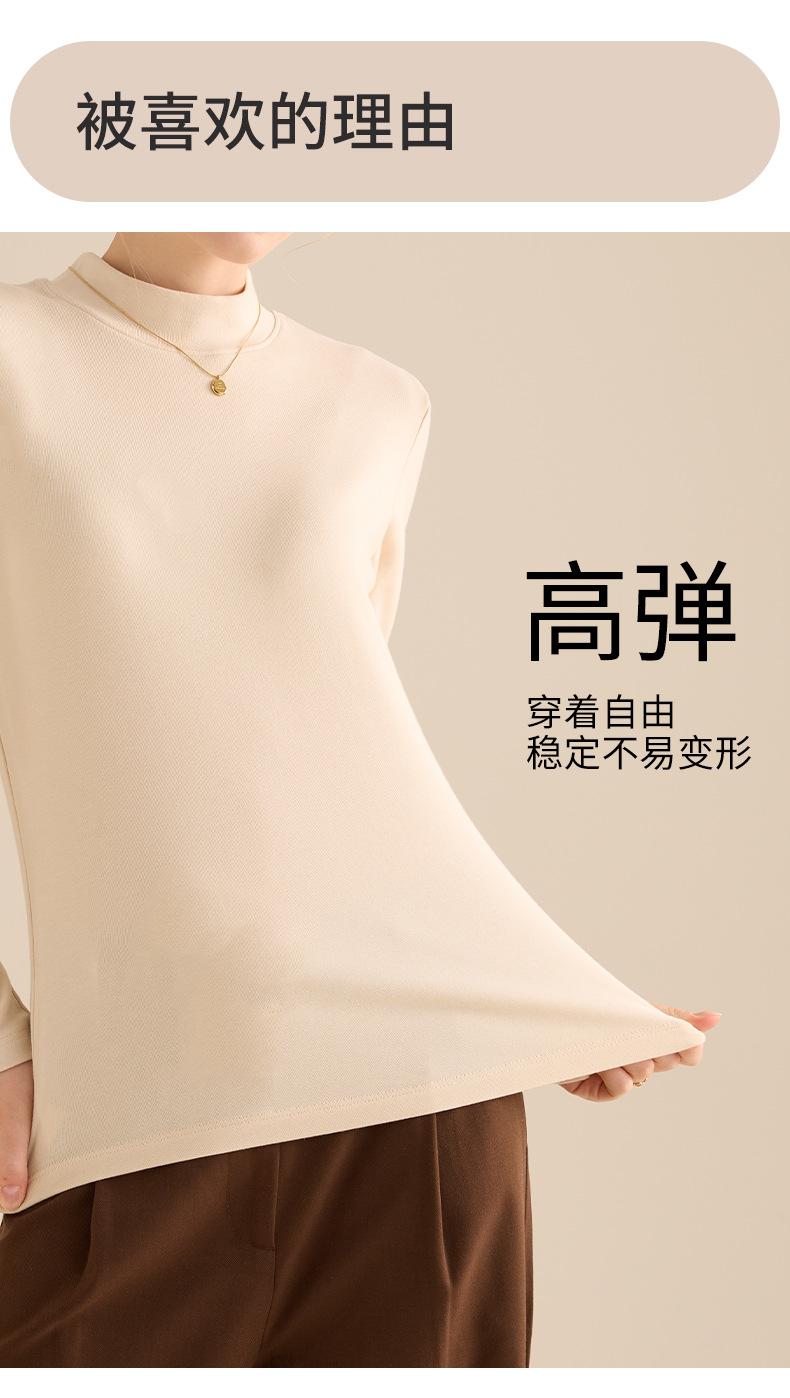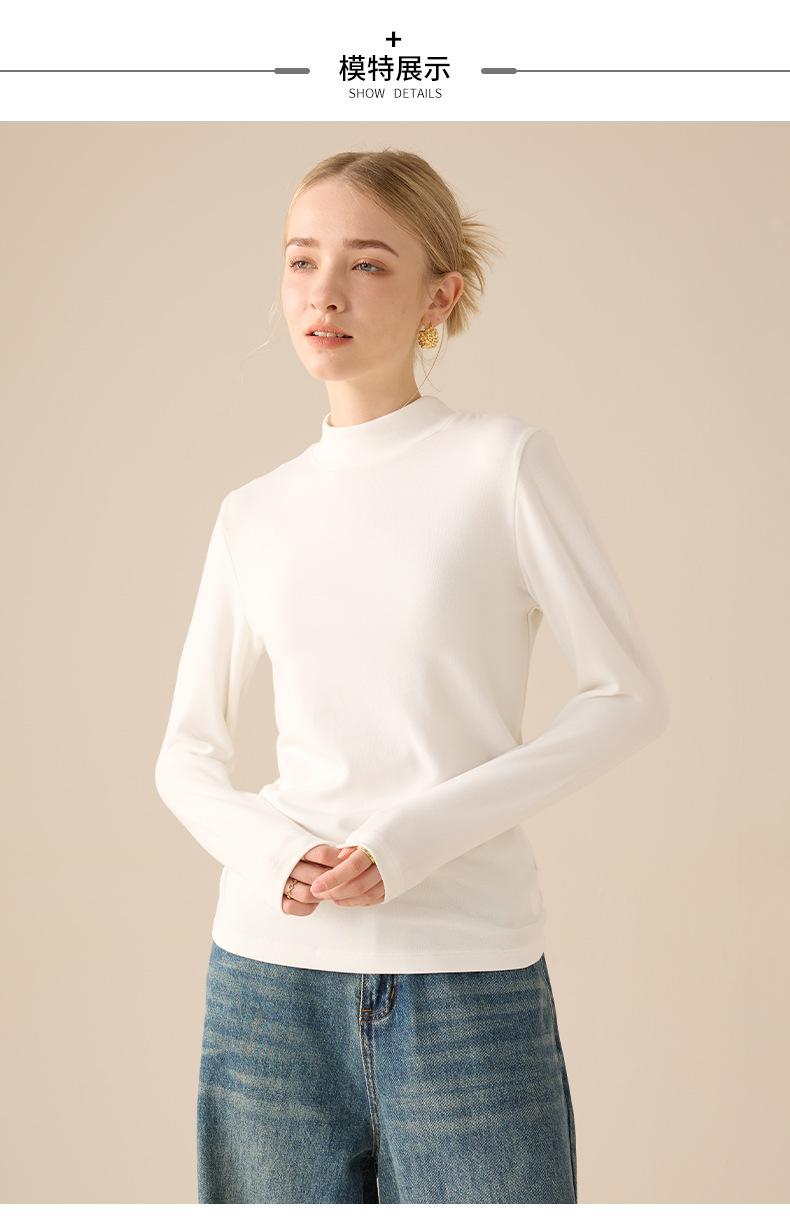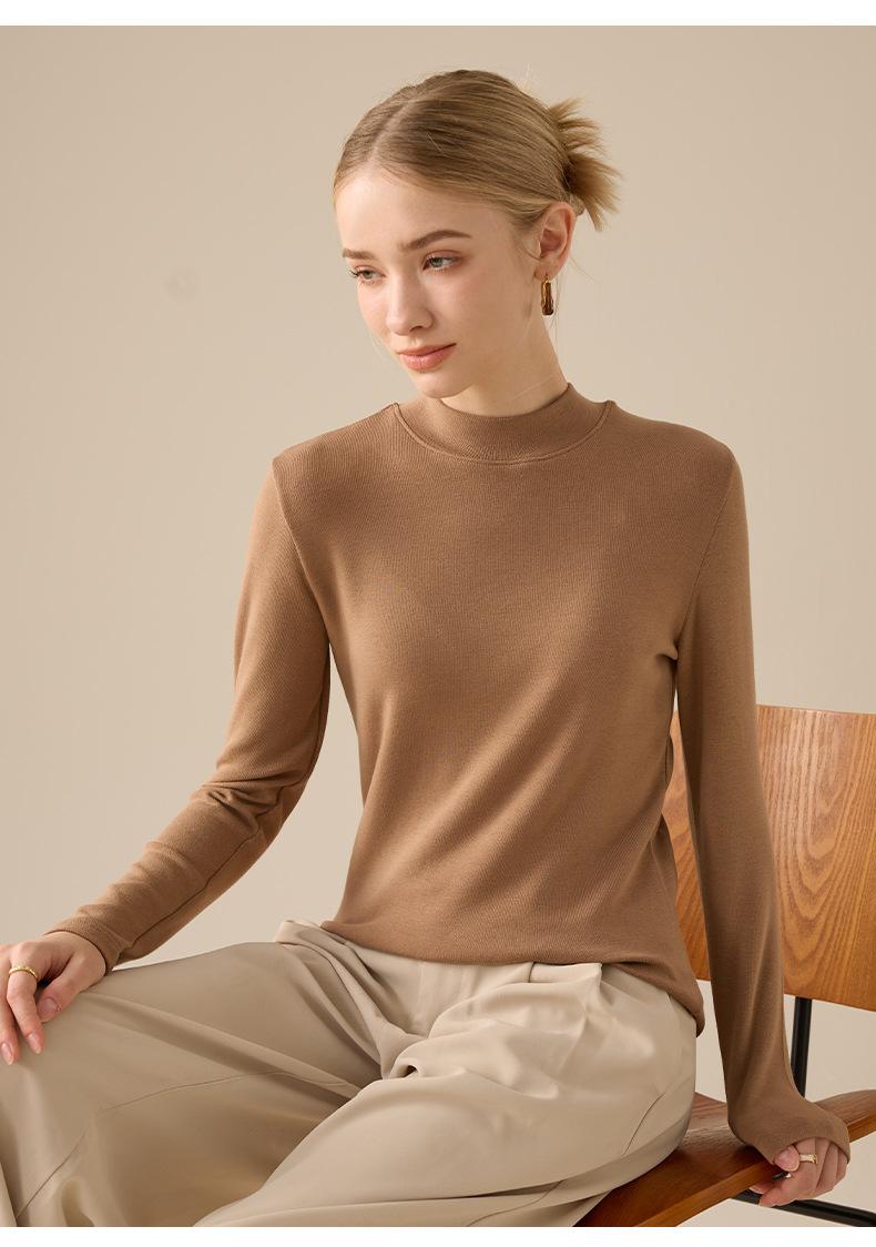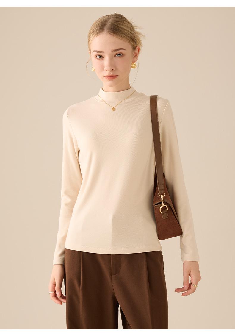 Playera de Manga Larga de Cuello Medio Alto para Mujer Otoño/Invierno 2025 Ajuste Slim Versátil Color Sólido Top Interior Ajustado