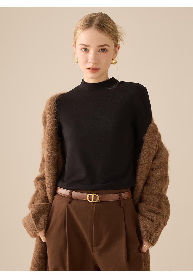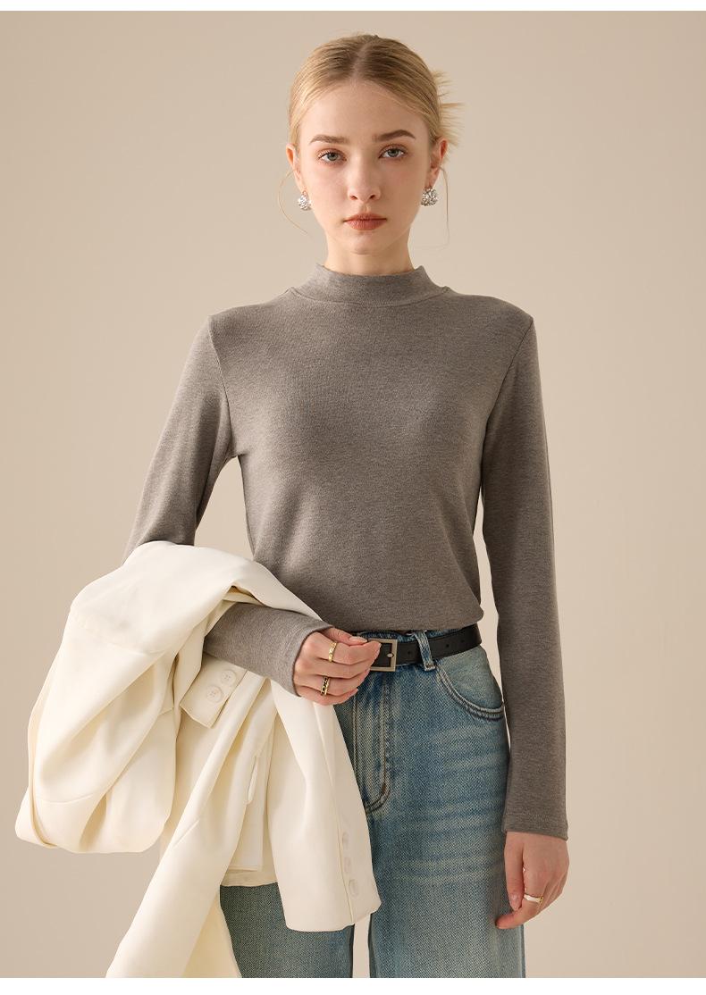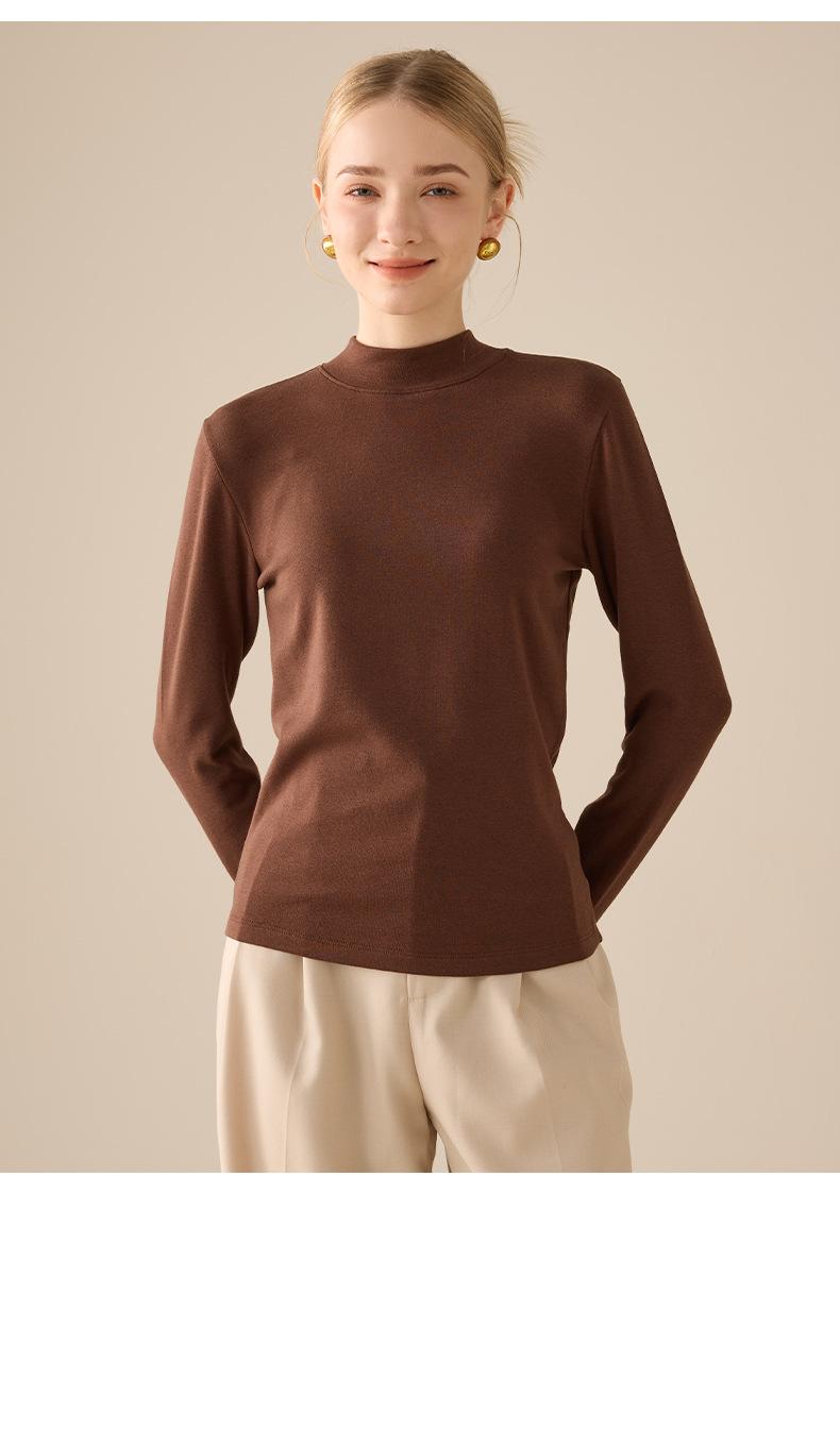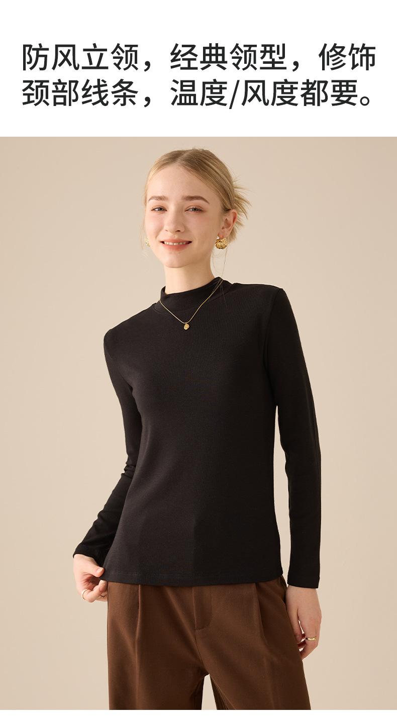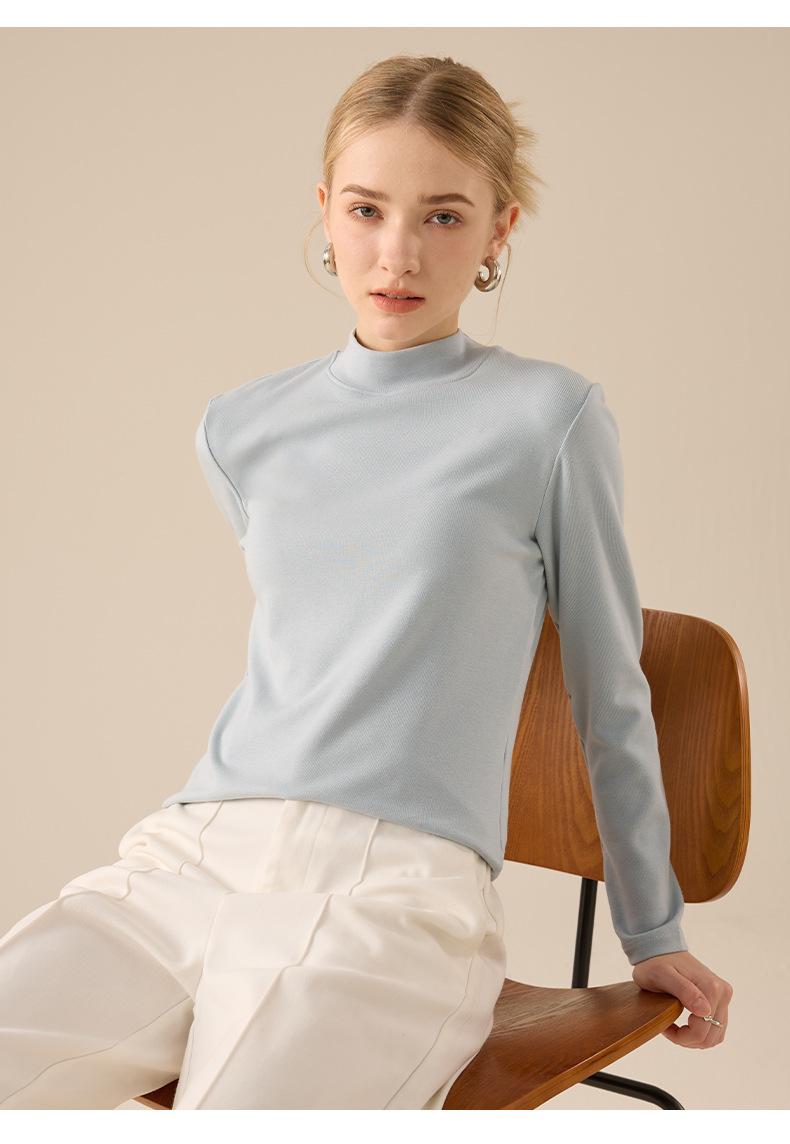Playera de Manga Larga de Cuello Medio Alto para Mujer Otoño/Invierno 2025 Ajuste Slim Versátil Color Sólido Top Interior Ajustado