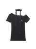 Playera Negra de Hombros Descubiertos de Manga Corta para Mujer Verano 2025 de Alta Gama Sexy Cintura Entallada Un Hombro Top de Encaje