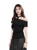 Compra Playera Negra de Hombros Descubiertos de Manga Corta para Mujer Verano 2025 de Alta Gama Sexy Cintura Entallada Un Hombro Top de Encaje al por mayor en Joom.pro