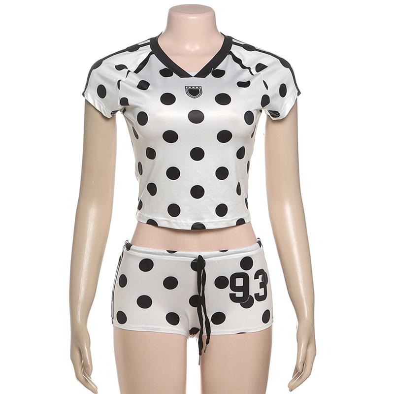 Compra Conjunto de Verano 2025 Nuevo Estilo Europeo y Americano Transfronterizo Top de Manga Corta con Estampado Digital Slim-Fit y Shorts de Cintura Alta Levanta Glúteos para Mujer al por mayor en Joom.pro