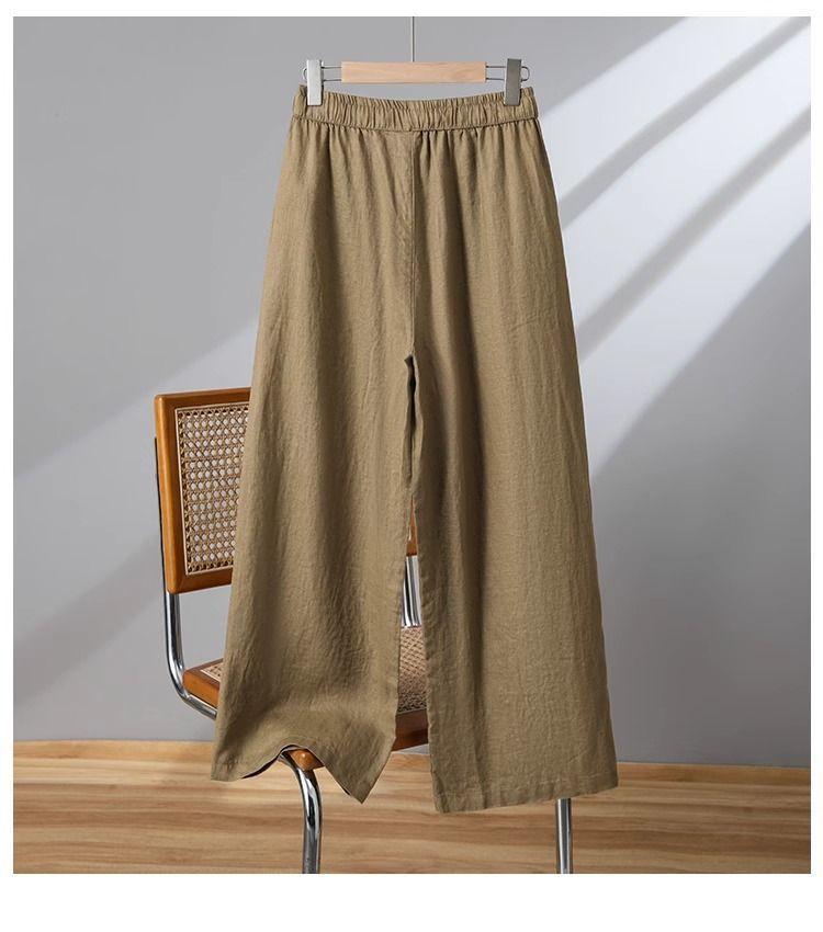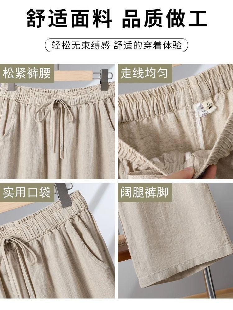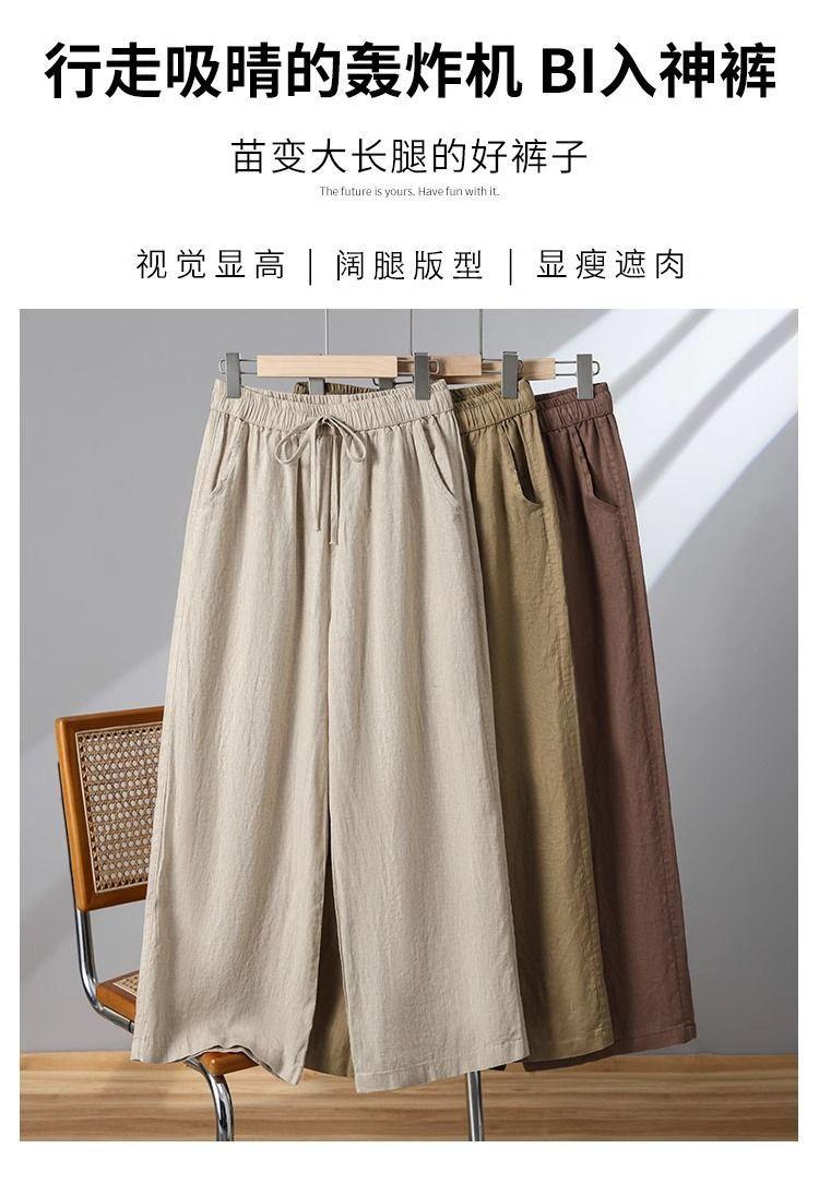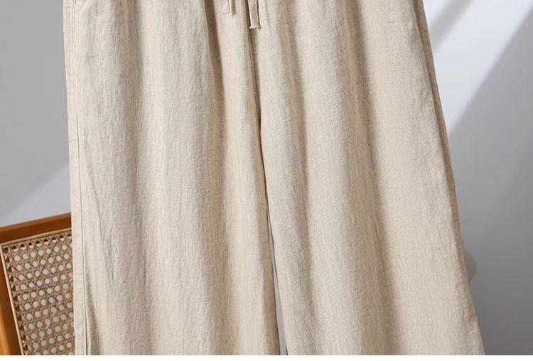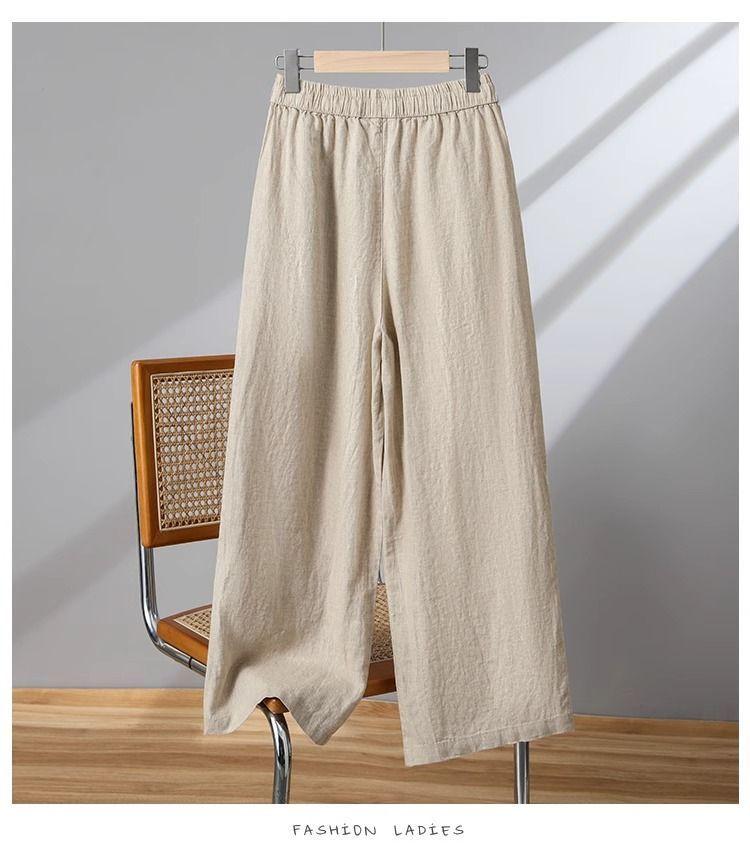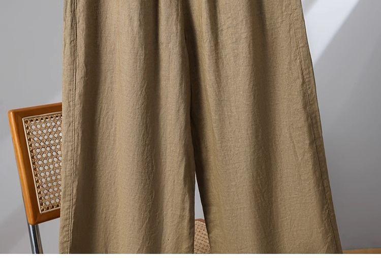 Pantalones retro de algodón y lino 2025 nuevos de nueve puntos de pierna ancha para mujer, verano, nuevos pantalones casuales sueltos, pantalones casuales rectos